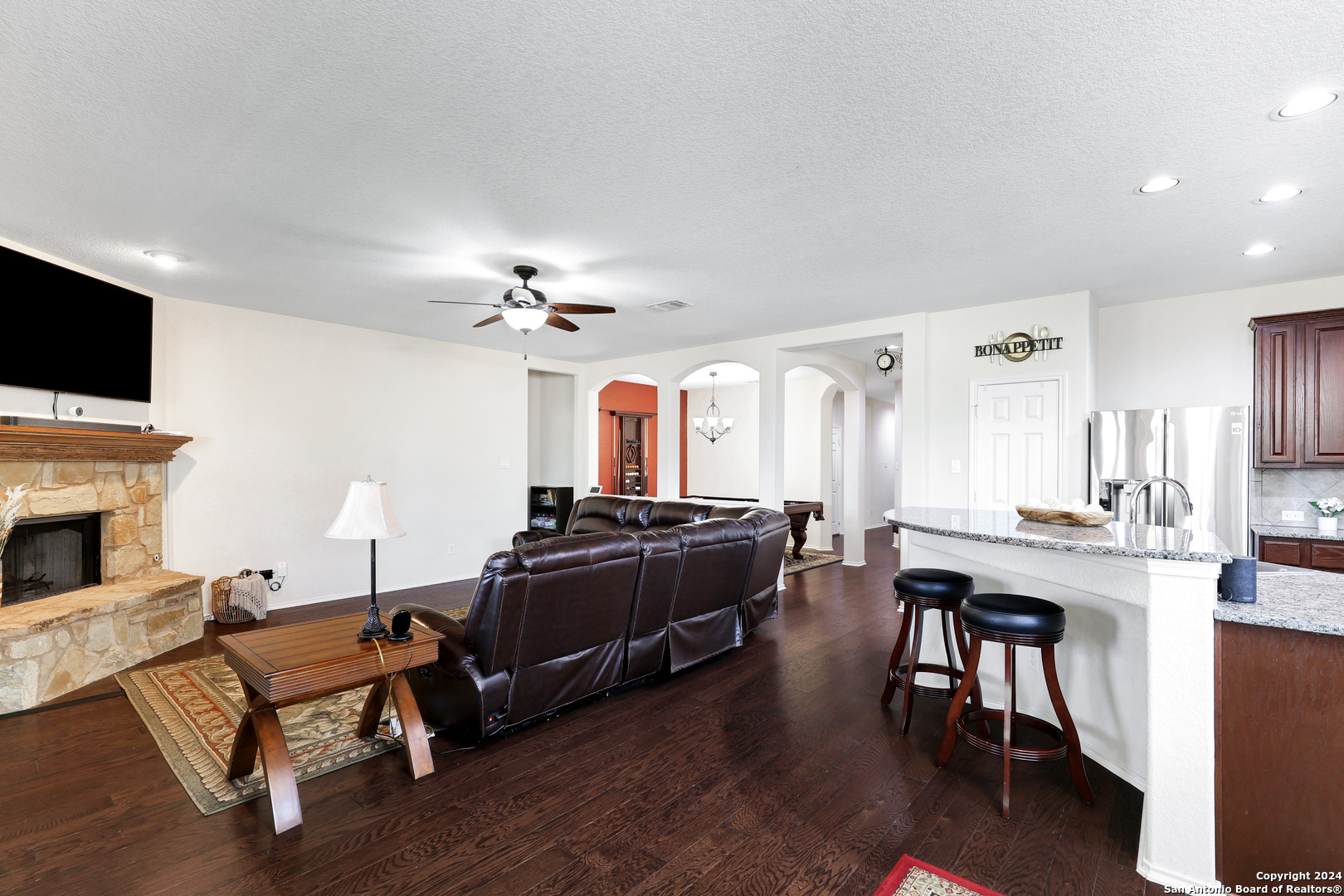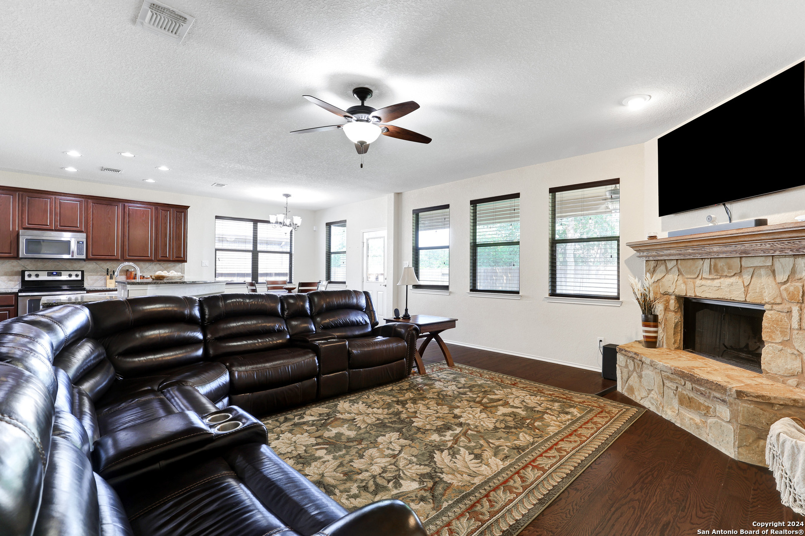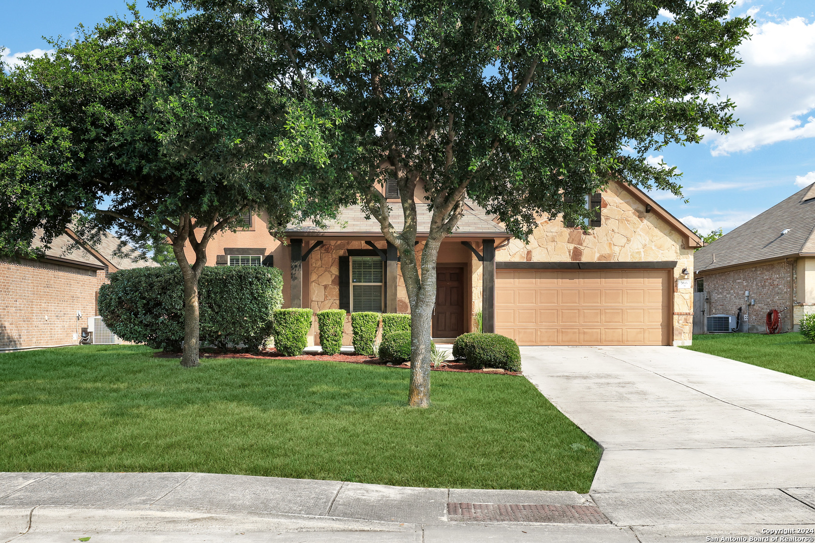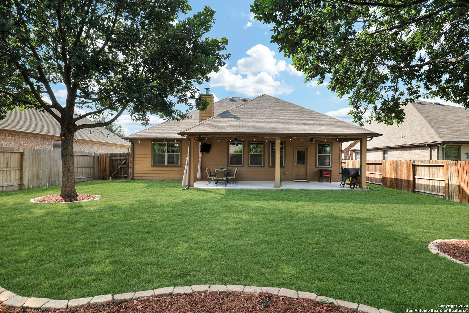 Welcome to 366 Pecan Meadows in HIGHLY SOUGHT AFTER Pecan Crossing community! Situated on a generously sized, level lot that culminates at a peaceful cul-de-sac, this home affords ample privacy and space between neighboring properties. As you walk up to the property, you're greeted by a welcoming front porch and beautiful curb appeal with country-style stucco and stone finishes. Inside, the spacious open-concept living area flows seamlessly into a modern kitchen with granite countertops, stainless steel appliances, and a large island, perfect for entertaining. The primary suite features an en-suite bathroom with dual sinks, a walk-in shower, and closet, while the entire home boasts beautiful flooring with no carpet throughout. The backyard is an outdoor oasis with an extended covered patio, beautiful mature trees, and flower beds ready for your favorite landscaping. The two-car garage includes new epoxy floors and overhead storage. Located in a friendly neighborhood with easy access to schools, shopping, dining, and nearby river & parks, this energy-efficient home is move-in ready and ideal for those looking to enjoy the best of Hill Country living. Schedule your showing today and fall in love with this beautiful country home. ** SELLER WILL CONTRIBUTE TO BUYERS RATE BUY DOWN OR CLOSINGS **