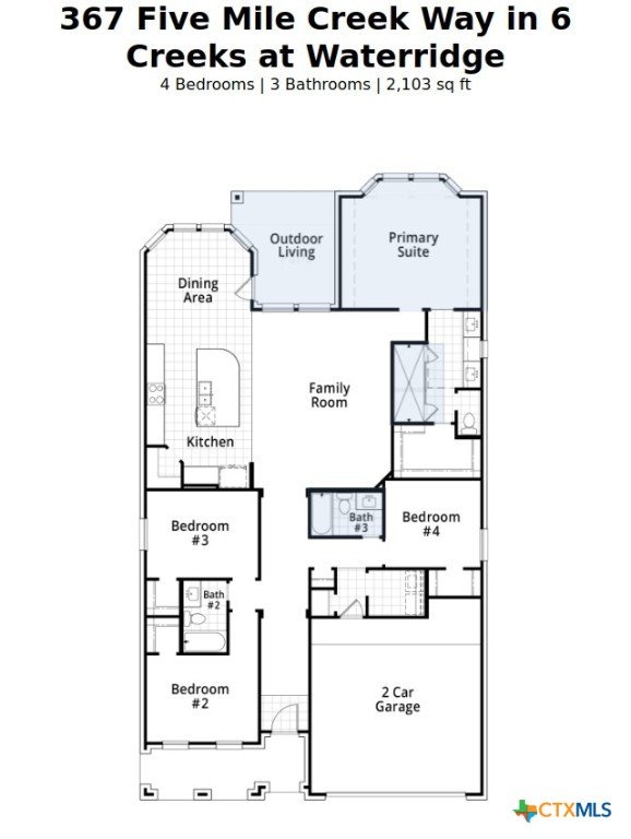 This stunning Amberley floorplan offers 2,103 square feet of beautifully designed living space, perfect for modern living and entertaining. Featuring four spacious bedrooms and three full bathrooms, this home provides ample space for everyone. The open living and dining area creates a warm and inviting atmosphere, ideal for gatherings. The luxurious spa shower in the primary suite adds a touch of elegance and relaxation to your daily routine. Enjoy seamless indoor-outdoor living with extended outdoor living spaces, perfect for outdoor entertaining, relaxing evenings, or enjoying the beautiful Texas weather. The kitchen is equipped with built-in appliances, making meal prep a breeze. Don't miss out on this move-in ready home where you will find combined comfort, luxury, and functionality in a vibrant master planner community setting of 6 Creeks.