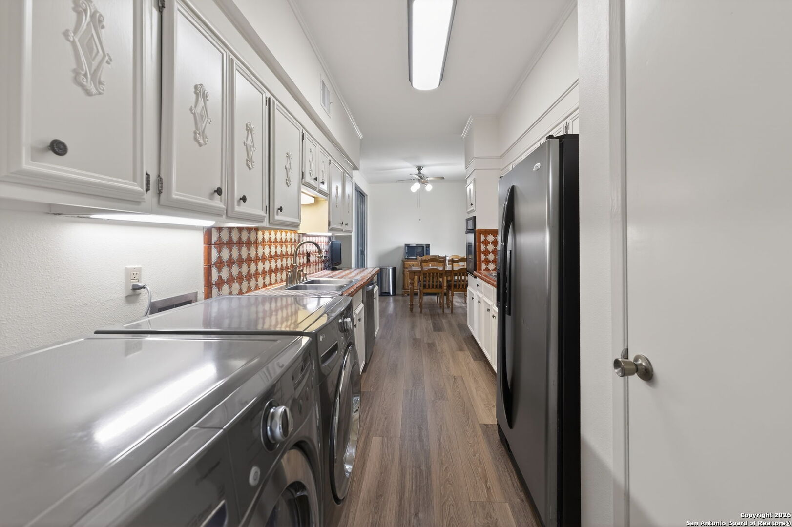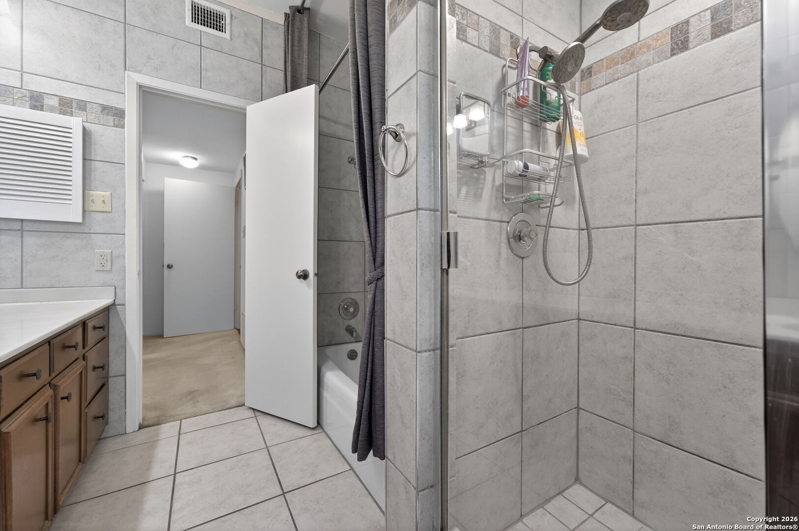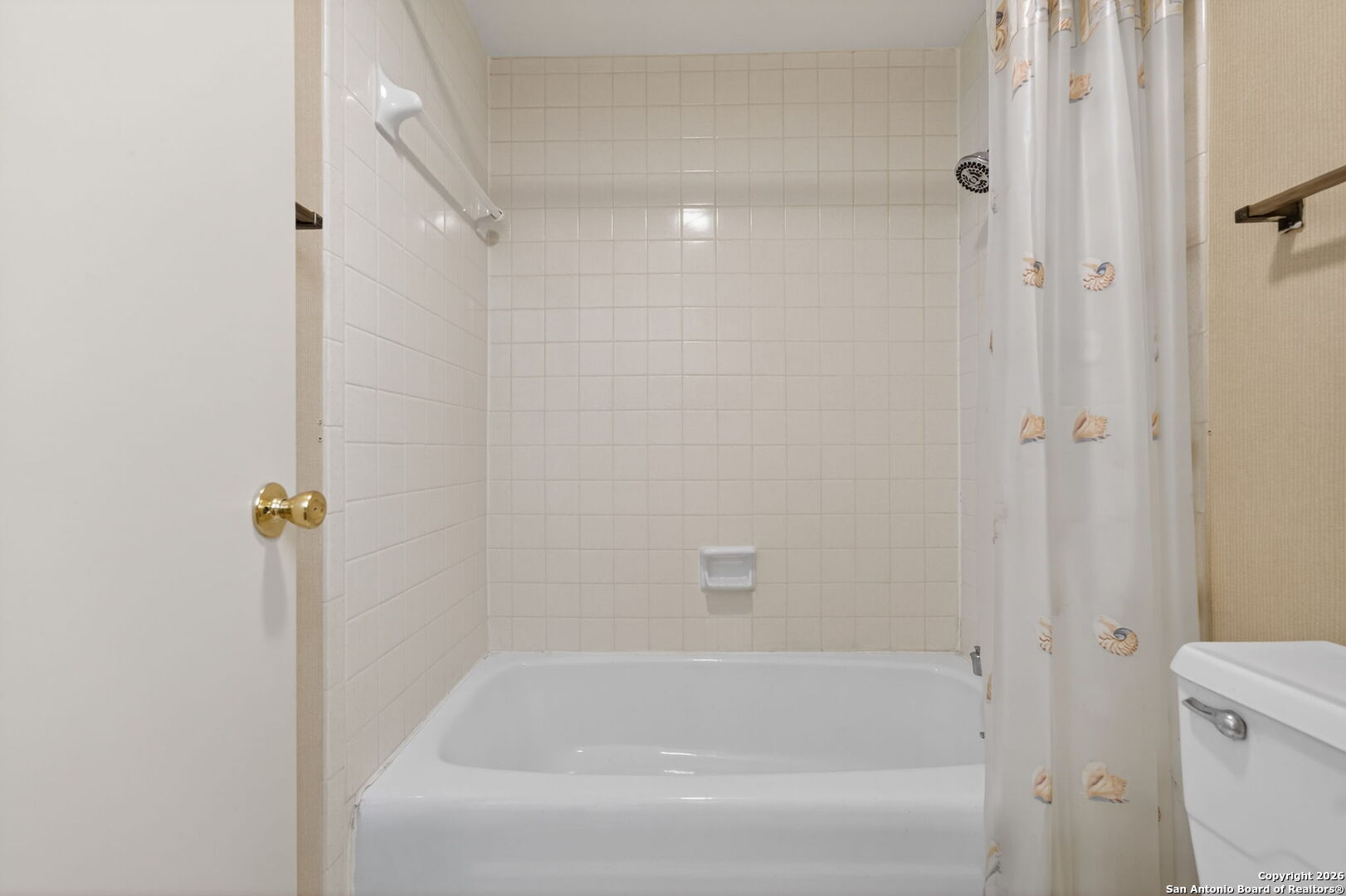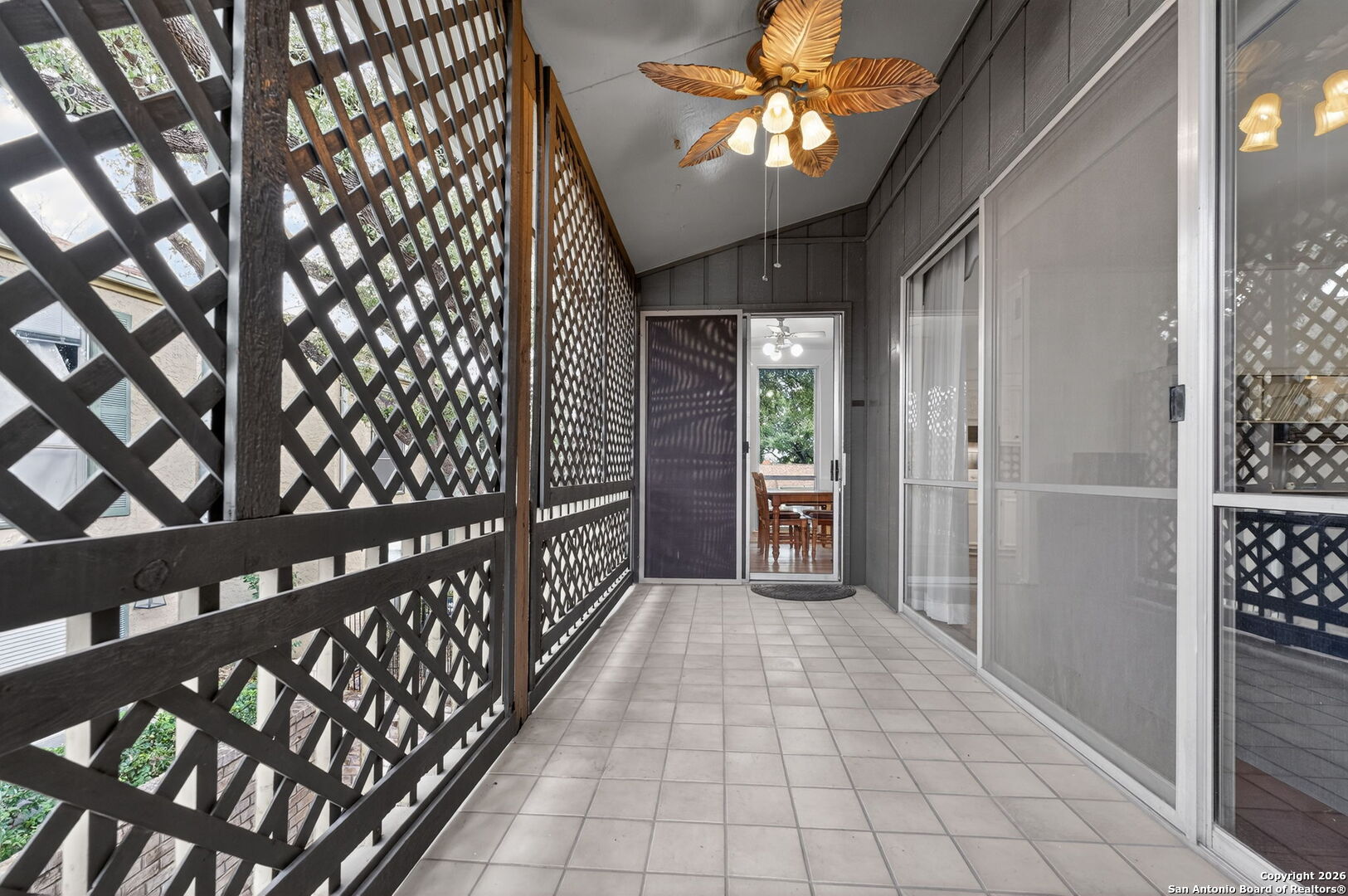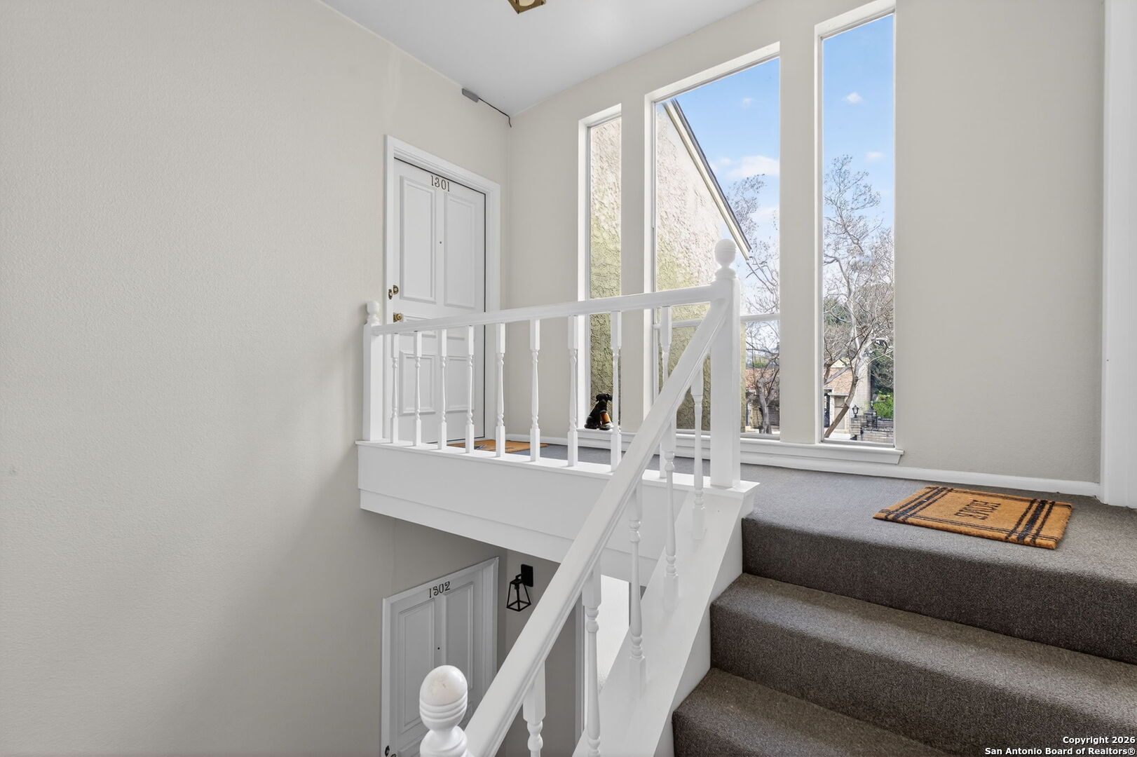 Motivated Sellers, that have taken well care of this 2 bed 2 bath second floor condo featuring rare, direct pool views from both the dining room and breakfast area. Enjoy the luxury of waking up to serene water views that only a handful of units offer. Monthly condo dues of $572 cover water, gas, trash service, four covered parking spaces, exterior insurance including roof and fire, landscaping, pool upkeep, and general maintenance. Residents also benefit from commercial electric service for reduced utility costs. Inside you'll find fresh paint, newly painted kitchen cabinets, European Oak luxury vinyl plank flooring in the kitchen, and a brand new stainless steel dishwasher. The kitchen showcases charming Saltillo tile countertops and flows into a spacious dining area highlighted by a large picture window overlooking the pool. The living space features engineered hardwood floors, while the bedrooms and dining area are comfortably carpeted. Ceiling fans throughout, oversized walk in closets in both bedrooms, and a primary suite with separate tub and walk in shower add to the comfort. Two private patios offer peaceful outdoor living spaces, one off the living room and another off the secondary bedroom, with one featuring tile flooring and a ceiling fan. Additional features include a full size washer and dryer, side by side refrigerator with ice and water, and double pane windows. Located in a gated community within highly desirable Northeast ISD and just minutes from shopping, schools, and major highways. All utilities are included except electricity. Valet trash service included. Schedule your showing today and secure one of the few pool facing units in the community.