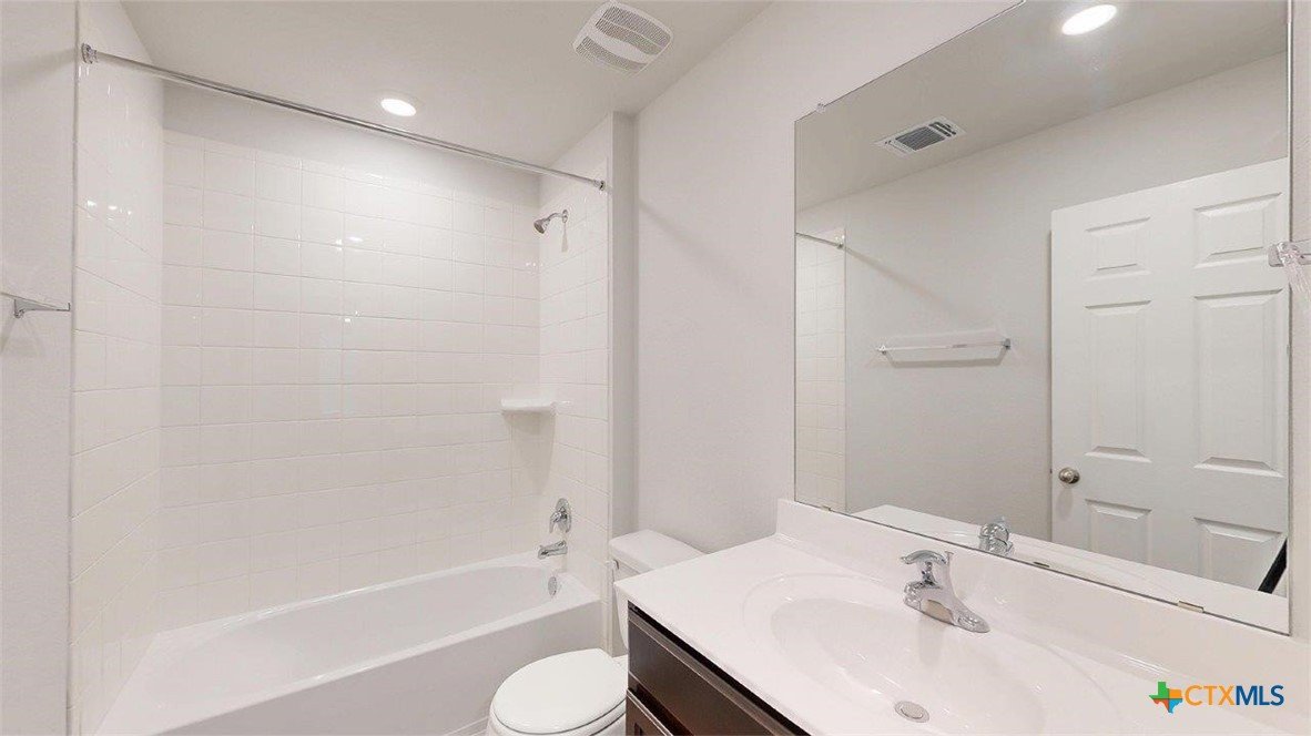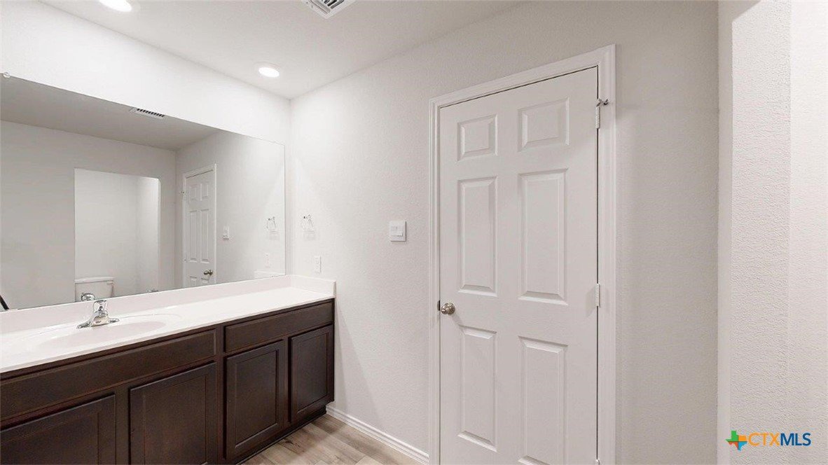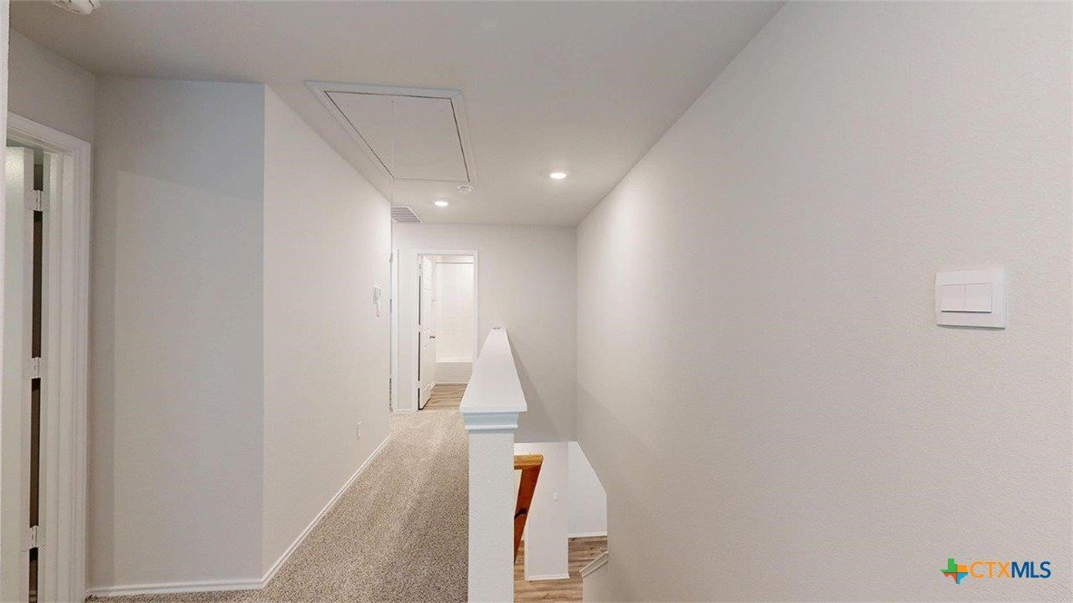 Step into the Emma floorplan at our Turnbo Ranch community in Killeen, Texas. This two-story floorplan offers approximately 1,700 square feet, 3 bedrooms, 2.5 bathrooms and a 2-car garage. Walk into the long foyer straight into the large family room overlooking the spacious kitchen and dining nook. The kitchen features granite countertops, flat panel birch cabinets, granite backsplash, stainless-steel appliances, and a kitchen island. Enjoy nature of the backyard with the covered patio that is attached to the nook. Heading upstairs you will have access to both secondary bedrooms and the primary bedroom. Each of the secondary bedrooms include carpet and walk-in closets with easy access to the laundry room and secondary bathroom. Relax in the primary bedroom that has an attached bathroom with walk-in shower and an optional double vanity sink, and a spacious walk-in closet. Each of our D.R. Horton homes has smart home technology built in. With the smart home technology, you’ll never be far from home. Contact us today to learn more about the Emma floorplan!