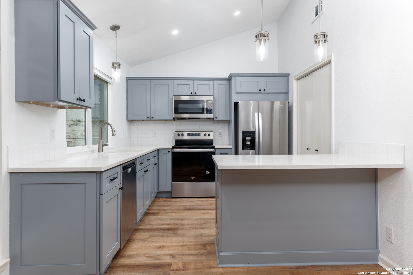 Welcome to this recently renovated 3 bed/2 bathroom home, offering a ton of modern upgrades. Step inside to find vaulted, beamed ceilings that create an open feel, complemented by wood laminate flooring throughout the main living area and the entire home. The heart of the home is the bright, open kitchen, featuring quartz countertops, a breakfast bar, and ample prep space-perfect for everyday living and entertaining. The kitchen flows into the dining area and all three bedrooms are generously sized, providing comfort and flexibility for family, guests, or a home office. Recent renovations include new double pane windows, wood flooring, electrical up to code, new water heater, new stainless steel appliances, quartz countertops, modern kitchen, lighting fixtures, soft closing drawers, recess lighting upgraded ceiling fans, plumbing, new smoke and carbon monoxide detectors, new interior doors, and smart locks. Outside, enjoy the spacious backyard with both a covered deck and a covered patio that is ideal for relaxing or hosting gatherings. A 2 car garage plus an additional carport offer plenty of parking and storage options. With wonderful finishes and a welcoming community, this home is ready for its next chapter. Close to local shopping, restaurants, and highways. Click the Virtual Tour link to view the 3D walkthrough. Discounted rate options and no lender fee future refinancing may be available for qualified buyers of this home.