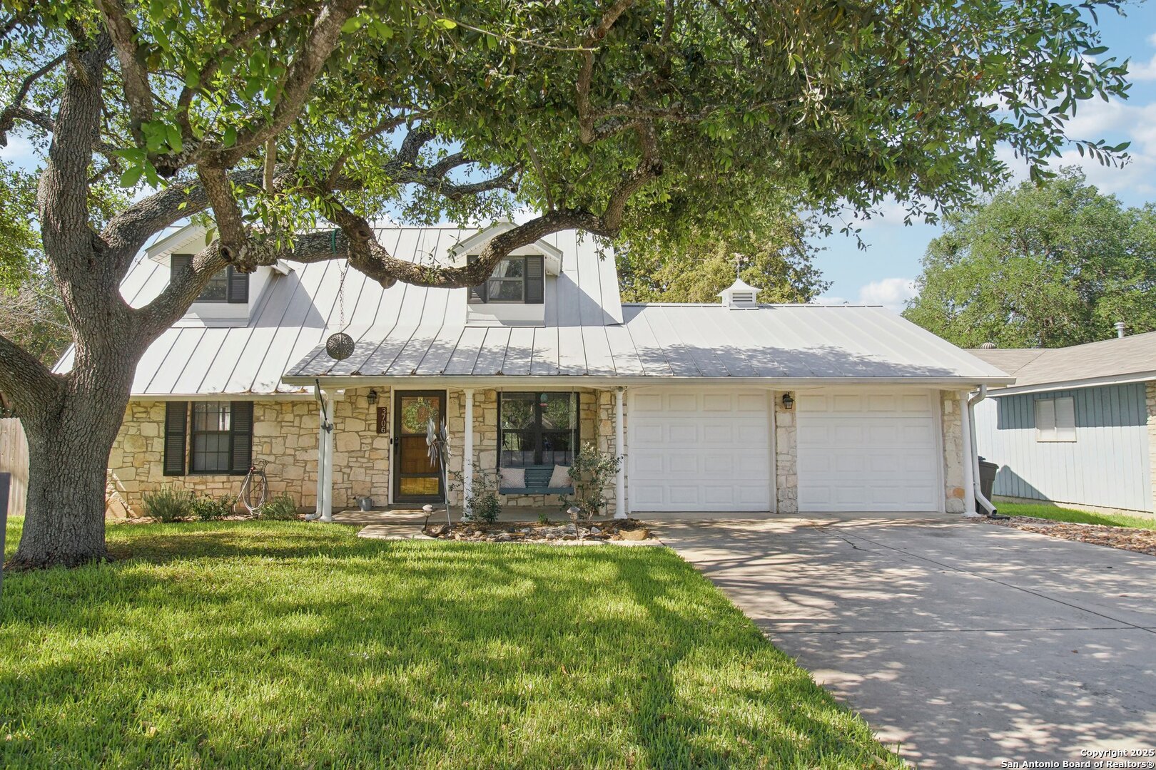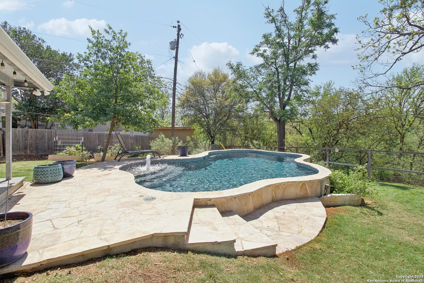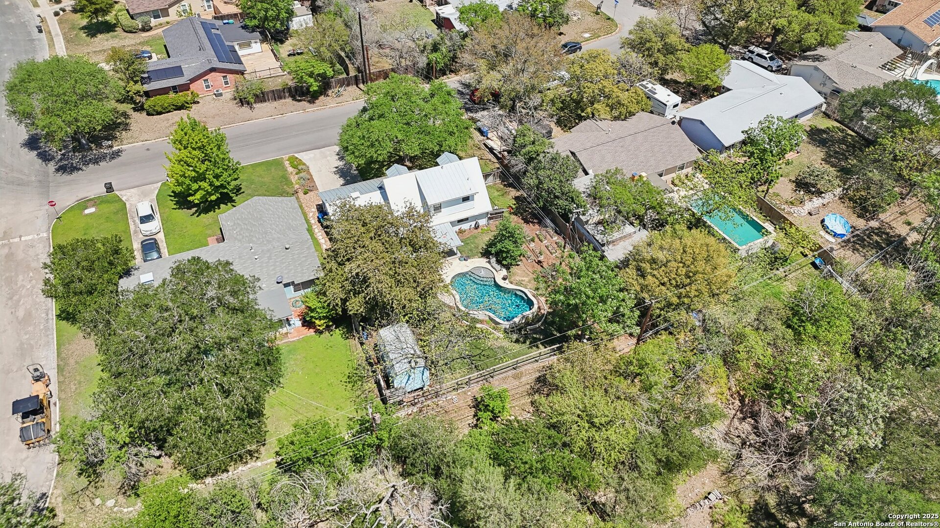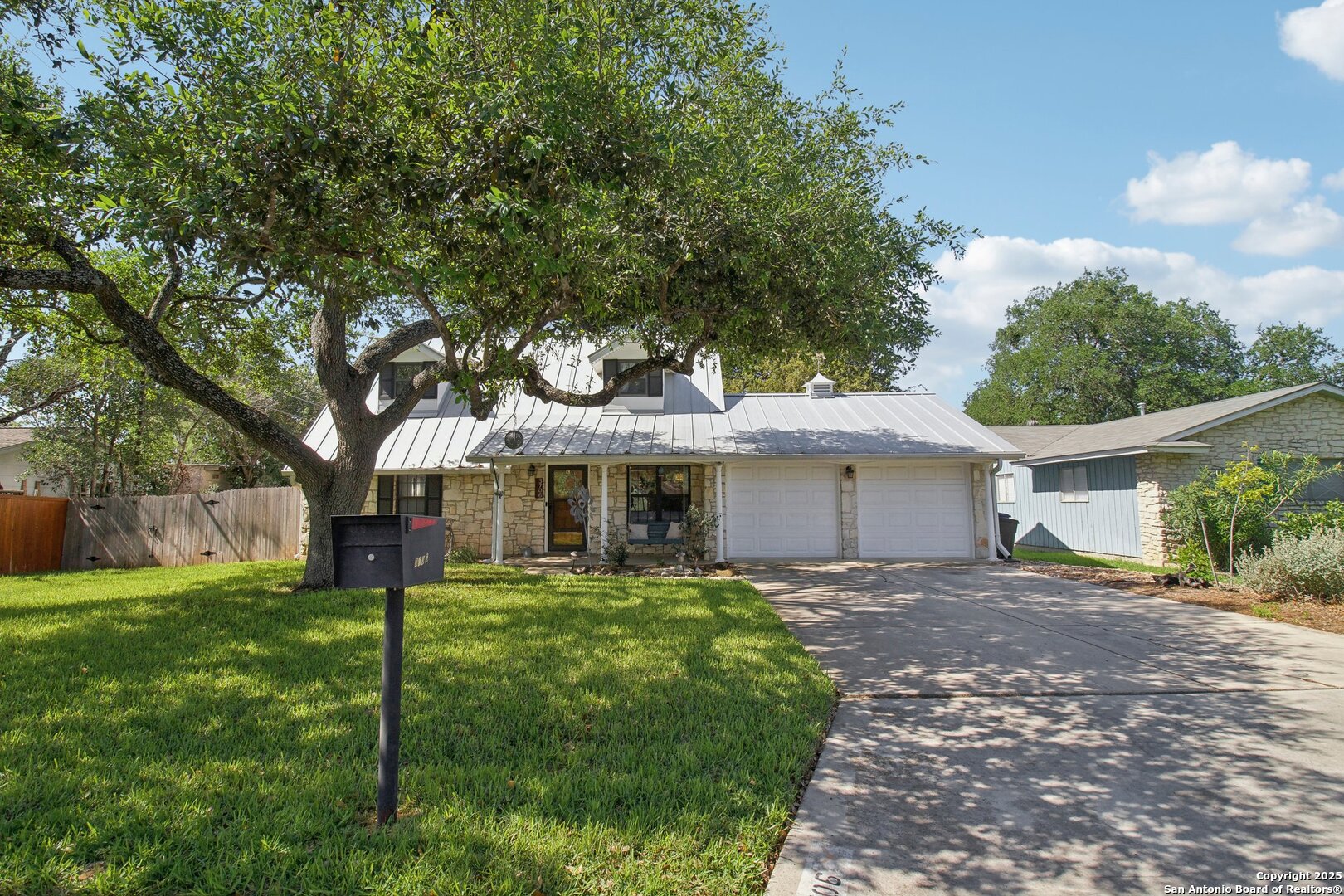 Come visit this one-of-a-kind charming ranch-style home, featuring a metal roof and gabled dormers. The inviting front porch and meticulously landscaped lawn, complete with St. Augustine grass, offer exceptional curb appeal. Looking for upgrades? This home has it all! It boasts new tile flooring and a complete kitchen remodel, including an island backsplash, quartz countertops, a chef's range with an induction cooktop, and all appliances, including a beverage fridge, washer, and dryer. The open floor plan, renovated in 2019, features new fixtures and recessed lighting. The primary bedroom is located downstairs, while the other two bedrooms are upstairs, with upgraded bathroom vanities and lighting. Step outside to nearly a 2/3-acre lot that includes a new Keith Zar pool, a spacious covered patio and deck, raised flower beds, outdoor lighting, a new shed, a pollinator garden, and a new exterior fence. Enjoy water-saving plants and fruit trees, as well as an irrigation system. For entertaining, there's even a fire pit! This home overlooks a wooded green belt with steps leading to Salado Creek in an established area close to Alamo Heights and San Antonio Airport. With easy access to highways, dining, and shopping, this home truly presents a perfect opportunity to own your own slice of paradise.