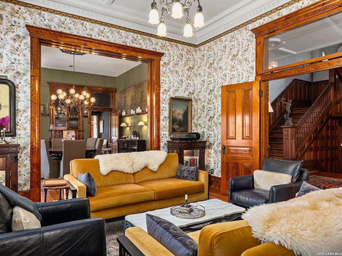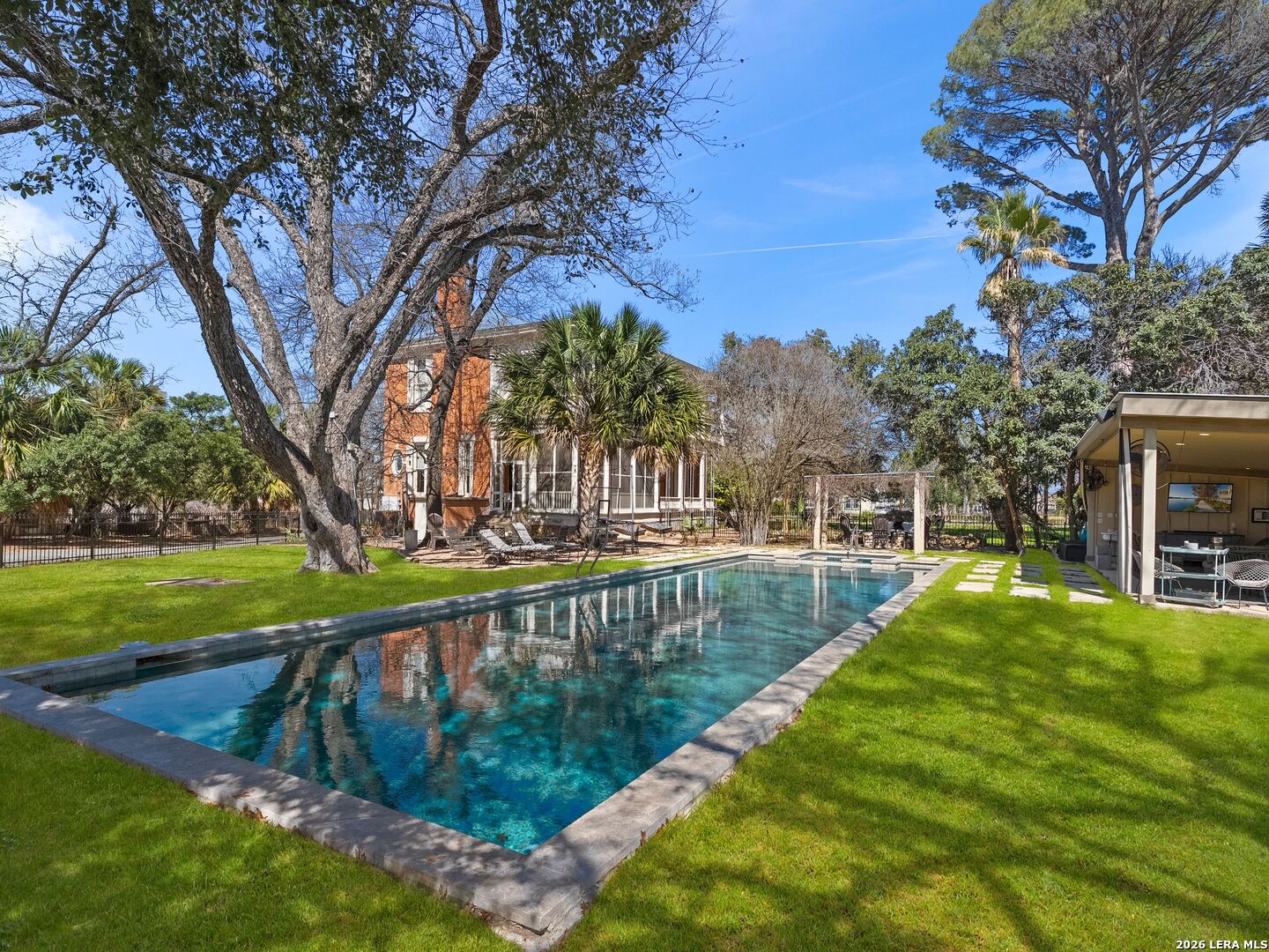 The Dittlinger Estate is not simply a residence-it is a cornerstone of New Braunfels history. Positioned on a 1.6-acre parcel within the revered Sophienburg Hill Historic District, this 1910 landmark was commissioned by Hippolyt Dittlinger, widely known as the Father of Industry in New Braunfels, and designed by James Wahrenberger, Texas' first professionally trained architect. A stately two-story brick facade, framed by symmetrical columned porches and ornate detailing, reflects a level of craftsmanship rarely seen today. The dramatic central bay window, deep overhanging eaves, and classical proportions speak to a time when homes were designed not just for living, but for legacy. The residence unfolds across 4,591 square feet, offering grand yet livable spaces, including longleaf yellow pine framing-milled on-site and prized for its exceptional durability. A full basement further distinguishes the home, adding to its rarity and functionality. Beyond the main residence, the estate features a historic carriage house and garage, a fully equipped guest residence known as the Professor's House, and a wash house with an upper open-air porch-each structure contributing to the property's rich narrative and versatility. The grounds themselves evoke the feeling of a private park. Mature pecan trees-some planted to commemorate family milestones-create a canopy of shade across the property, while a thoughtfully integrated pool and spa introduce modern luxury without compromising the estate's historical integrity. Situated directly across from the Sophienburg Museum and within walking distance to downtown, as well as a short golf cart ride to Landa Park, the Comal River, and Gruene, the estate is deeply embedded in the cultural fabric of the city. Carefully preserved by stewards who understood its significance-including descendants of the original family and a former mayor of New Braunfels who undertook a restoration worthy of its legacy-this property stands as a testament to enduring heritage and thoughtful stewardship. A landmark of distinction-offering a rare opportunity to own a defining piece of New Braunfels' heritage.