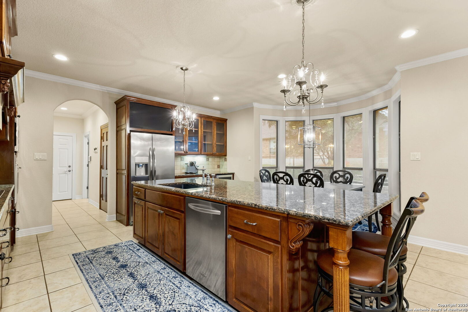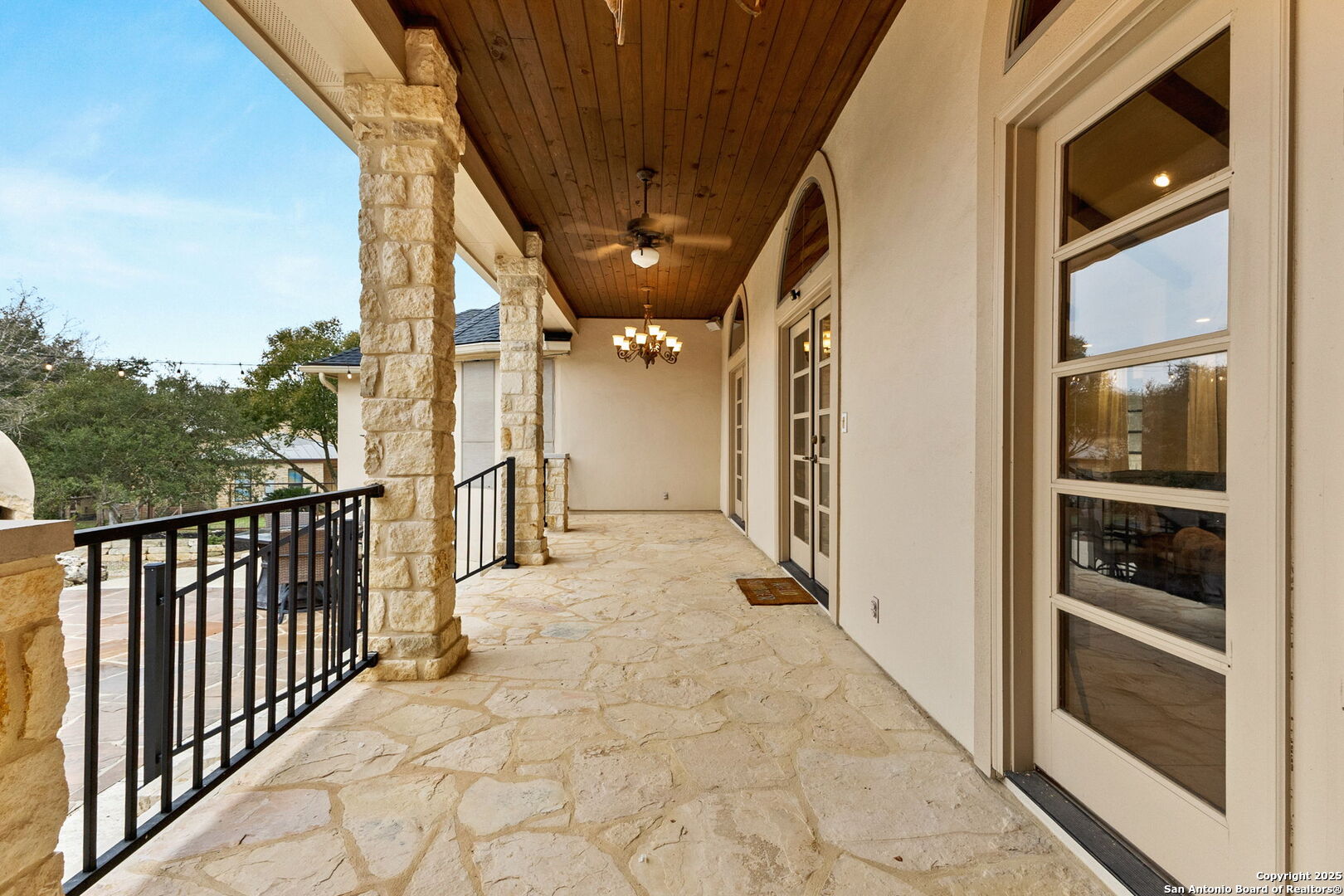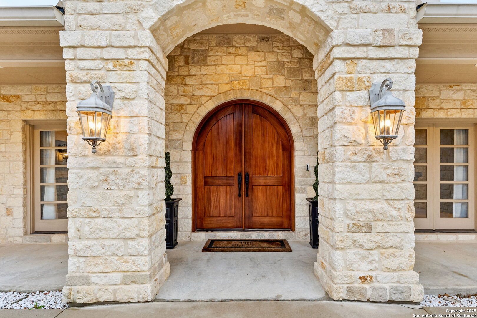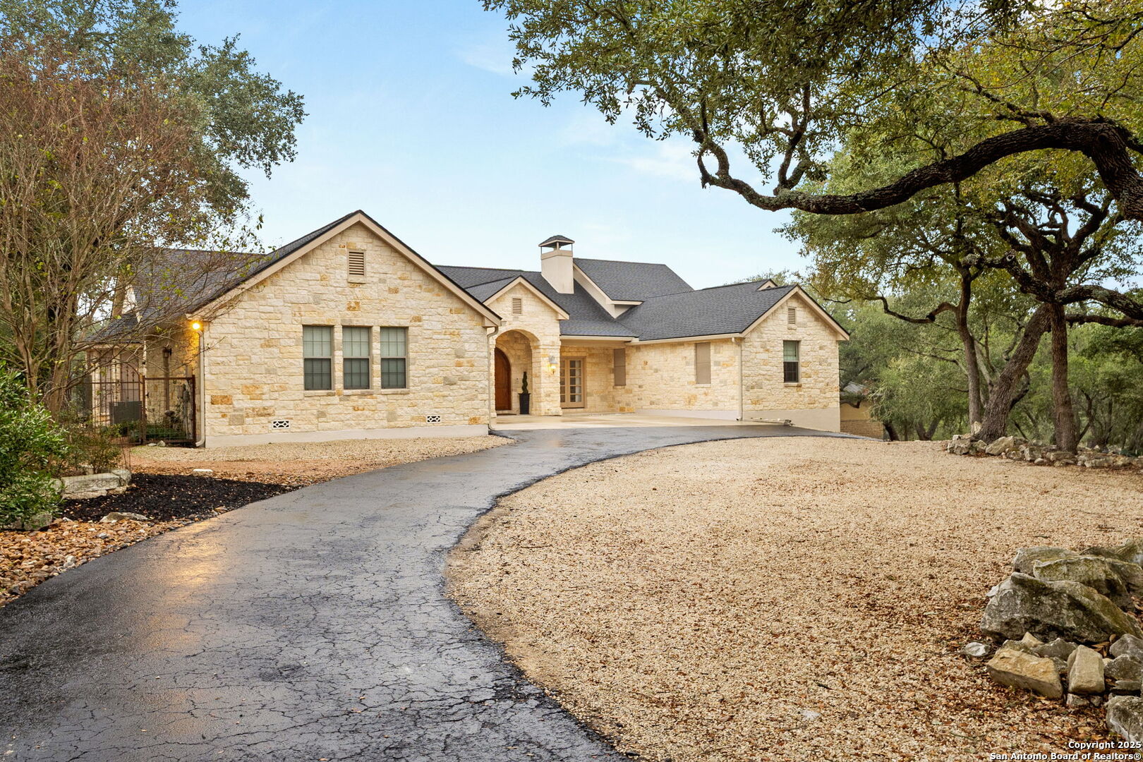 Experience refined Hill Country living in this exquisit Tuscan-inspired residence set on a 1-acre, oak-studded lot secured by an 8-ft deer fence. Through double arched mahogany doors, the grand entry introduces a beautiful living area with vaulted beamed ceilings, a stone fireplace and French doors that showcase the custom pool and generous patio. The outdoor living experience is exceptional, featuring a beautifully crafted custom pool, an inviting outdoor fireplace, and lush, tranquil surroundings that create the perfect backdrop for unwinding or entertaining. Inside, the gourmet kitchen delivers both style and function with custom cabinetry, Wolf appliances, a wine cooler, a generous pantry, and a cozy breakfast nook overlooking the garden. The split primary suite serves as a peaceful escape, complete with a spa-inspired bath and an expansive walk-in closet. Blending refined comfort with timeless Tuscan charm, this home offers an elevated and effortless Hill Country lifestyle.