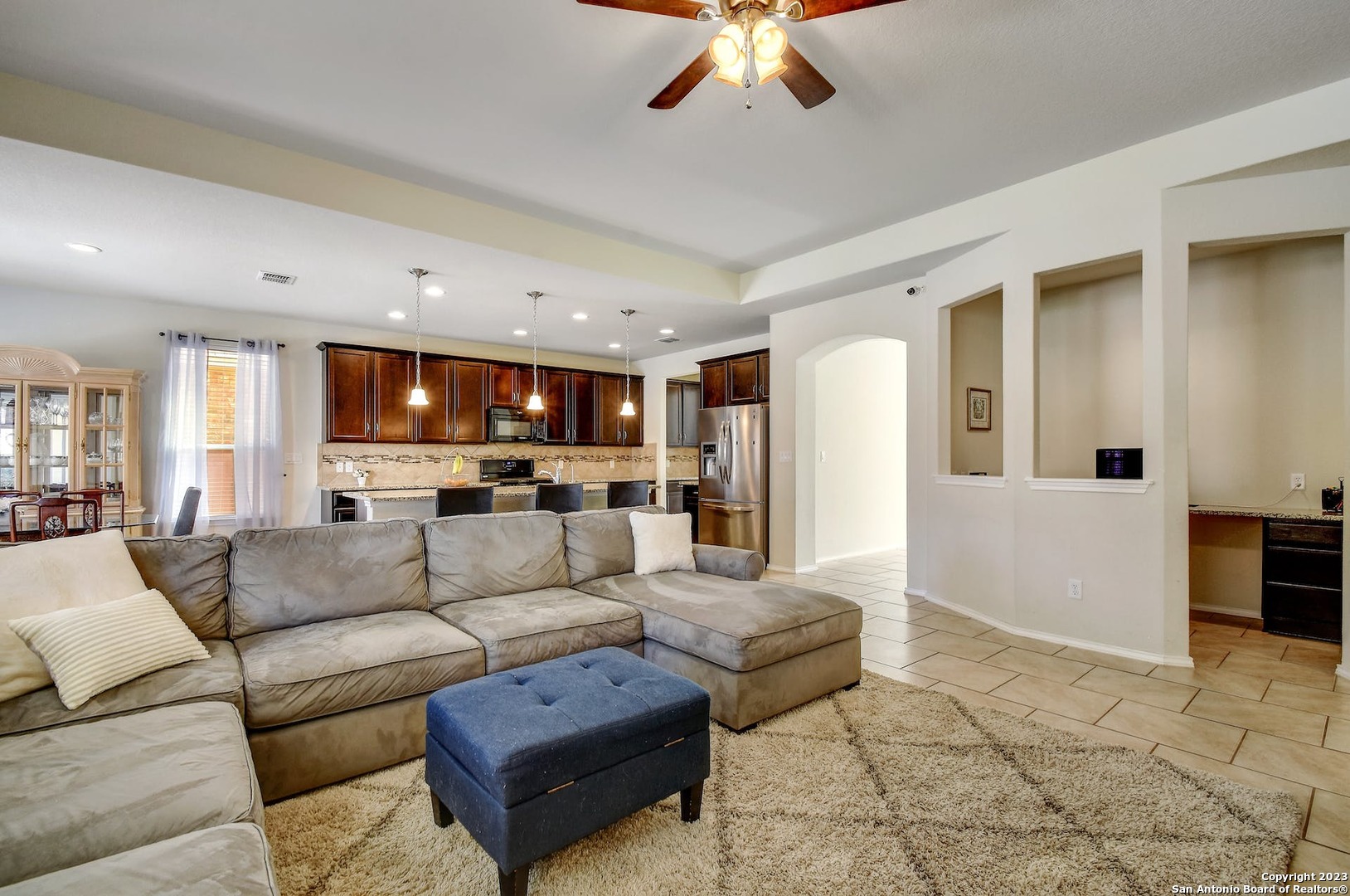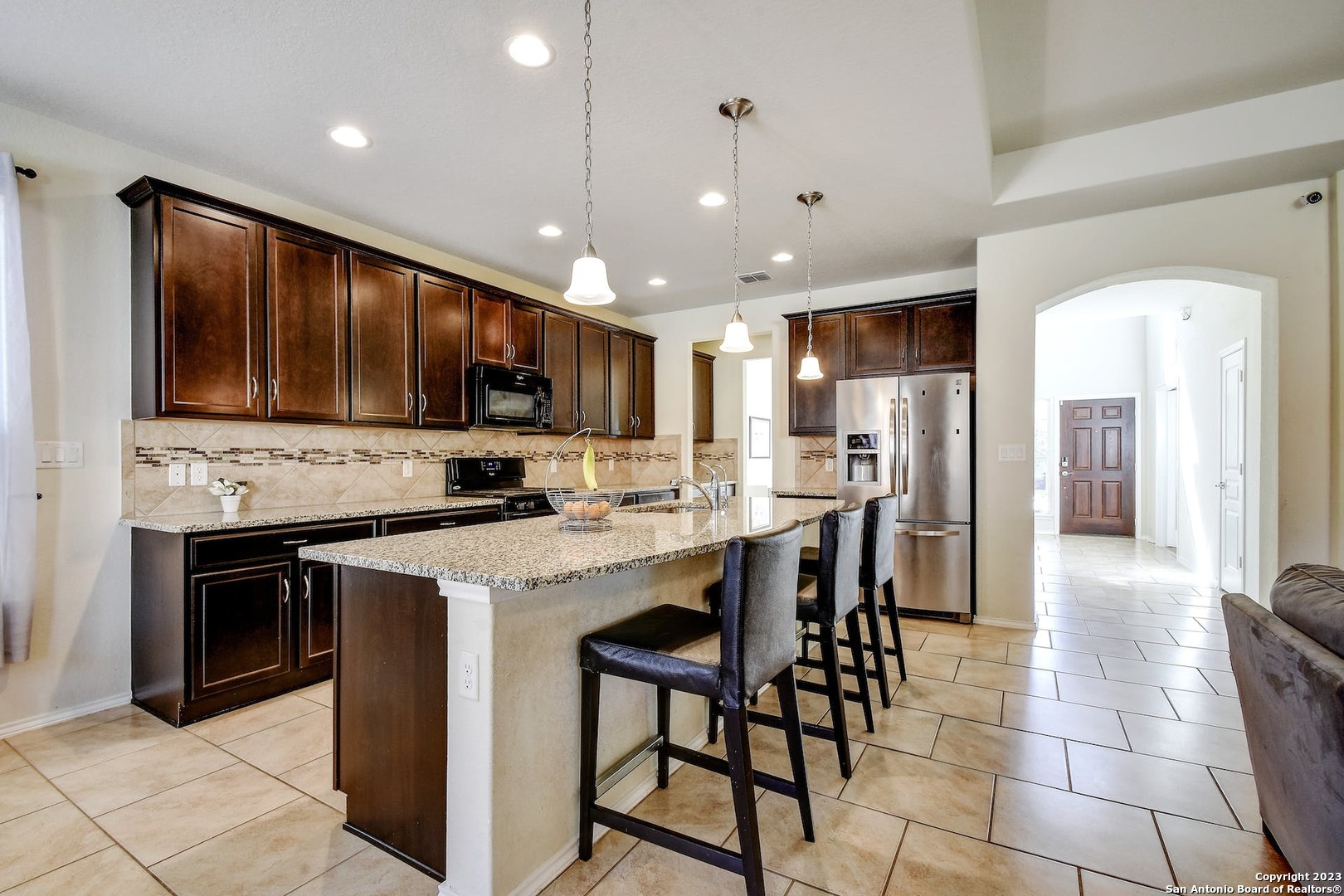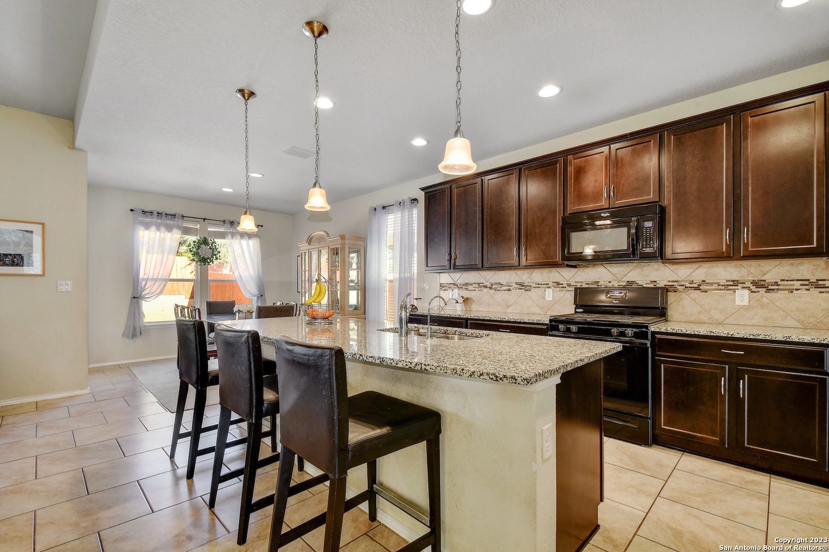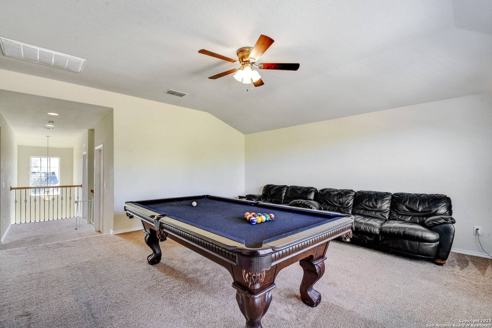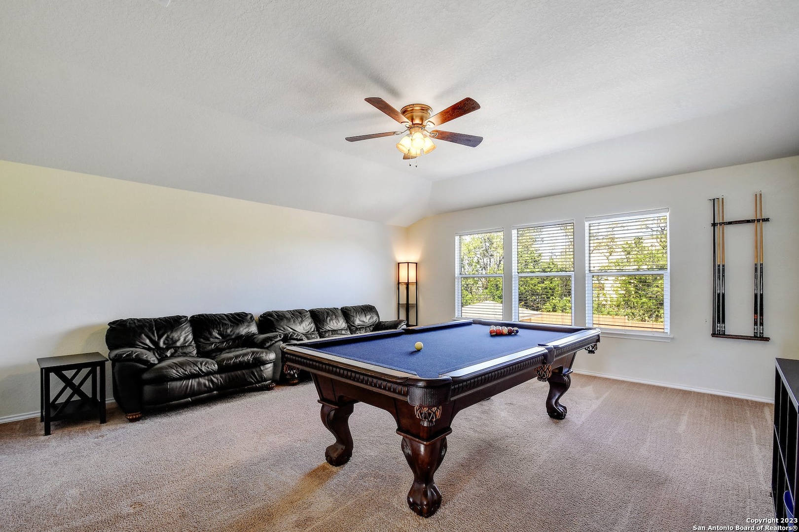 Step inside this stunning 4 bedroom rental home and discover comfort, space and sense of community. This two-story home is situated in popular Alamo Ranch. The home facade features a combination of brick and siding accents, adding to its modern curb appeal. The kitchen boasts a large breakfast bar, perfect for preparing meals and entertaining guests, stainless steel appliances, granite countertops, gas cooking and ample cabinet space for storage. Carpet only upstairs in the game room and bedrooms. Ceramic T