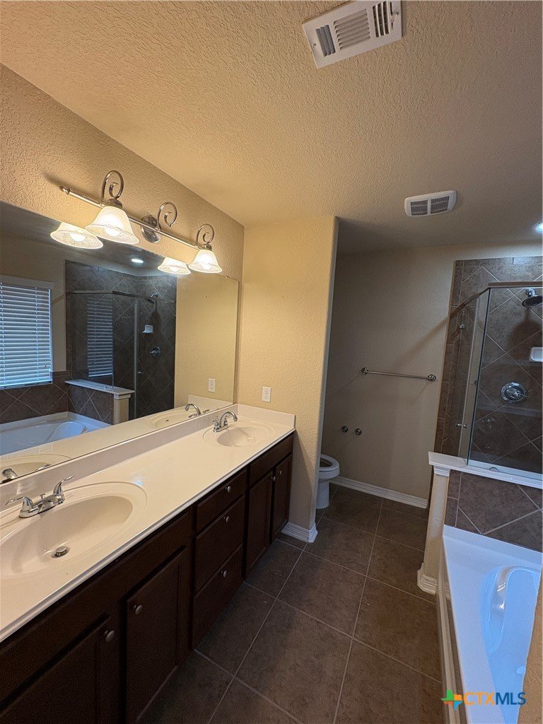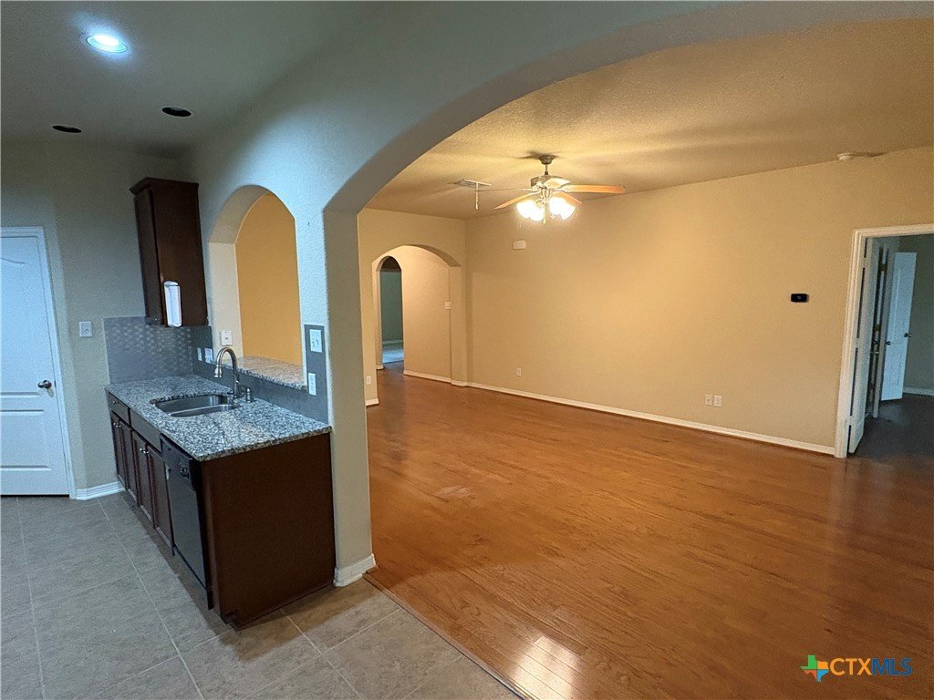Great home ready for immediate move in. Three bedrooms, two bathrooms, two car garage. Private backyard with large covered patio. Solid surface counter tops in kitchen with refrigerator, electric stove, microwave, double stainless sink, open to living room. Master suite has ceiling fan, blinds on windows, coffered ceiling, large walking closet, soaking tub with separate walk in shower and vanity with two sinks. Easy to maintain yard. Near Interstate 35 but far enough not to hear noises.