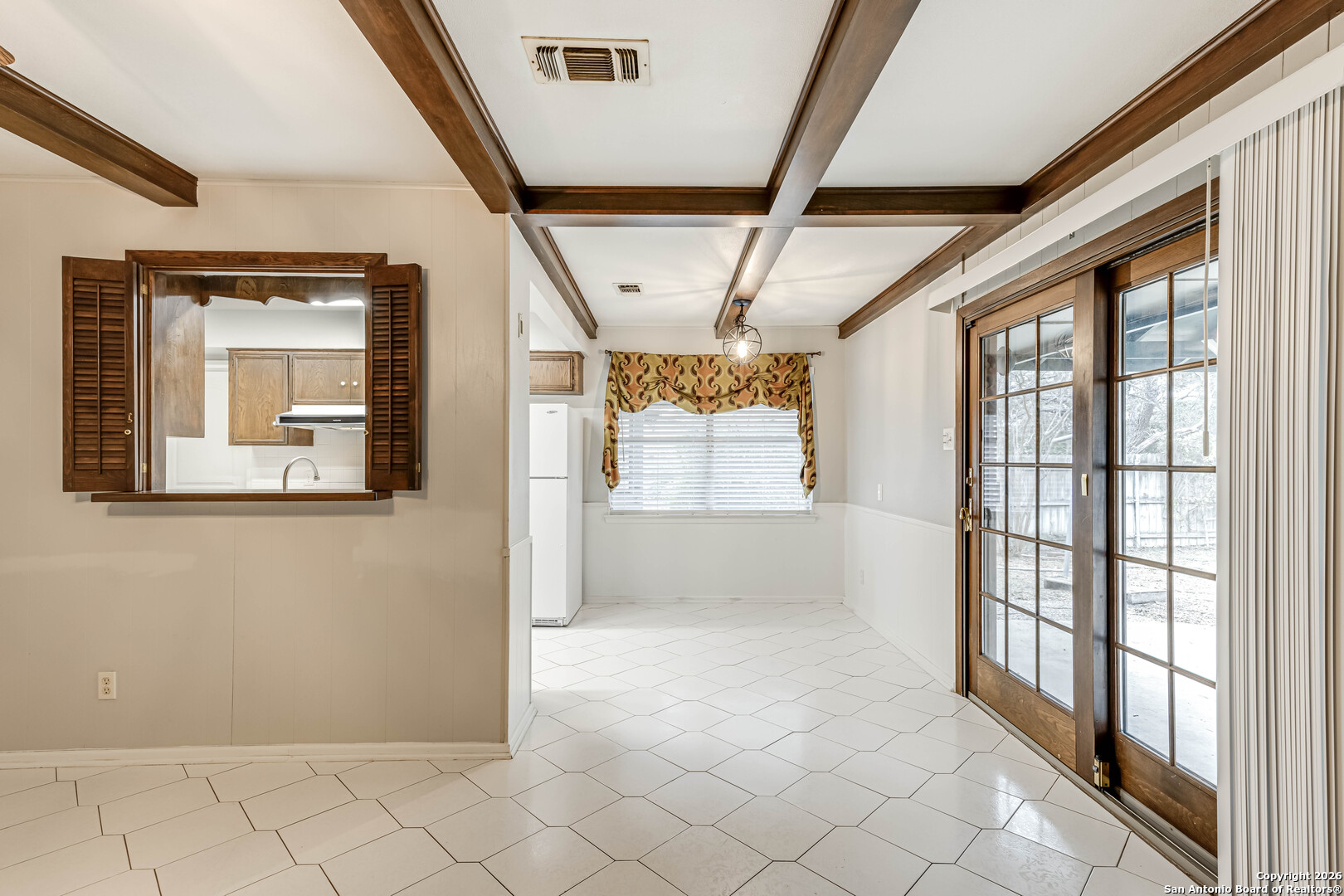 Discover the perfect blend of timeless charm and modern comfort in this beautifully updated 3-bedroom, 2-bath ranch-style home in the highly desirable Colonies North community. Thoughtfully maintained and movein ready, this home features updated flooring, fresh interior and exterior paint, a new roof (2024), new bathroom countertop and sink, a spacious laundry room, and a new water heater. The inviting living room showcases a vaulted ceiling that enhances the open, airy feel of the space. Step outside to a serene backyard retreat, complete with a large covered patio and mature trees that offer natural shade and privacy-ideal for relaxing afternoons or effortless outdoor entertaining. More than just a home, this Colonies North gem offers a lifestyle of convenience, comfort, and understated elegance.