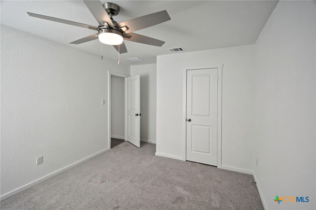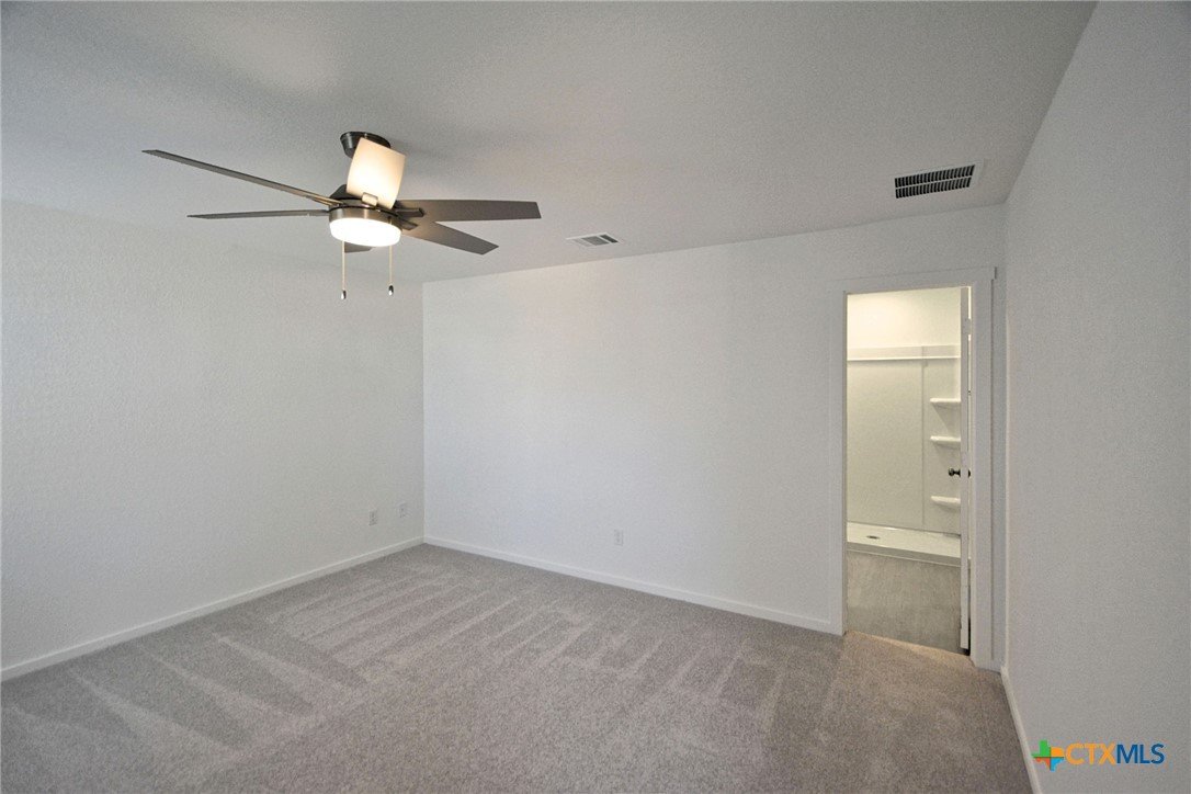 Find yourself at home in the Steelwood Trail community with this adorable light blue 3 bed/2 bath new construction home in split bedroom configuration. The open floor plan allows endless living possibilities with easy access to the kitchen featuring stainless steel appliances. All 3 bedrooms comes with fresh new carpeting and ceiling fans. Step into the primary suite with private bath, walk-in shower, and walk-in closet. Venture out into the private backyard with plenty of room to run around. This home is less than 5 minutes away from the City of New Braunfels' Morningside Park providing residents with many immersive activities such as StoryWalk® trail, basketball court, picnic area, and shaded playgrounds.