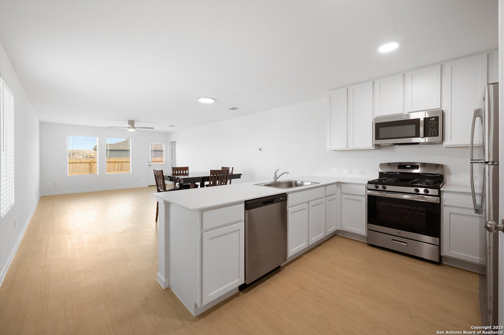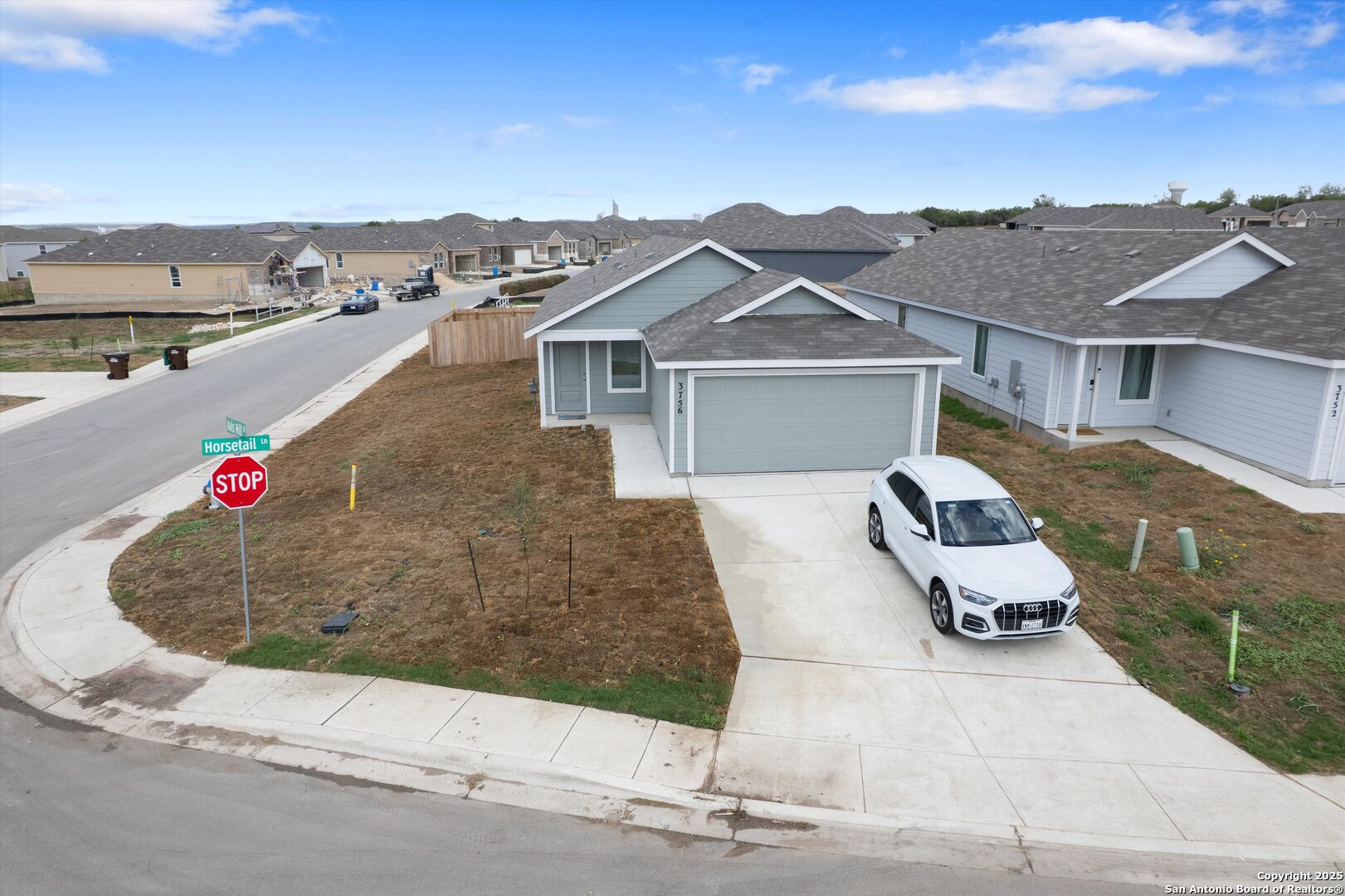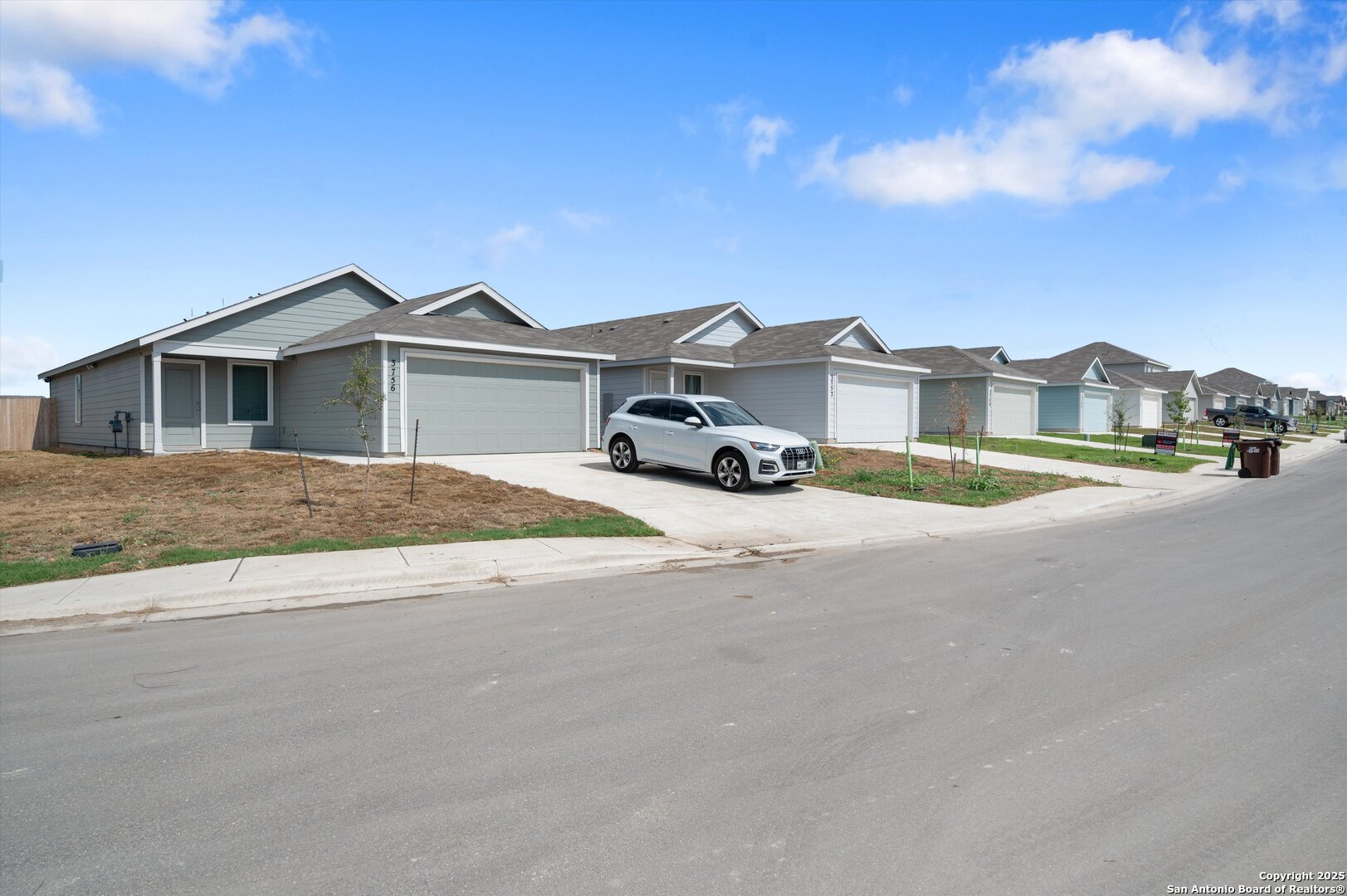 Inviting open-concept floor plan property in Steelwood Trails! This 1402 Sq Ft home, built in 2024, offers modern comfort and thoughtful upgrades throughout. The property comes complete with a refrigerator, washer, and dryer for added convenience. Enjoy new lighting in all bedrooms, a freshly epoxied garage floor with shelving, and a sprinkler system to keep your lawn lush. Additional features include flood lighting with motion detection, a newly installed outdoor water faucet, and extra tiles extending the exterior walkway. Located close to shopping, dining, and the charm of historic Gruene-this home combine style, functionality, and a prime location.