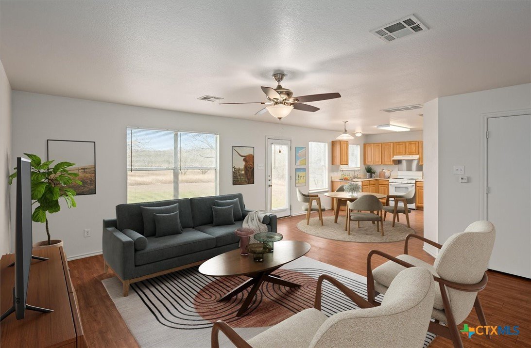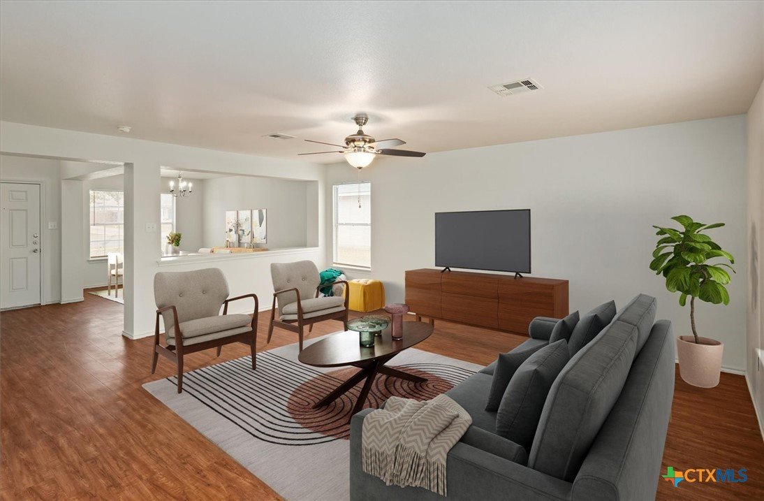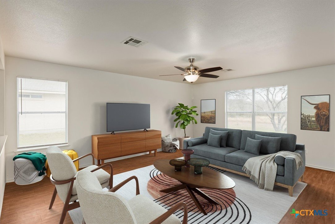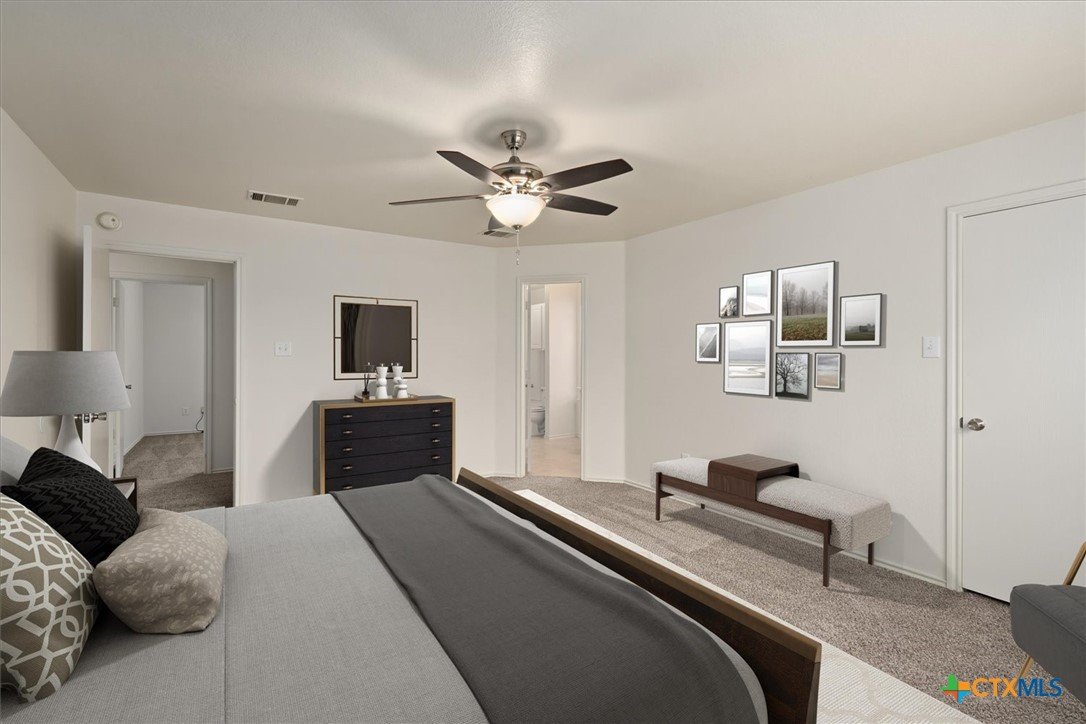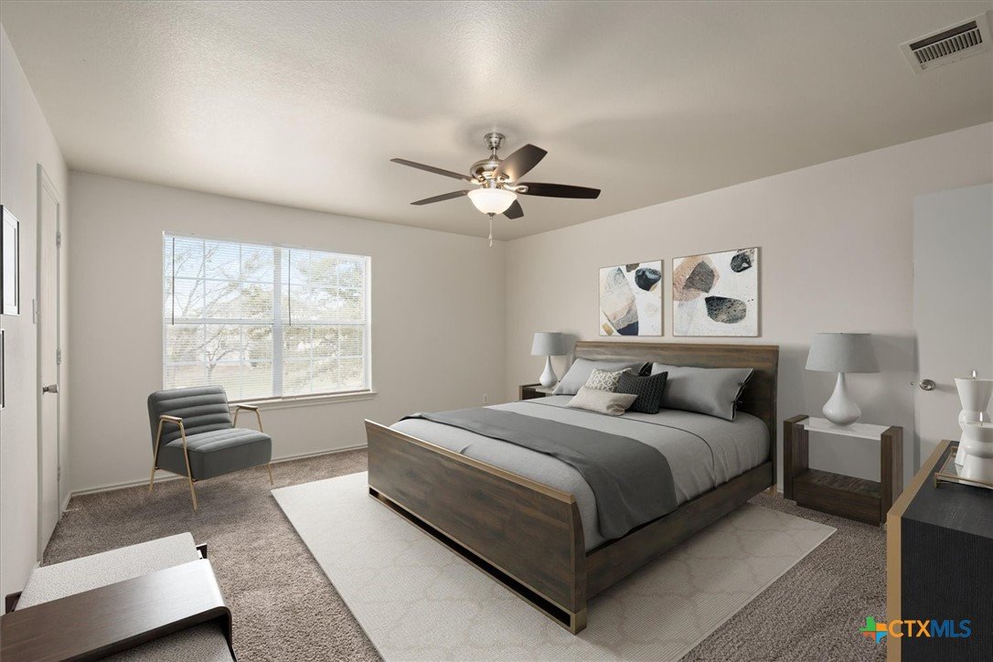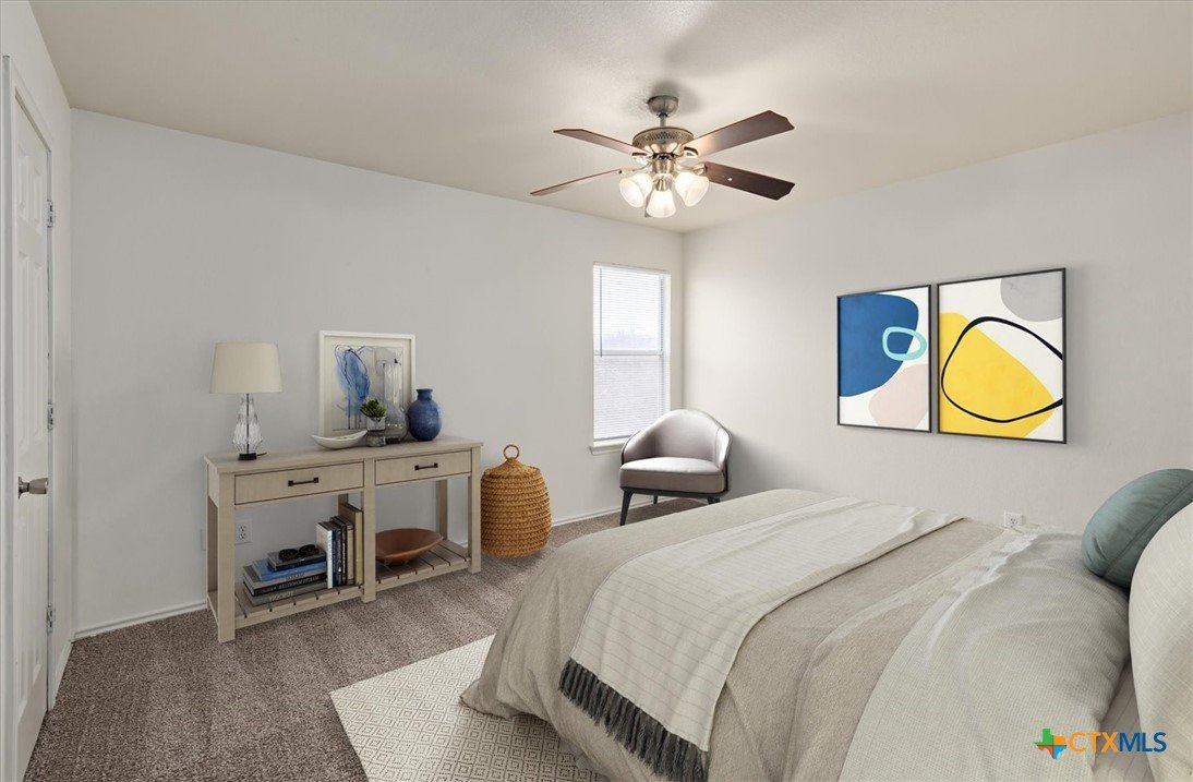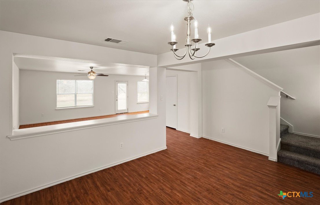 Spacious 2,100 sq. ft. home featuring 4 bedrooms, 2.5 bathrooms, and fantastic open layout with subtle separations. The large kitchen with pantry opens to a breakfast area and an expansive backyard of 1.5+ acres, ideal for outdoor activities, gardening and much much more. Upstairs, the primary suite includes two walk-in closets and an en-suite bathroom, while each of the additional bedrooms also features its own walk-in closet, offering ample storage space throughout. The home also includes a two-car garage, adding convenience and extra storage. Interior repainted in Fall of 2024 and all carpet replaced in Fall of 2024. Located in a quiet neighborhood, this home provides easy access to schools, local amenities, and the community of Kyle.