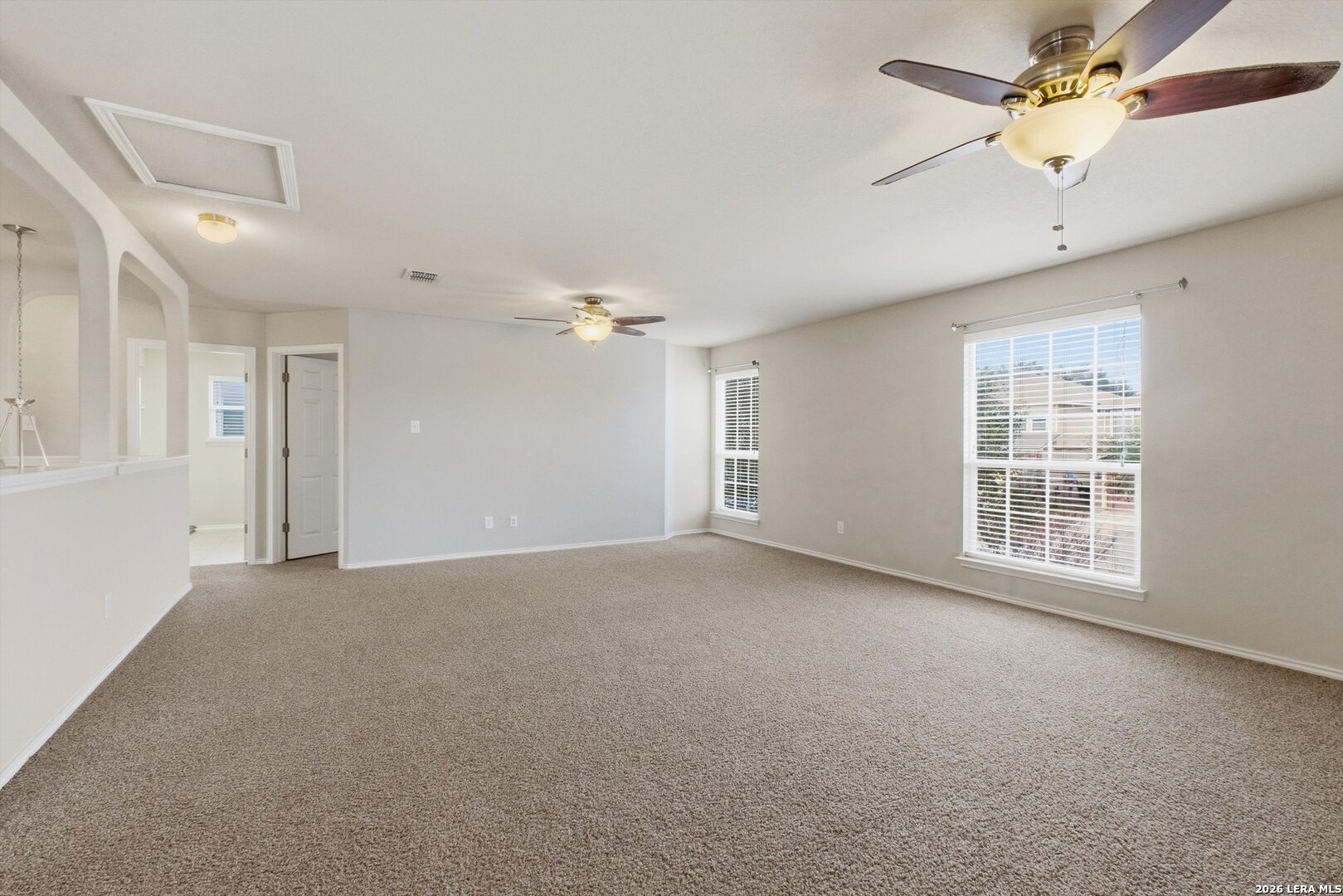 Beautiful Home in Sought-After Redbird Ranch - Lower Taxes & No Extra Water Tax! Located in desirable Medina County, this stunning 4-bedroom, 2.5-bath home offers both beauty and functionality - move-in ready and shows like a model! The curb appeal is immediately impressive, with a manicured lawn and a covered entryway leading to an elegant interior filled with natural light. Inside, you'll find New flooring and paint throughout, recessed lighting, ceiling fans, and a spacious family room that opens to an island kitchen featuring stainless steel appliances, a tile backsplash, built-in microwave, and ample cabinet storage. The inviting breakfast area and formal dining room are perfect for gatherings and entertaining. Enjoy the privacy of a downstairs primary suite, complete with a garden tub, double vanity, and generous closet space. Upstairs, a large game room and well-sized bedrooms provide flexible living spaces for every need. Step outside to a covered patio overlooking a neatly but large landscaped backyard, ideal for relaxing or hosting friends. The community amenities are fantastic - don't miss the Community Swimming Center - and an elementary school in the neighborhood with lots of amenities nearby makes this home especially family-friendly. Enjoy the prime location near local attractions and major destinations, making this home ideal for both work and recreation. With lower taxes, no water tax, and a pristine interior, this home truly has it all!