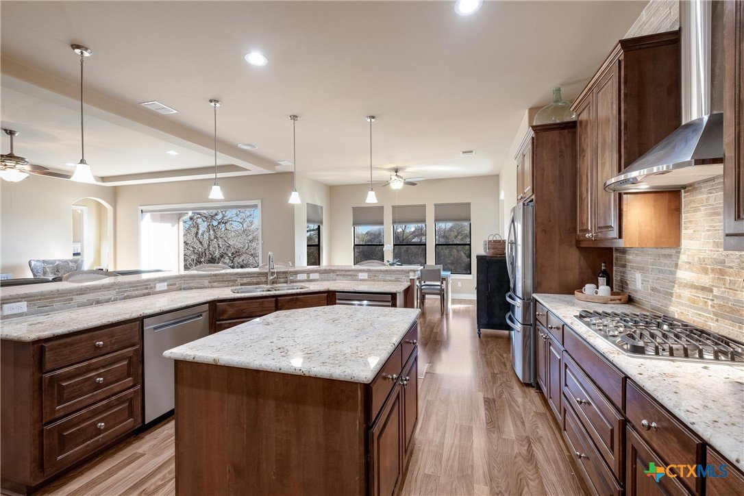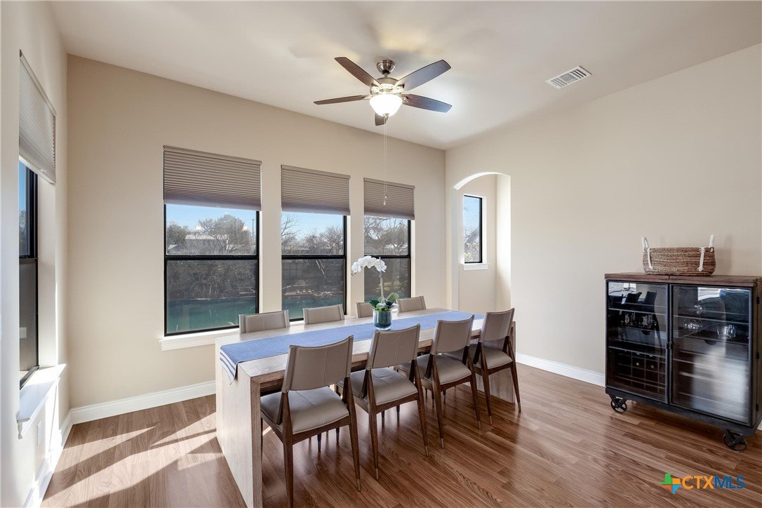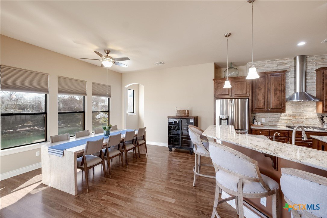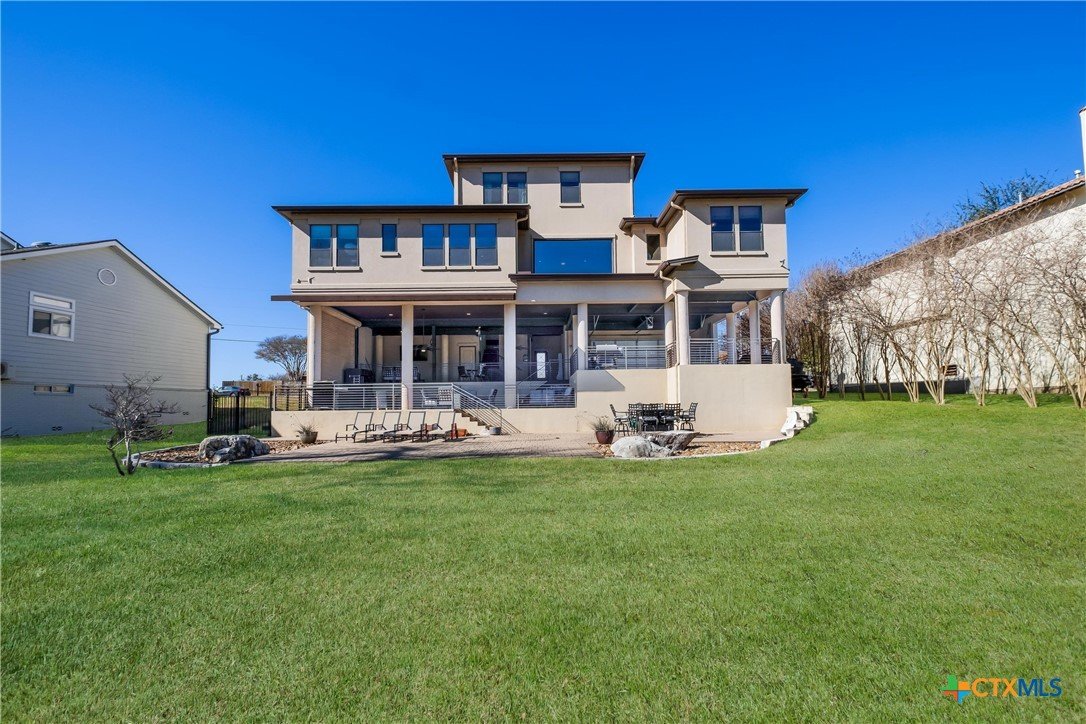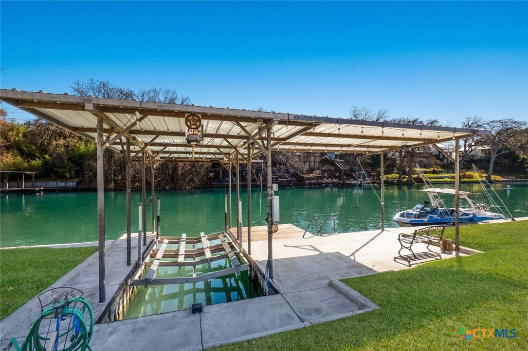 Discover 119 feet of prime waterfront living on Lake Dunlap, where every detail is designed for those who crave the ultimate lake life. Start your day fishing off the private boardwalk or launch your boat from the electric lift for endless cruising on some of the clearest waters around. Positioned for maximum enjoyment, this property lets you dive into the good life—literally. Host epic gatherings on the expansive, tiered patios spanning over 1,800 square feet. Whether you’re enjoying drinks in the shade or soaking in the evening vibes with music from the built-in sound system, this space was made for having a good time. Inside, ginormous windows frame stunning lake views, and a thoughtfully designed kitchen takes entertaining to the next level. Granite countertops, a massive center island, and a five-burner gas cooktop with dual ovens make meal prep a breeze, while the breakfast bar and adjoined dining area offer unbeatable views with every bite. When it’s time to unwind, the owner’s suite provides a front-row seat to the water, paired with a spa-like bath featuring an oversized dual-head shower for a true retreat experience. This is more than a property; it’s your ticket to a lifestyle filled with sunrise fishing trips, sunset cruises, and endless lakefront adventures. Lake Dunlap is calling—are you ready to answer?