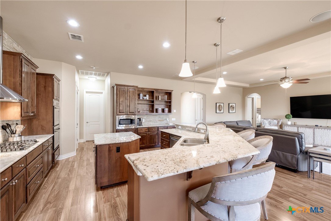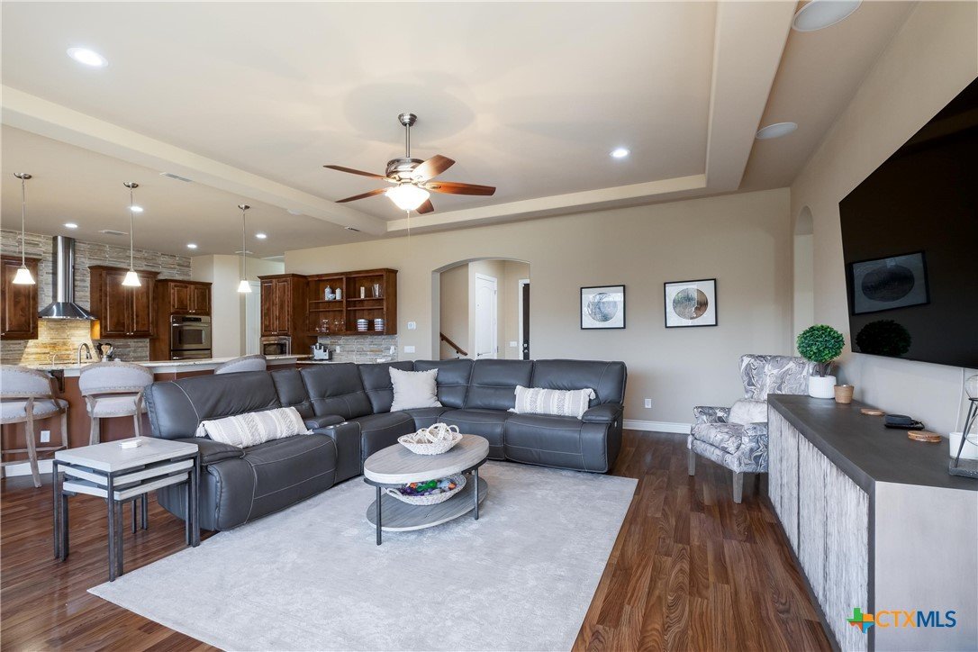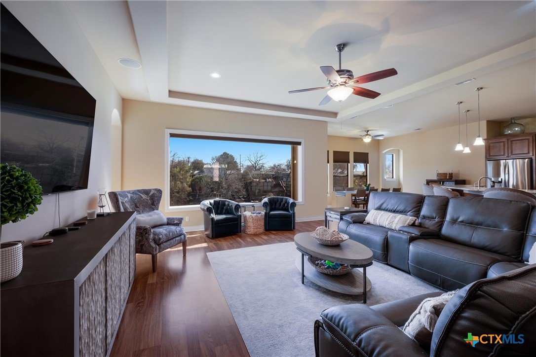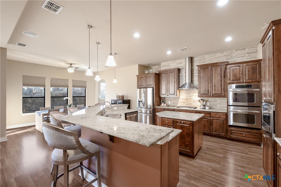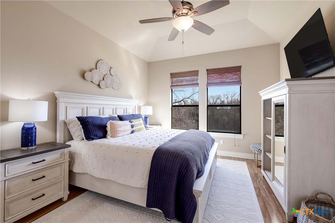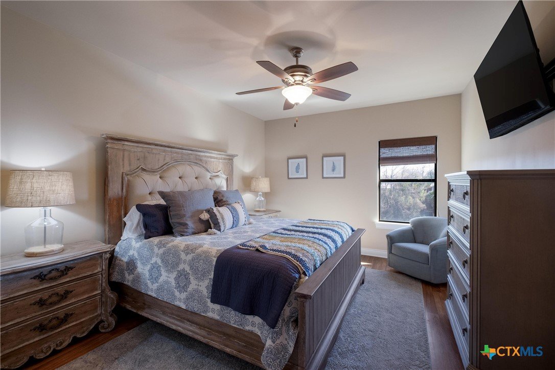 Discover 119 feet of prime waterfront living on Lake Dunlap, where every detail is designed for those who crave the ultimate lake life. Start your day fishing off the private boardwalk or launch your boat from the electric lift for endless cruising on some of the clearest waters around. Positioned for maximum enjoyment, this property lets you dive into the good life—literally. Host epic gatherings on the expansive, tiered patios spanning over 1,800 square feet. Whether you’re enjoying drinks in the shade or soaking in the evening vibes with music from the built-in sound system, this space was made for having a good time. Inside, ginormous windows frame stunning lake views, and a thoughtfully designed kitchen takes entertaining to the next level. Granite countertops, a massive center island, and a five-burner gas cooktop with dual ovens make meal prep a breeze, while the breakfast bar and adjoined dining area offer unbeatable views with every bite. When it’s time to unwind, the owner’s suite provides a front-row seat to the water, paired with a spa-like bath featuring an oversized dual-head shower for a true retreat experience. This is more than a property; it’s your ticket to a lifestyle filled with sunrise fishing trips, sunset cruises, and endless lakefront adventures. Lake Dunlap is calling—are you ready to answer?