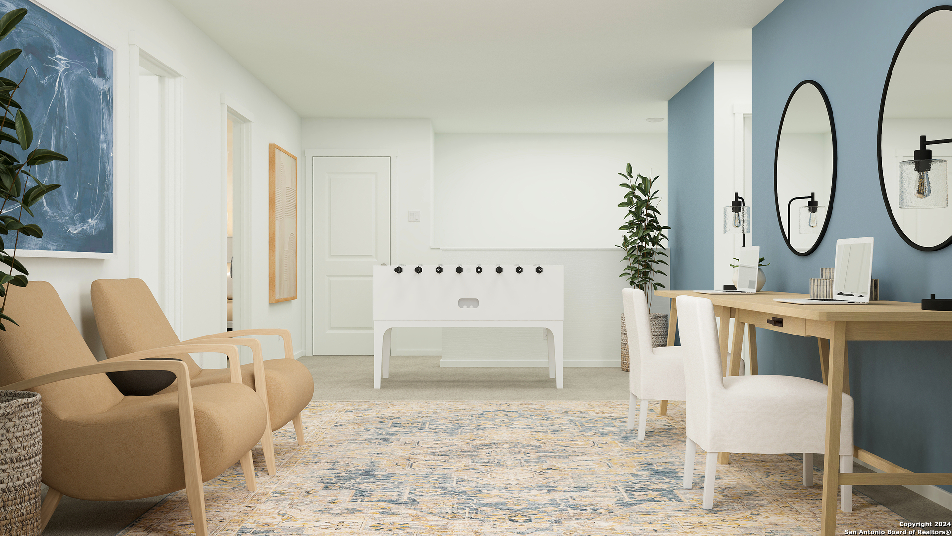 The Littleton - On the first floor of this spacious two-story home is a convenient and modern layout seamlessly connecting the kitchen, dining room and family room together. In a private corner is the tranquil owner's suite with an attached bathroom and walk-in closet. Upstairs is a sprawling central game room made for gatherings of all sizes, along with three secondary bedrooms to provide sleeping accommodations. Prices and features may vary and are subject to change. Photos are for illustrative purposes. COE April 2025