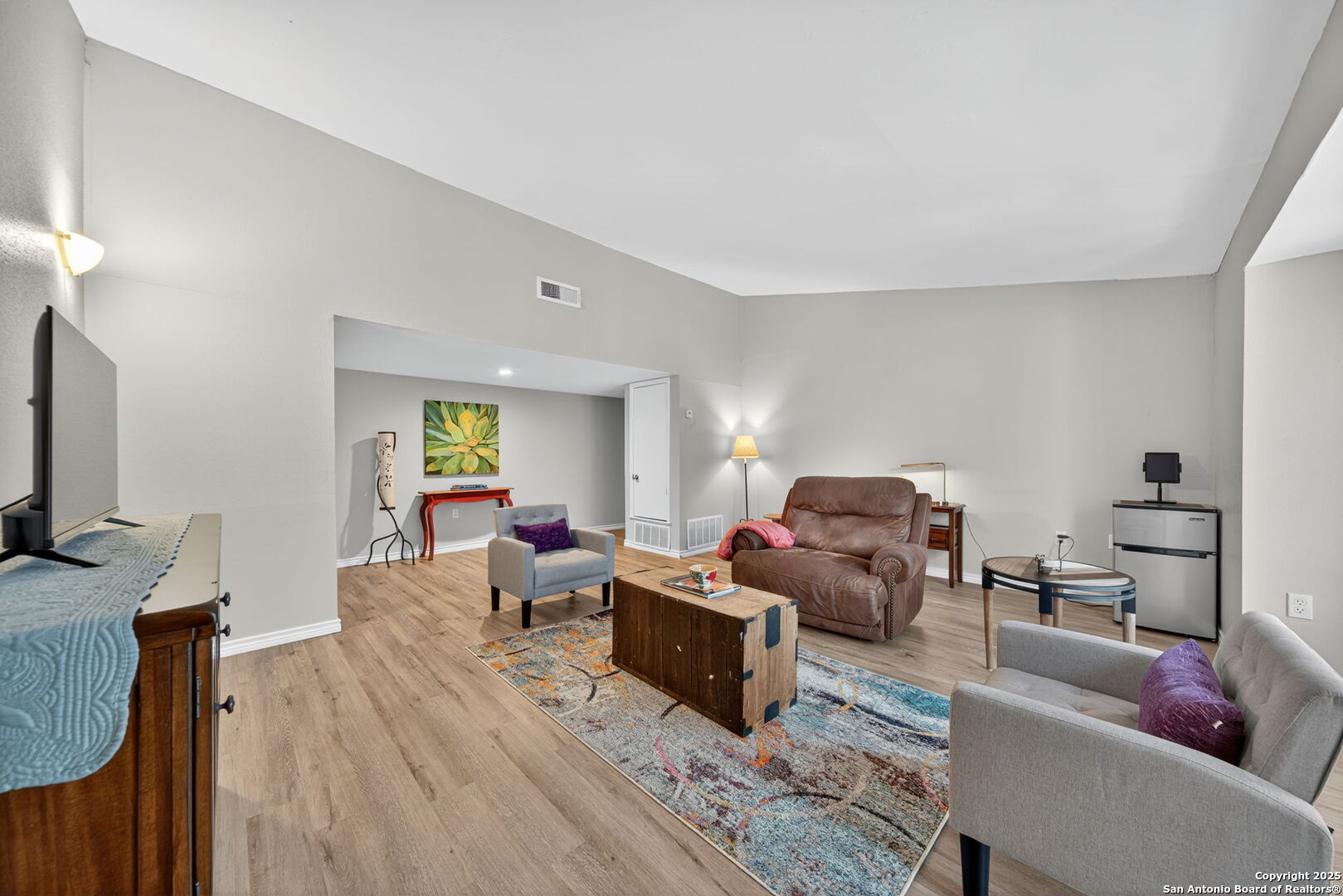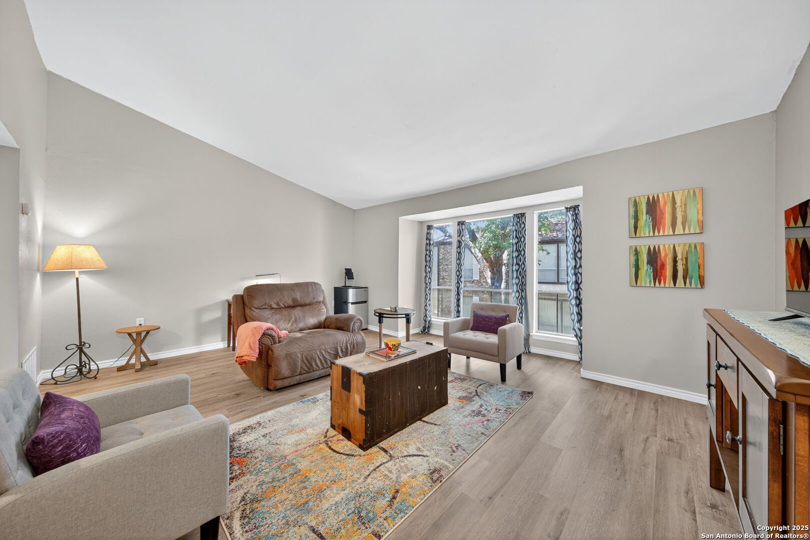This beautifully updated condo with front and back door entrances combines style and comfort with granite countertops, stainless steel appliances, luxury plank flooring throughout and abundant natural light from large windows. Relax on the spacious, covered second-floor patio, enjoy the amenities of covered parking, a sparkling pool and gated entrance. With no carpet and no popcorn ceilings, the home feels modern, fresh, and low-maintenance. Ideally located near Salado Creek Greenway, Tobin Park Trailhead, and Lady Bird Johnson Trailhead (see map in Additional Info), this "hidden gem" offers a serene setting with quick access to HWY 410 and I-35!