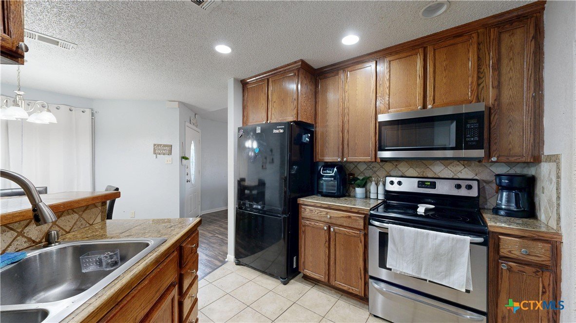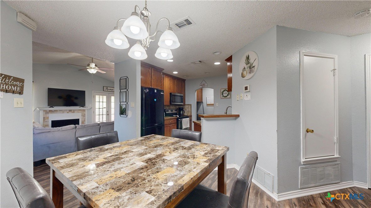 PRICE IMPROVEMENT!!! NOW ONLY $185,000! Discover this inviting 3-bedroom, 2-bathroom home offering 1,185 sq. ft. of comfortable living space. Situated in a quiet neighborhood, this home boasts a modern kitchen with stainless steel appliances, beautiful wood cabinetry, and a stylish backsplash. The open floor plan seamlessly connects the kitchen to the dining and living areas, creating a warm and welcoming atmosphere. Step outside to a large backyard deck, perfect for entertaining or relaxing, with a covered patio for year-round enjoyment. The spacious fenced yard offers privacy, while the two-car garage and extended driveway provide ample parking. This well-maintained home is a fantastic opportunity for anyone seeking comfort and convenience. Don’t miss your chance to make it yours!