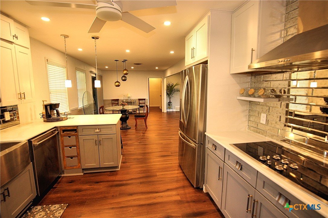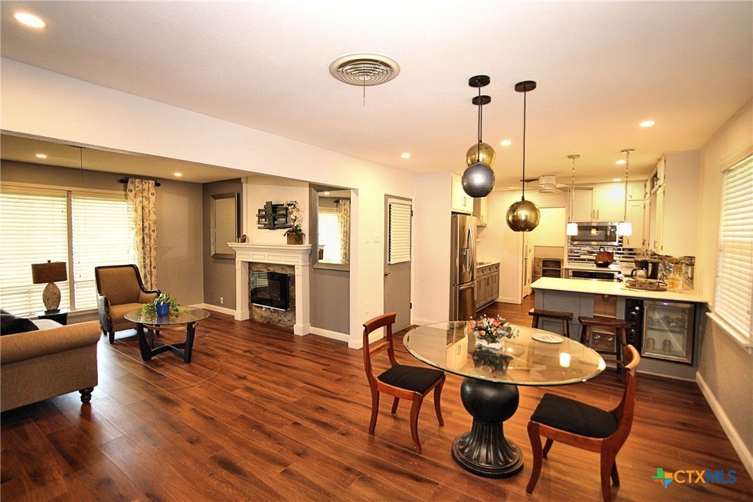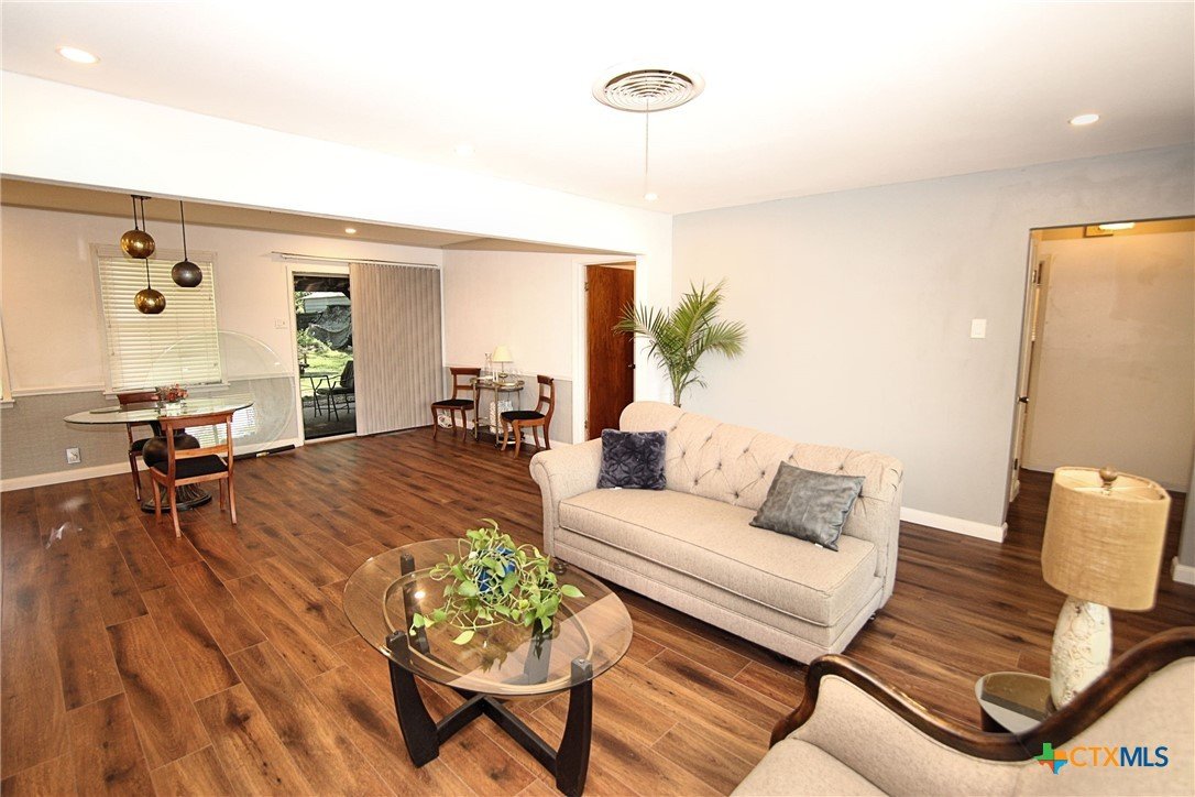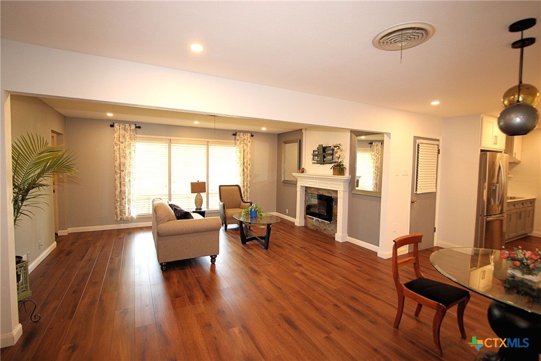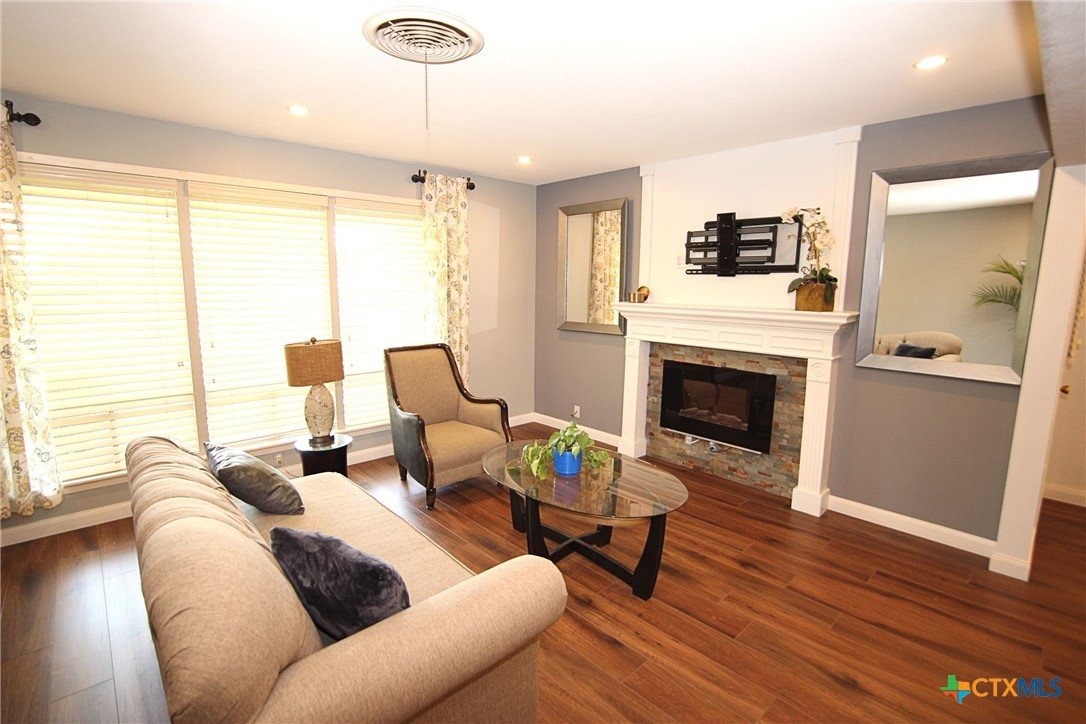 Nicely Updated Mid Century Ranch Style Home in attractive Established neighborhood with larger Lots and many Trees. Convenient location near I35 and 36 (HK Dodgen Loop). 100% Brick home with Updated Bathrooms, Kitchen, Newer Appliances, Vinyl Plank Floors in living areas and New Carpet in Bedrooms. Original floorplan had 2 smaller living rooms, dividing wall removed to create Open floorplan to Kitchen, Dining and Living areas. Electric Fireplace added for heat and ambience in Living Room. Cute Walk In Pantry and Laundry room off Kitchen. New Roof in 2024. Pergola covering Back Patio. Morgan Building for Storage. Move In Ready!