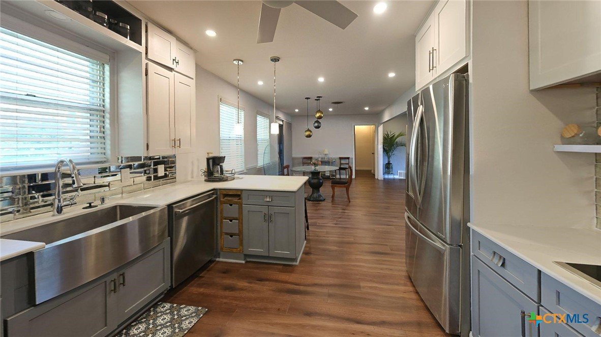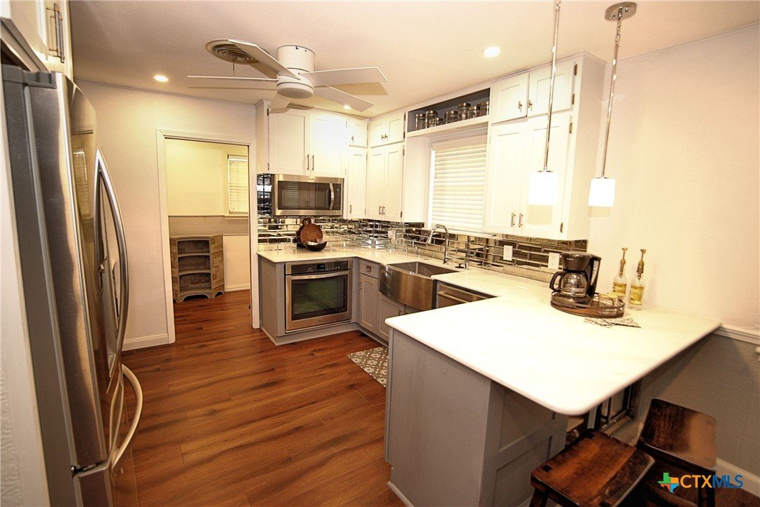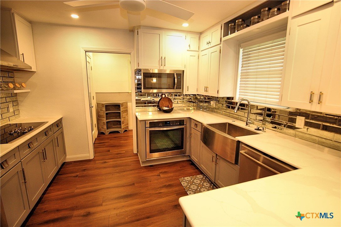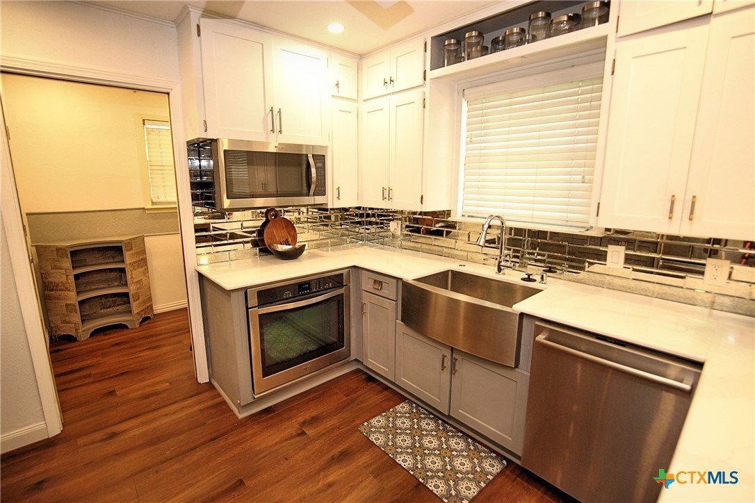 Nicely Updated Mid Century Ranch Style Home in attractive Established neighborhood with larger Lots and many Trees. Convenient location near I35 and 36 (HK Dodgen Loop). 100% Brick home with Updated Bathrooms, Kitchen, Newer Appliances, Vinyl Plank Floors in living areas and New Carpet in Bedrooms. Original floorplan had 2 smaller living rooms, dividing wall removed to create Open floorplan to Kitchen, Dining and Living areas. Electric Fireplace added for heat and ambience in Living Room. Cute Walk In Pantry and Laundry room off Kitchen. New Roof in 2024. Pergola covering Back Patio. Morgan Building for Storage. Move In Ready!