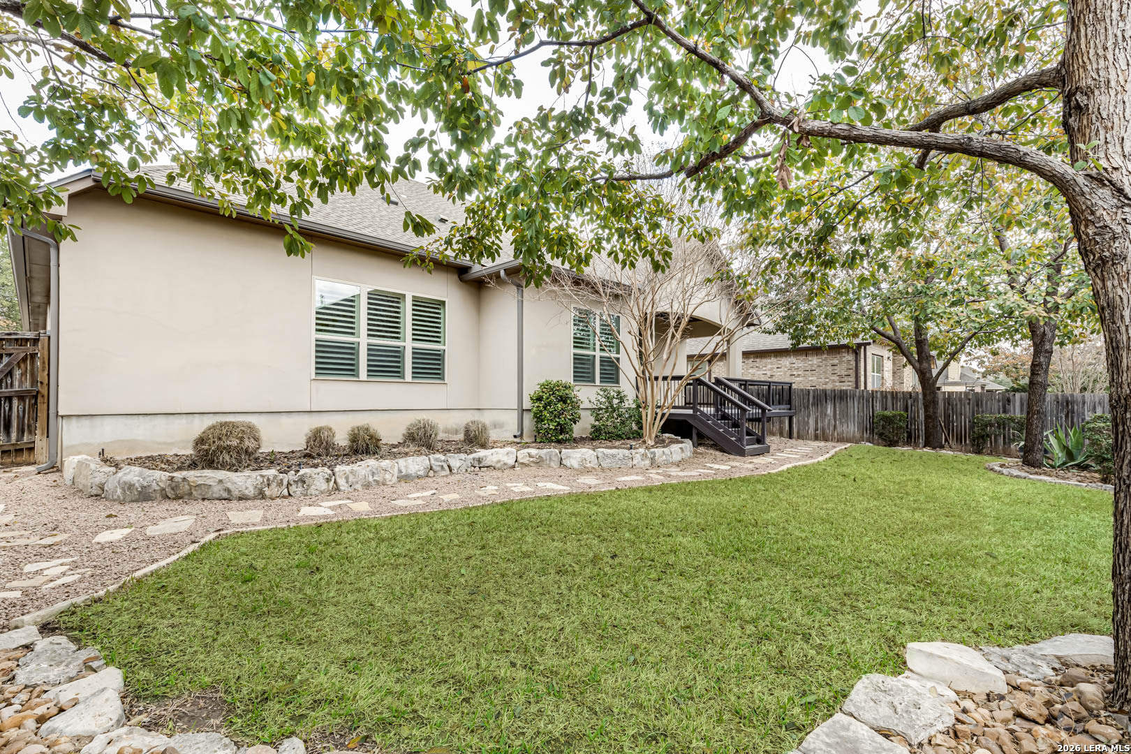 This exquisite 1 story Sitterle hm is nestled in the exclusive Rogers Ranch community & will take your breath away. Features inc: One of a kind private lot, Stunning curb appeal w Stucco/Stone exterior, 2 car garage, Lush landscape, Tons of Windows, plantation shutters throughout, open floor plan, tile/wood flooring in all traffic areas, dedicated office & dining area, HUGE family room with custom fireplace, gourmet chefs kitchen with granite counters, Stainless steel Viking appliances, gas cooking, Tons of cabinet and counter space and so much more! The master suite is split from the other bedrooms on its own private wing of the home and adorns a luxurious ensuite & oversized closet. Walk out to your own private back yard paradise with oversized covered majestic patio overlooking a beautifully manicured lot with several mature oak trees nestled on a .18 acre lot! This home truly is remarkable, and you must see it to appreciate all the details!