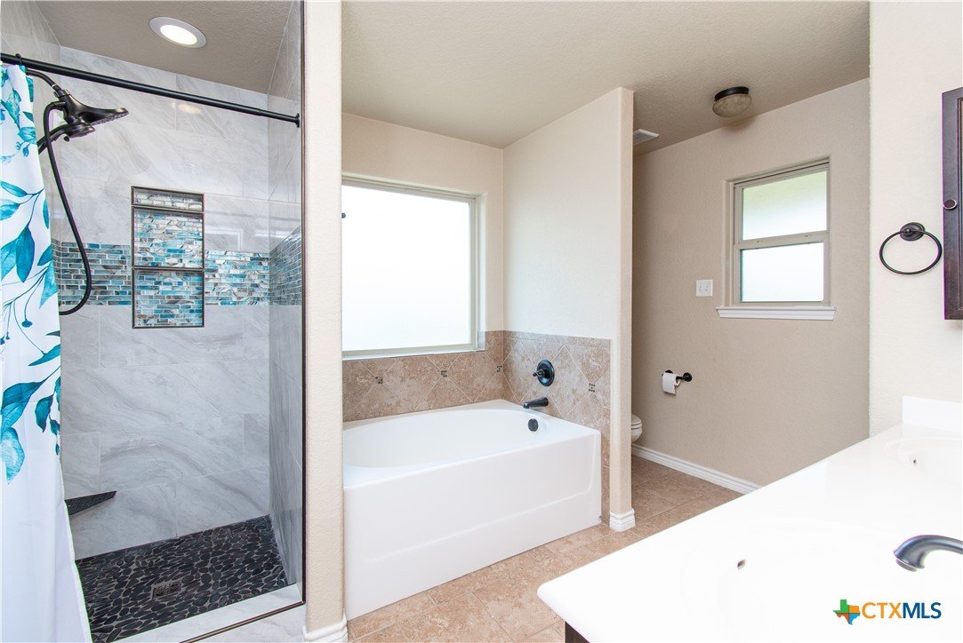 Beautifully updated 4BD/2BA home in Killeen! With 1,911 sq ft of living space, this move-in ready home features a spacious open-concept layout ideal for both relaxing and entertaining. The split-bedroom floor plan offers added privacy, with a peaceful primary suite separated from the secondary bedrooms. Thoughtful upgrades throughout include fresh carpet (2023) with stain- and pet-resistant padding, a fully tiled walk-in master shower (2025), and a modern kitchen with a hands-free sensor faucet and new garbage disposal (2023). Enjoy outdoor living from your covered patio overlooking a spacious backyard with a new 7-ft privacy fence (2025). Major mechanical upgrades include a 30-year architectural roof (2023), new HVAC system with Honeywell digital panel (2024), and a new water heater (2023). Additional features: UV window screens, resealed windows and doors, and updated exterior door seals. Located near schools, shopping, and Fort Hood, this home combines comfort, functionality, and long-term value perfect for anyone looking to call this home. Move-in ready!