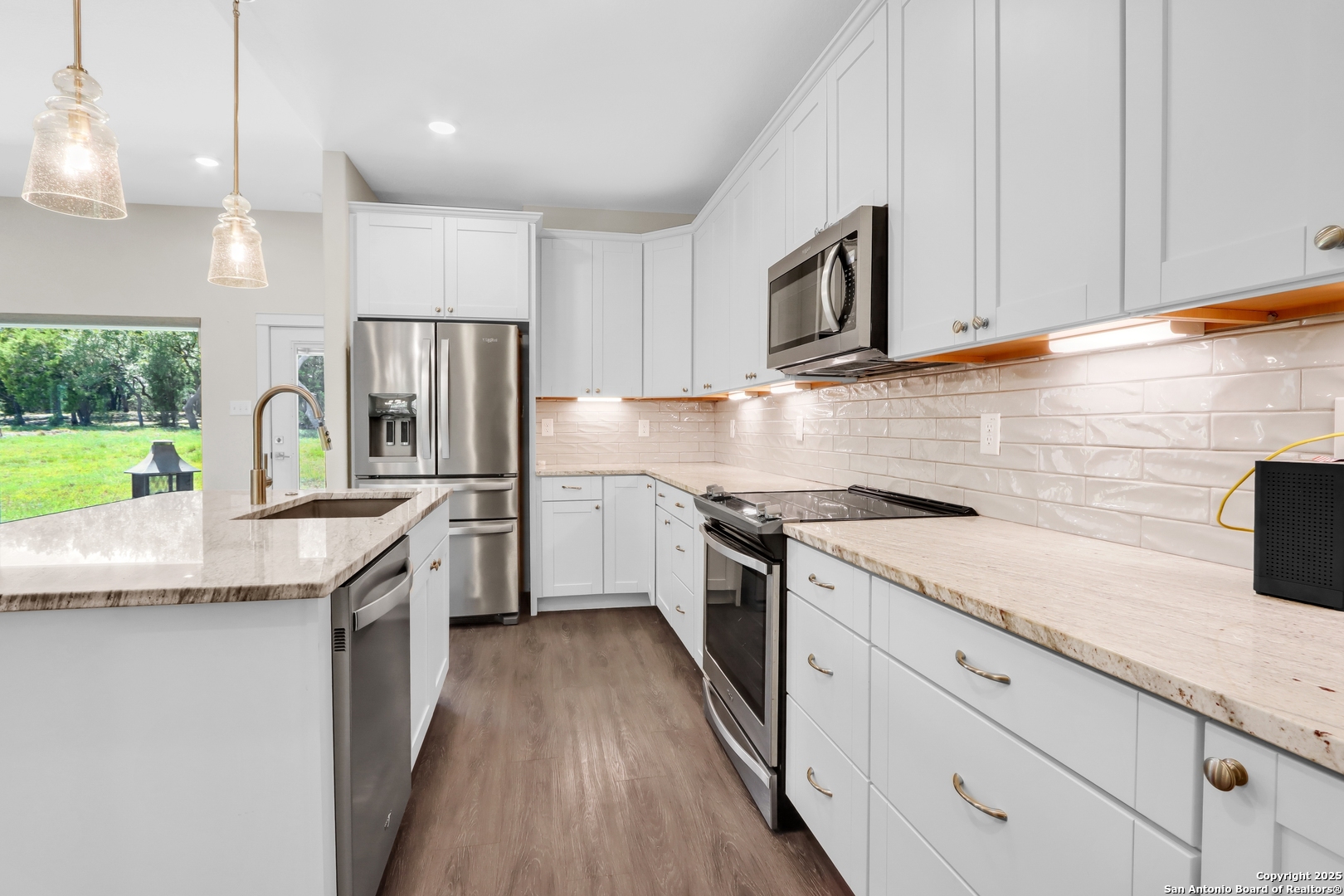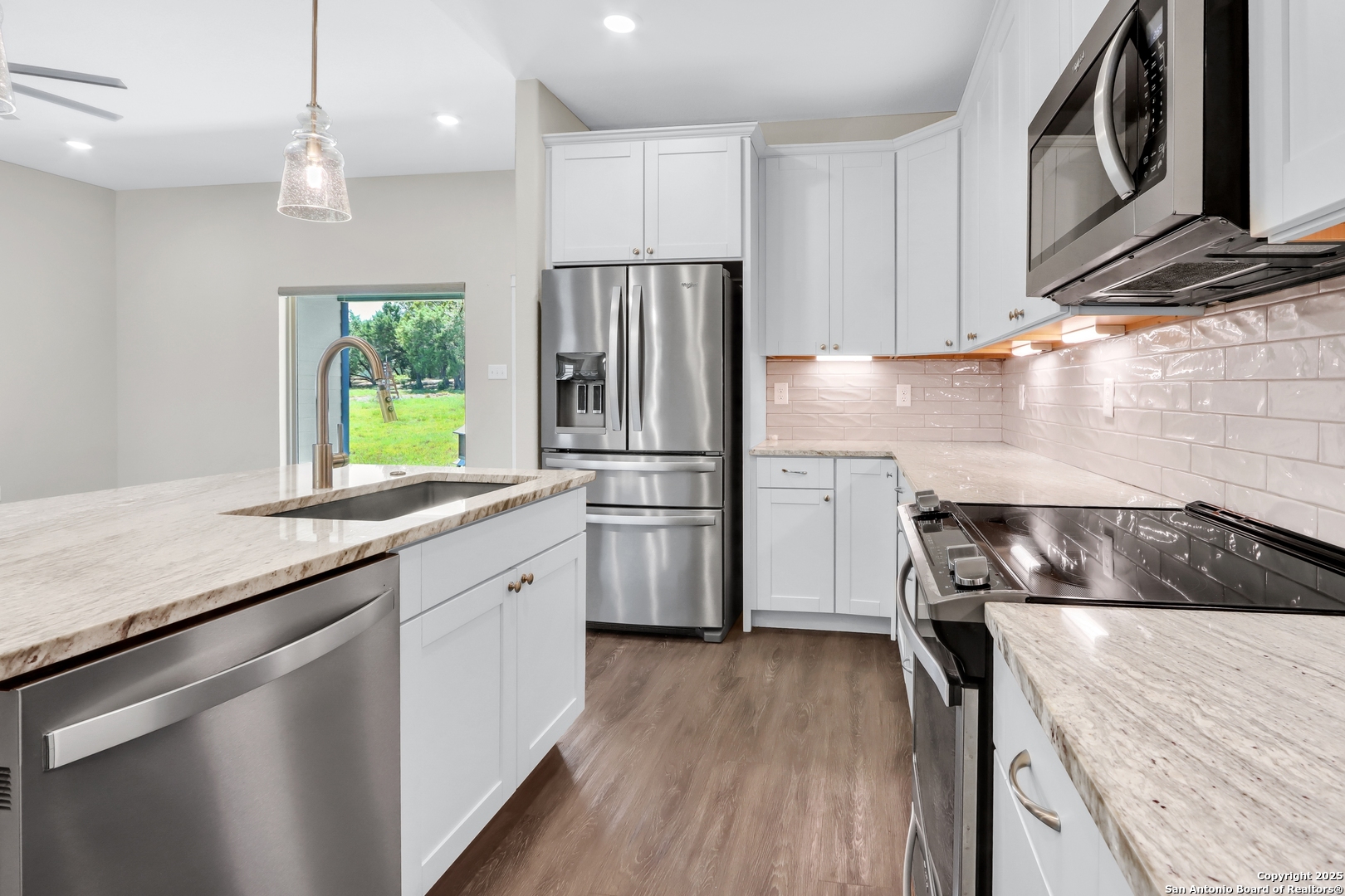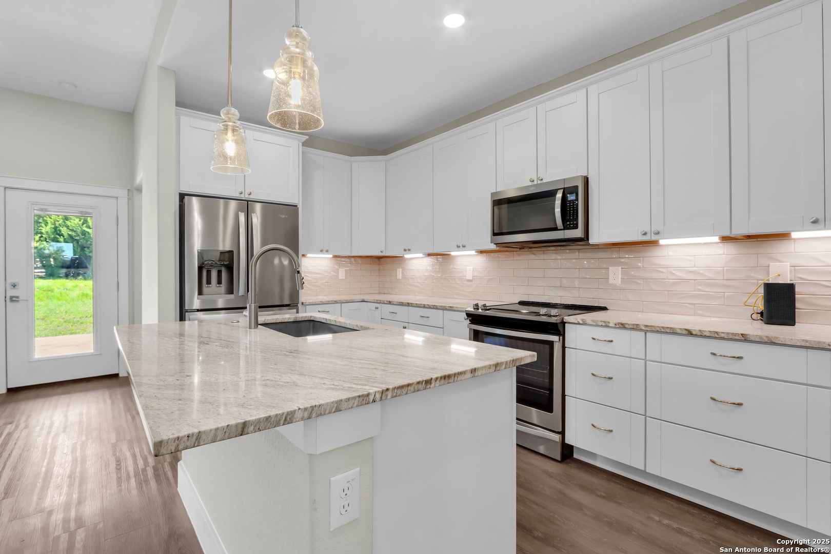 Discover Hill Country Serenity at 381 Monarch, Canyon Lake Step into modern comfort with this stunning 1,707 sq ft new construction home, thoughtfully designed for today's lifestyle. This exceptional property seamlessly blends contemporary amenities with the peaceful charm of Canyon Lake living. Interior Excellence: * Three spacious bedrooms with generous walk-in closets * Two full bathrooms featuring a luxurious master suite with oversized walk-in shower and built-in seating * Split bedroom floor plan ensuring optimal privacy * Elegant granite countertops throughout * Premium vinyl plank flooring - no carpet for easy maintenance * Energy-efficient solar panel system * Whole-home water softener for enhanced comfort Outdoor Living: The covered back porch creates your personal retreat - perfect for morning coffee, evening relaxation, or entertaining guests while soaking in the tranquil Hill Country views. Modern Efficiency Meets Comfort: With solar panels reducing energy costs and a water softener system enhancing daily living, this home offers both luxury and practicality. Located in the heart of Canyon Lake, you'll enjoy the perfect balance of peaceful lakeside living with convenient access to Central Texas amenities. This move-in ready home represents an exceptional opportunity to embrace the Hill Country lifestyle you've been dreaming of.
