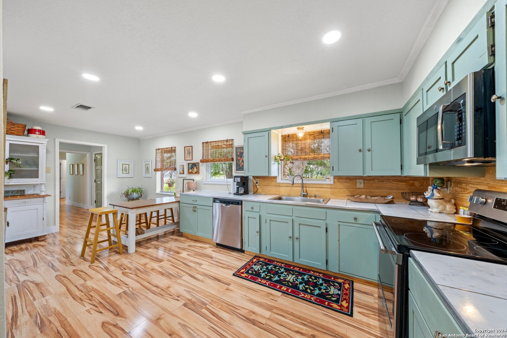 Beautiful ranch perfect for horses and other livestock! This remarkable property boasts a rare blend of beauty and functionality, featuring a seasonal pond without any restrictions or HOA limitations. Anchoring the landscape is a spacious barn, to include a convenient drive-through layout and horse paddocks, ideal for housing horses and other farm animals. The fertile land offers excellent opportunities for gardening and boasts abundant wildlife for hunting, including large herds of axis and whitetail deer. This four bedroom 2 bath home has new HVAC, roof and has undergone extensive renovations, including new flooring crafted from stunning natural wood planks, fresh paint throughout, and upgrades to both electrical and plumbing systems. Brimming with charm and character, the residence offers four generously sized bedrooms, one of which has been converted from a garage. This versatile space offers myriad possibilities-it can easily be reverted back to a garage, transformed into a cozy office, or utilized as an additional bedroom. Situated on approximately 13.5 acres of level terrain, the property presents an enticing opportunity for the cultivation of a thriving orchard or even the establishment of a future winery. Very beautiful property right in the heart of Center Point TX.