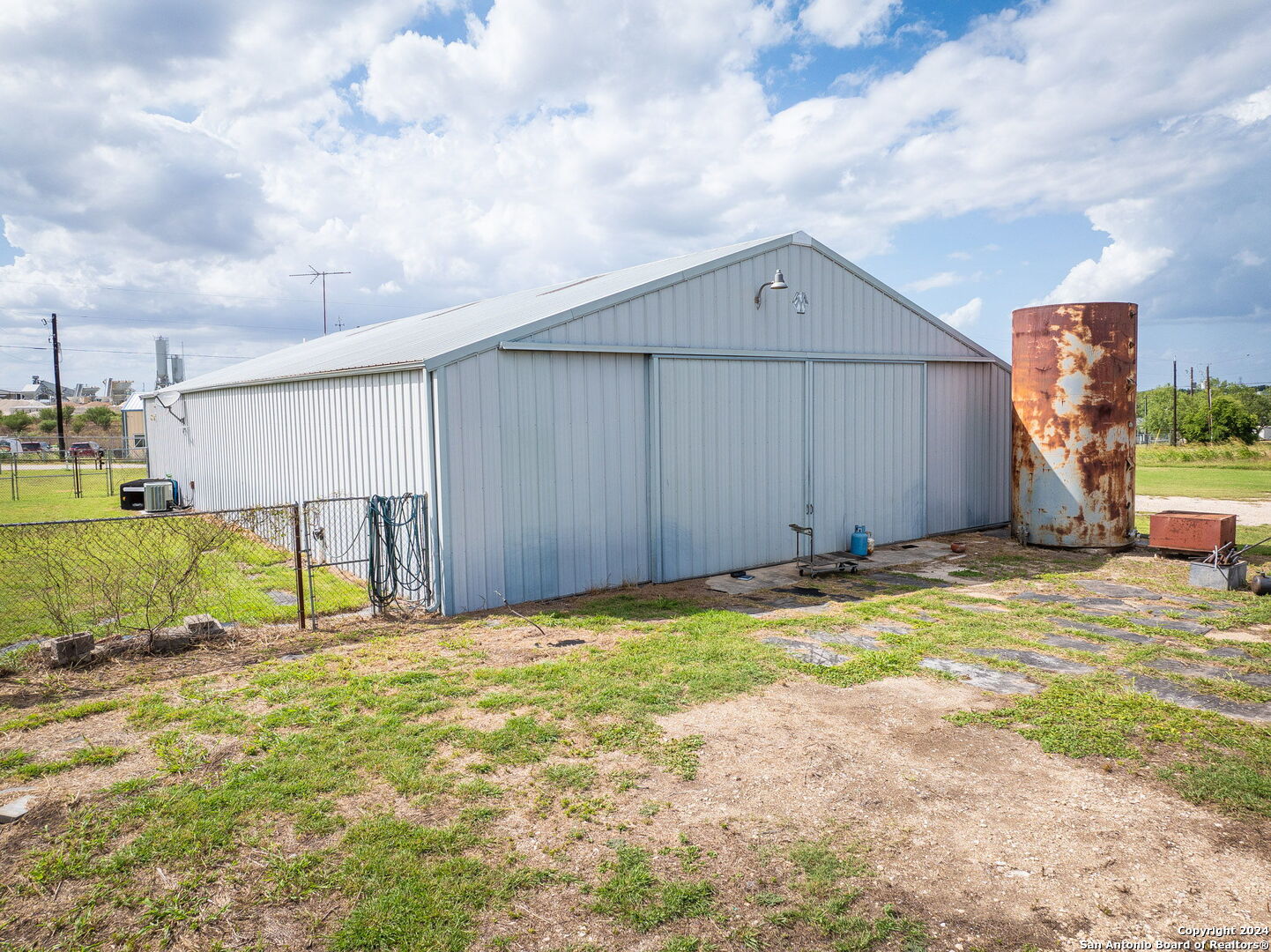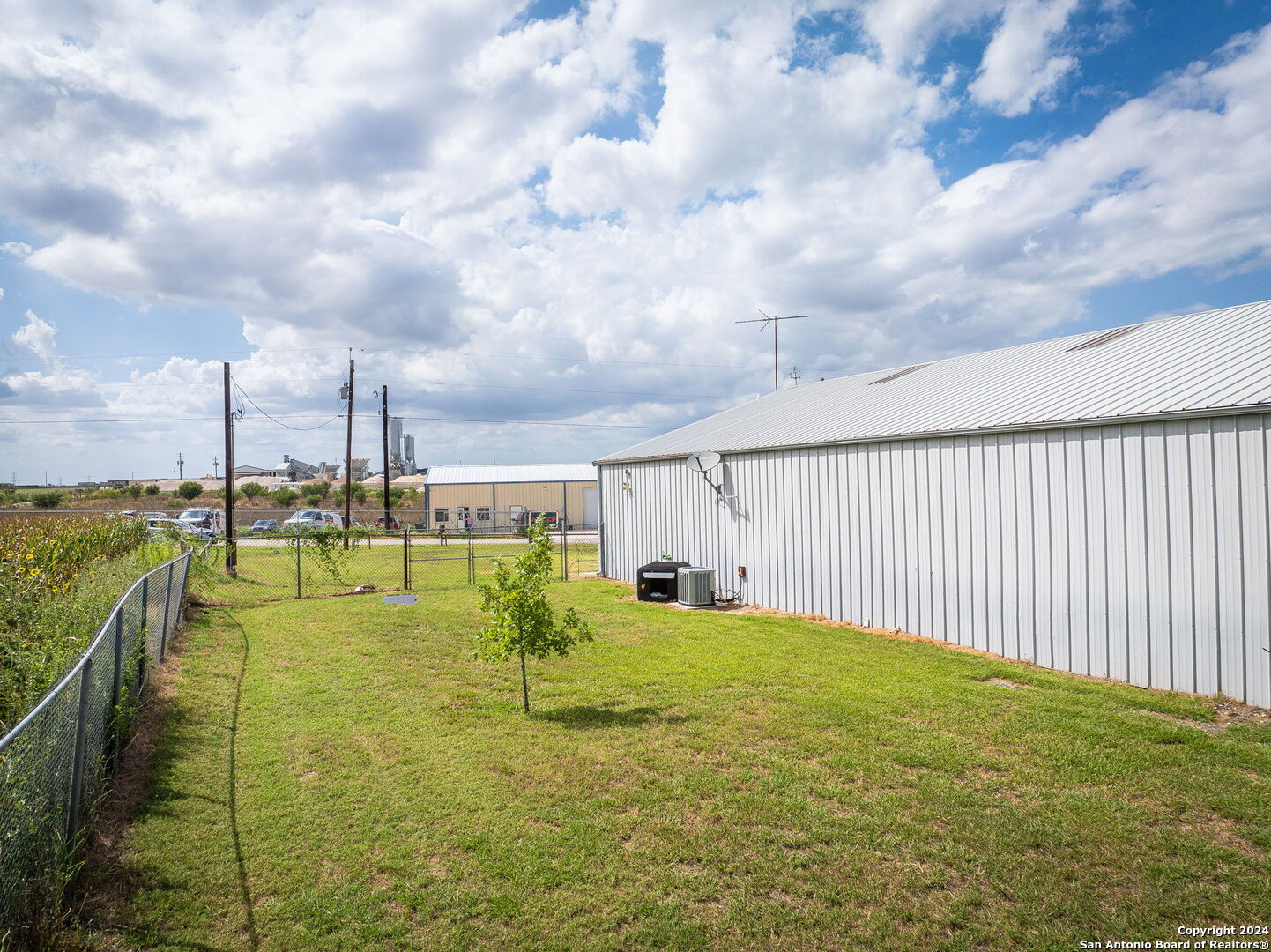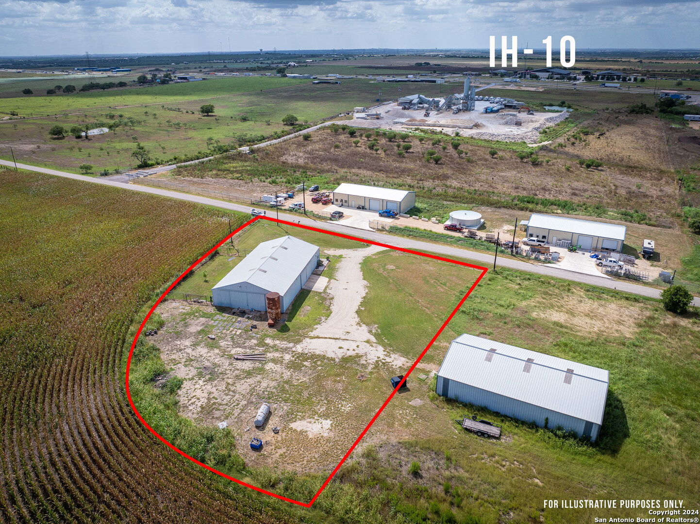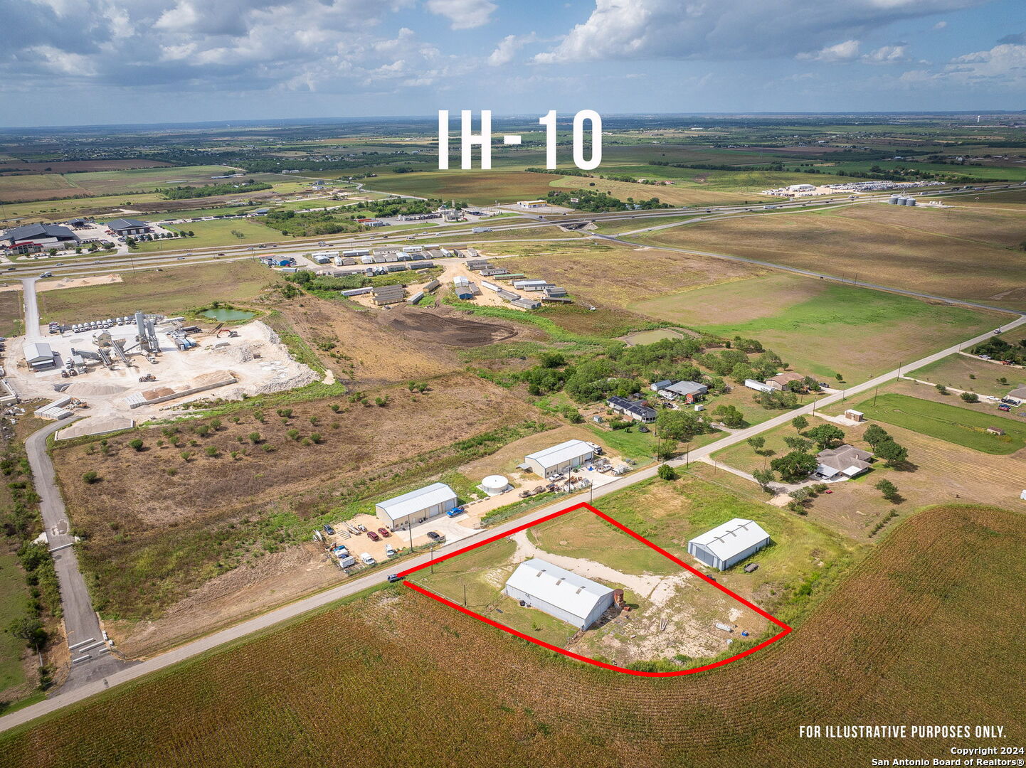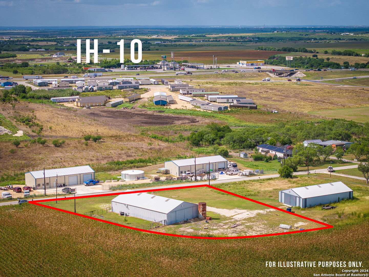This 48x84, 4032 sq ft. metal warehouse is located just off of I-10 and is located in Guadalupe County between Marion and New Berlin in a light commercial and residential part of I10. Easy access from the HWY to this one-acre lot which allows for tons of parking or more outdoor storage. The large sliding doors on two ends allow for easy access into the building and for loading. This wood frame metal building on slab also contains an office/living space (552ft per cad) with a full bathroom and Central A/C. This building has many opportunities for business or personal use. Extremely rare versatile property for your business!
