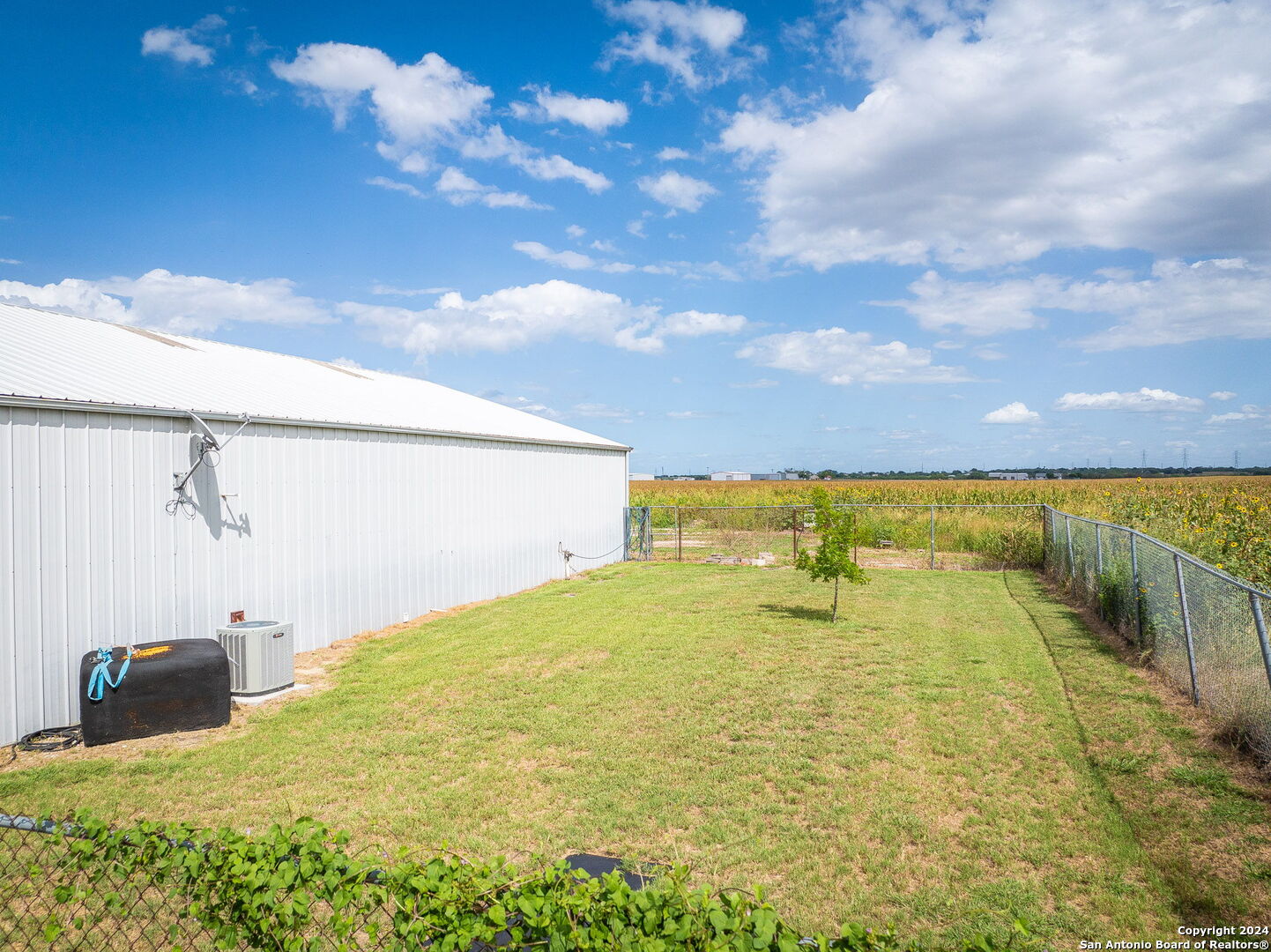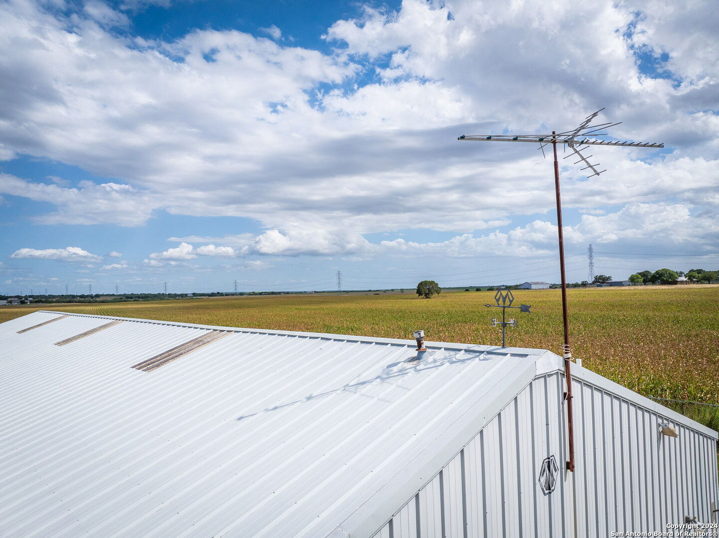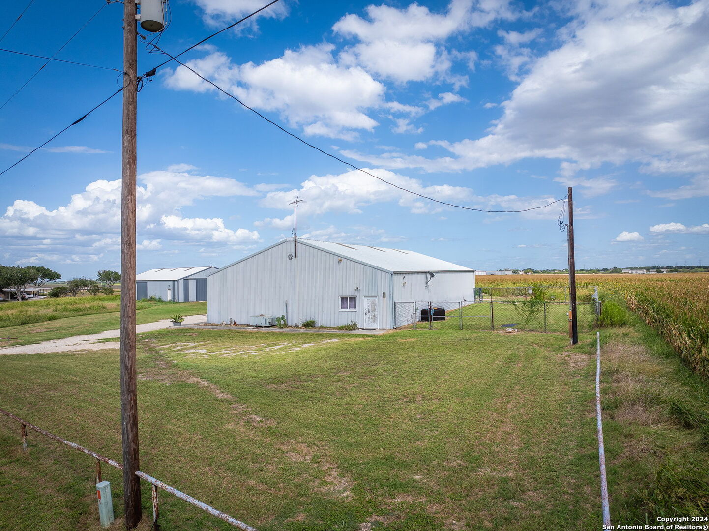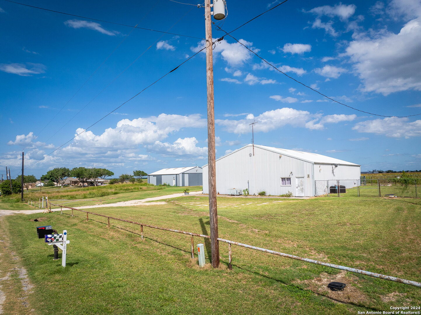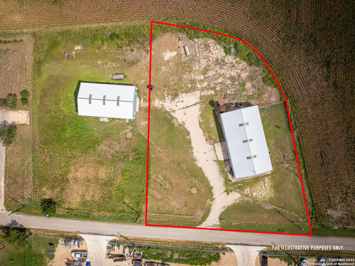 This 48x84, 4032 sq ft. metal warehouse is located just off of I-10 and is located in Guadalupe County between Marion and New Berlin in a light commercial and residential part of I10. Easy access from the HWY to this one-acre lot which allows for tons of parking or more outdoor storage. The large sliding doors on two ends allow for easy access into the building and for loading. This wood frame metal building on slab also contains an office/living space (552ft per cad) with a full bathroom and Central A/C. This building has many opportunities for business or personal use. Extremely rare versatile property for your business!