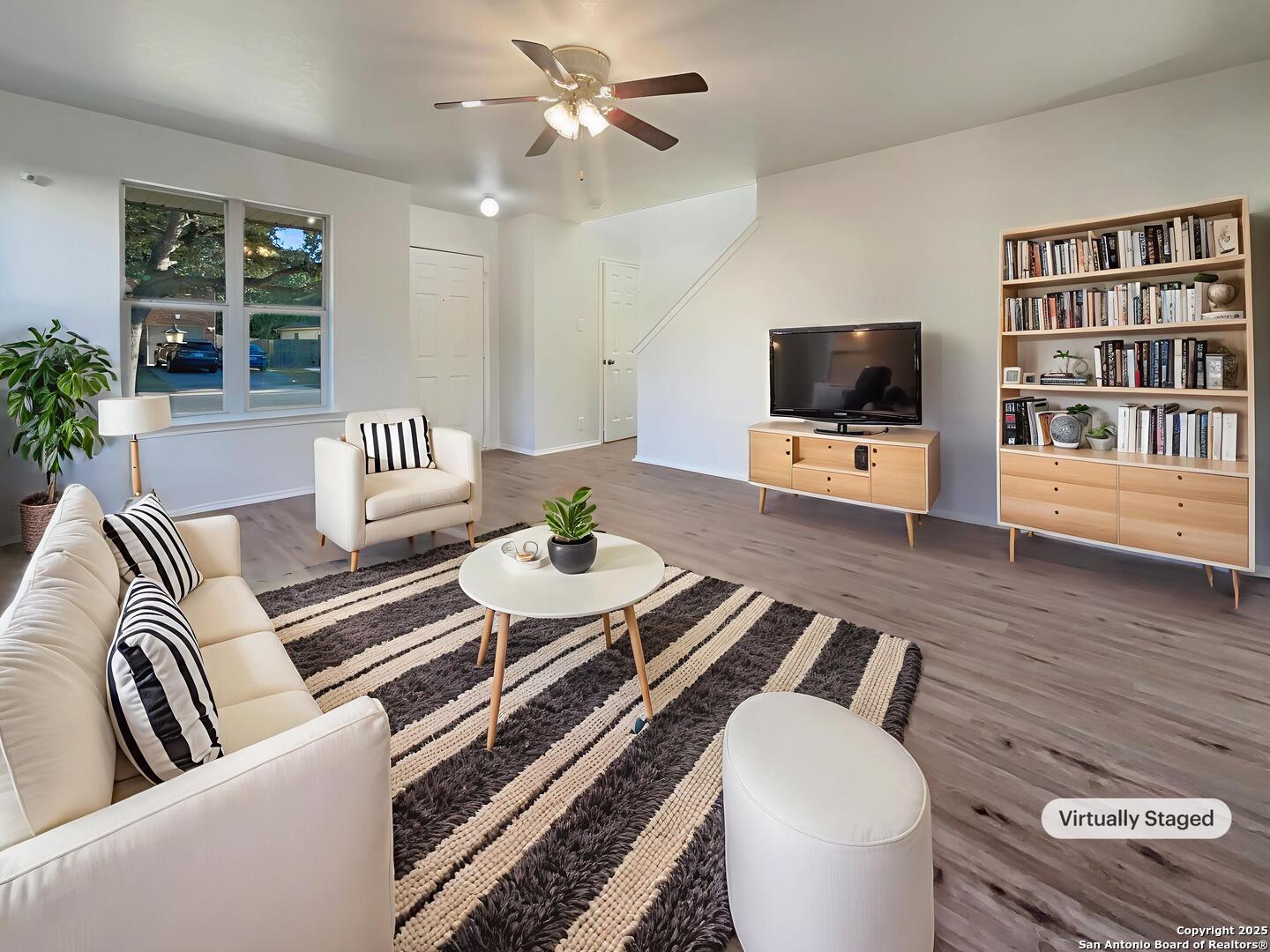 Step inside to discover a fresh and modern interior featuring new flooring throughout and a neutral color palette that complements any style. The open-concept layout creates a seamless flow from the spacious living area to the thoughtfully renovated kitchen - a chef's dream with all-new stainless steel appliances, ample cabinetry, and a functional center island perfect for meal prep or casual dining. Natural light floods the living spaces, creating a warm and inviting atmosphere ideal for both everyday living and entertaining. Step outside to the patio, where you can relax or host while enjoying the fully fenced backyard - offering privacy and plenty of space for pets, play, or gardening. Additional highlights include updated fixtures, generous storage, and a flexible floor plan designed for modern lifestyles. Don't miss your chance to this beautifully refreshed property home! This home has been virtually staged to illustrate its potential.. Included 100-Day Home Warranty with buyer activation