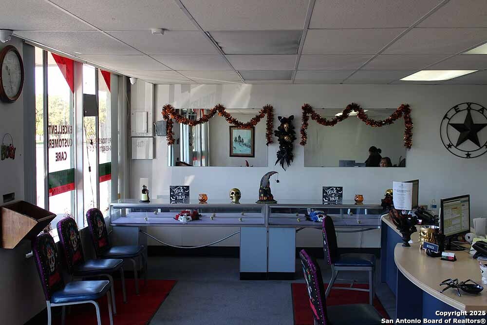 This property offers approximately 150 feet of frontage facing Elmendorf Lake and is conveniently located near OLLU. The building features a front retail space along with three offices in the back. The layout is ideal for various business uses such as a retail shop, tax office, title insurance agency, or check cashing service.