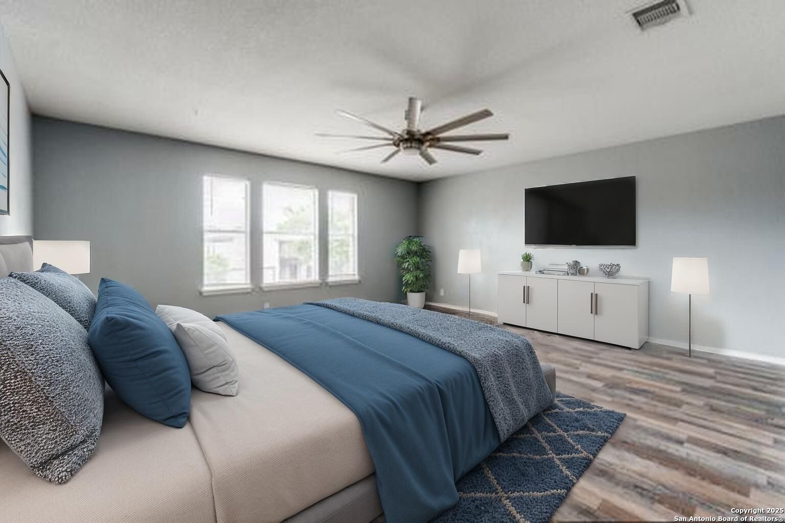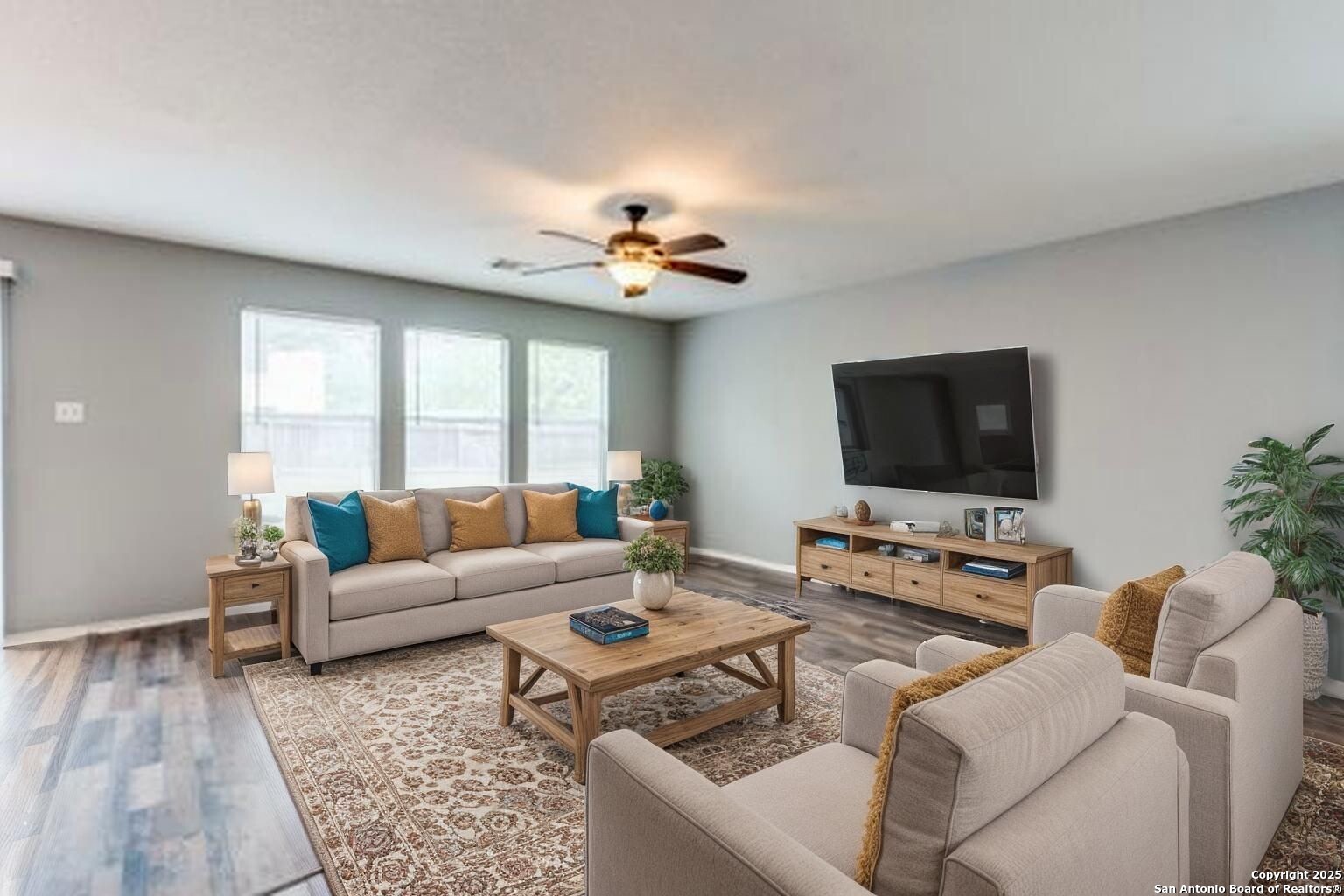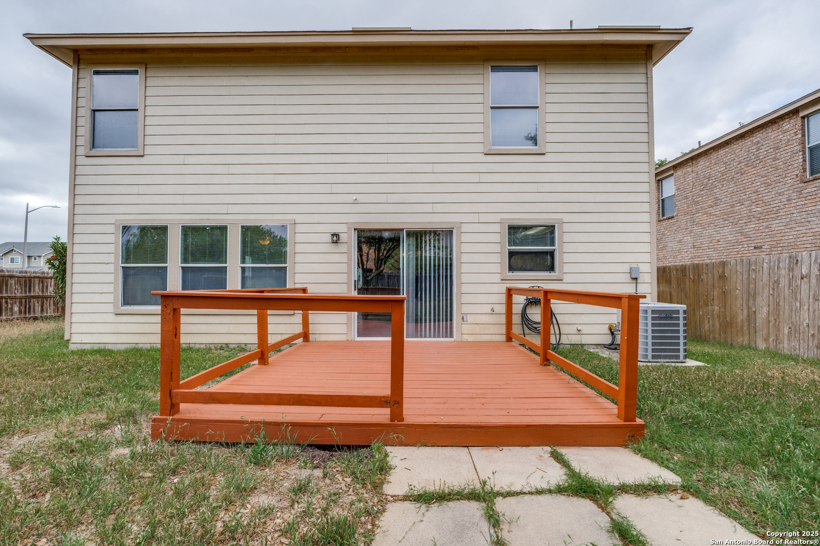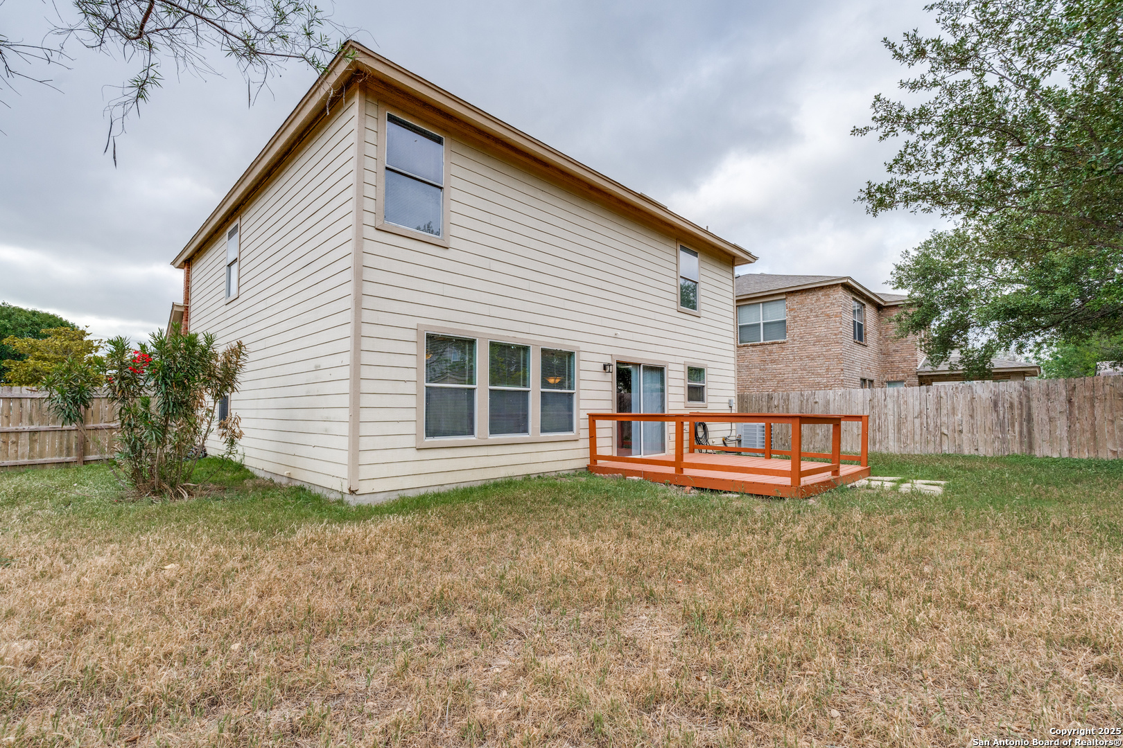 Welcome to this spacious 4-bedroom, 2.5-bath home nestled in the desirable Wendover Farms community of New Braunfels. With over 2,500 sq ft of living space, this two-story residence offers a thoughtful layout perfect for both everyday living and entertaining. The main level features two generous living areas and a bright eat-in kitchen that includes a refrigerator. Upstairs, you'll find all four bedrooms, including a large primary suite complete with a ceiling fan, walk-in closet, garden tub, and separate shower. Secondary bedrooms are well-sized and offer flexible space for family, guests, or a home office. Enjoy the privacy of a fully fenced backyard-ideal for relaxing or entertaining outdoors. Located with easy access to I-35 and Hwy 46, this home is conveniently close to schools, shopping, and local amenities. Situated within the Comal ISD, and featuring a two-car attached garage, this home is a great opportunity in a growing area.
