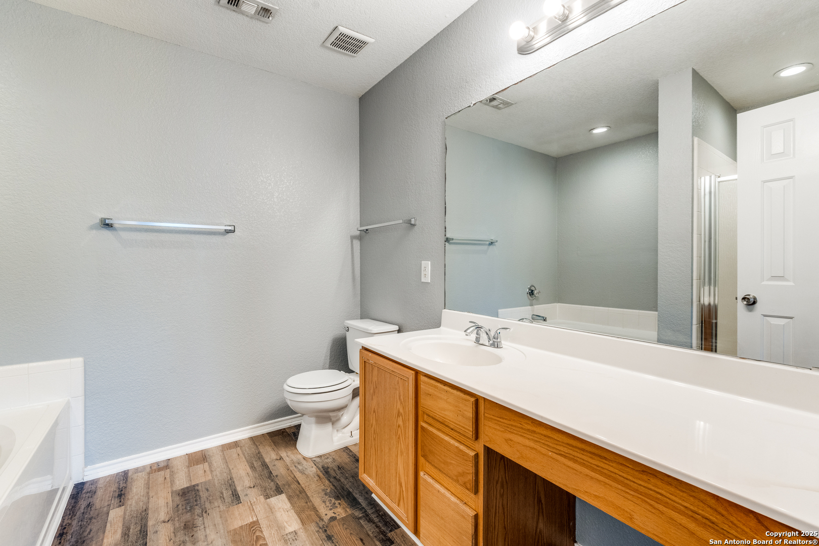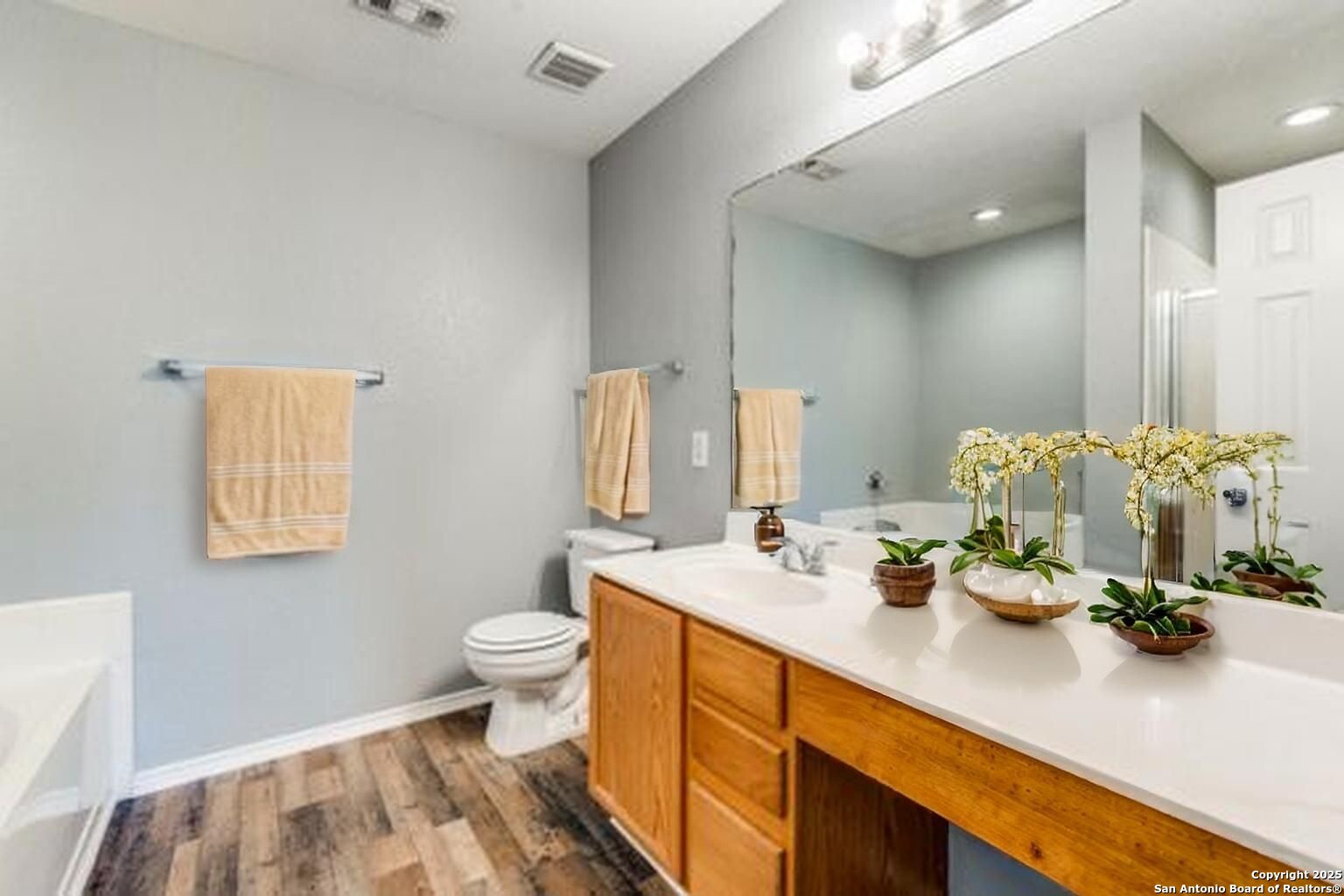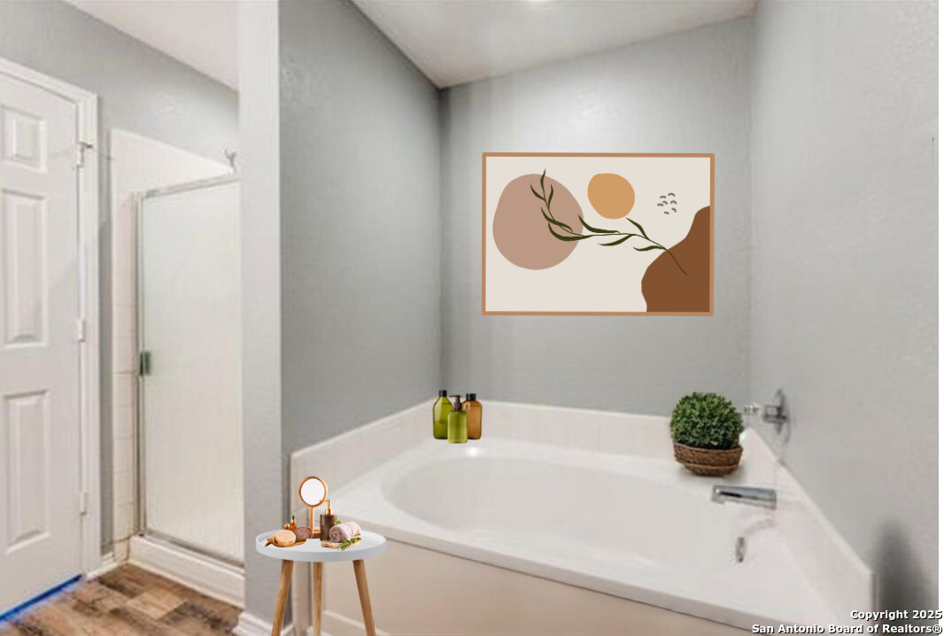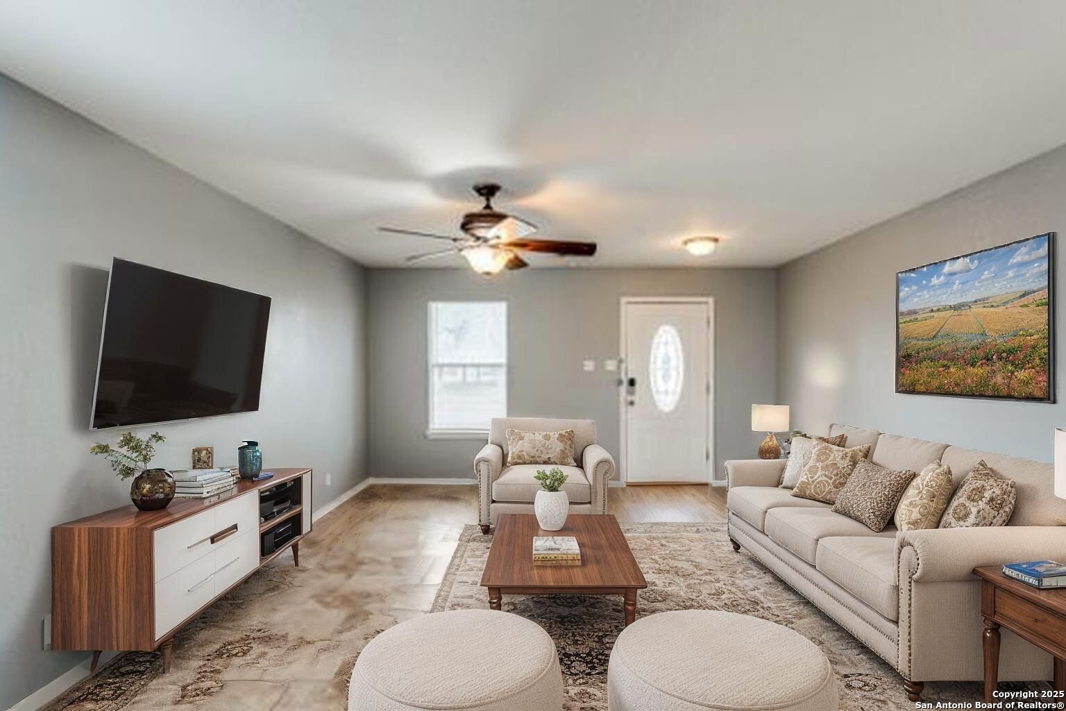 Welcome to this spacious 4-bedroom, 2.5-bath home nestled in the desirable Wendover Farms community of New Braunfels. With over 2,500 sq ft of living space, this two-story residence offers a thoughtful layout perfect for both everyday living and entertaining. The main level features two generous living areas and a bright eat-in kitchen that includes a refrigerator. Upstairs, you'll find all four bedrooms, including a large primary suite complete with a ceiling fan, walk-in closet, garden tub, and separate shower. Secondary bedrooms are well-sized and offer flexible space for family, guests, or a home office. Enjoy the privacy of a fully fenced backyard-ideal for relaxing or entertaining outdoors. Located with easy access to I-35 and Hwy 46, this home is conveniently close to schools, shopping, and local amenities. Situated within the Comal ISD, and featuring a two-car attached garage, this home is a great opportunity in a growing area.