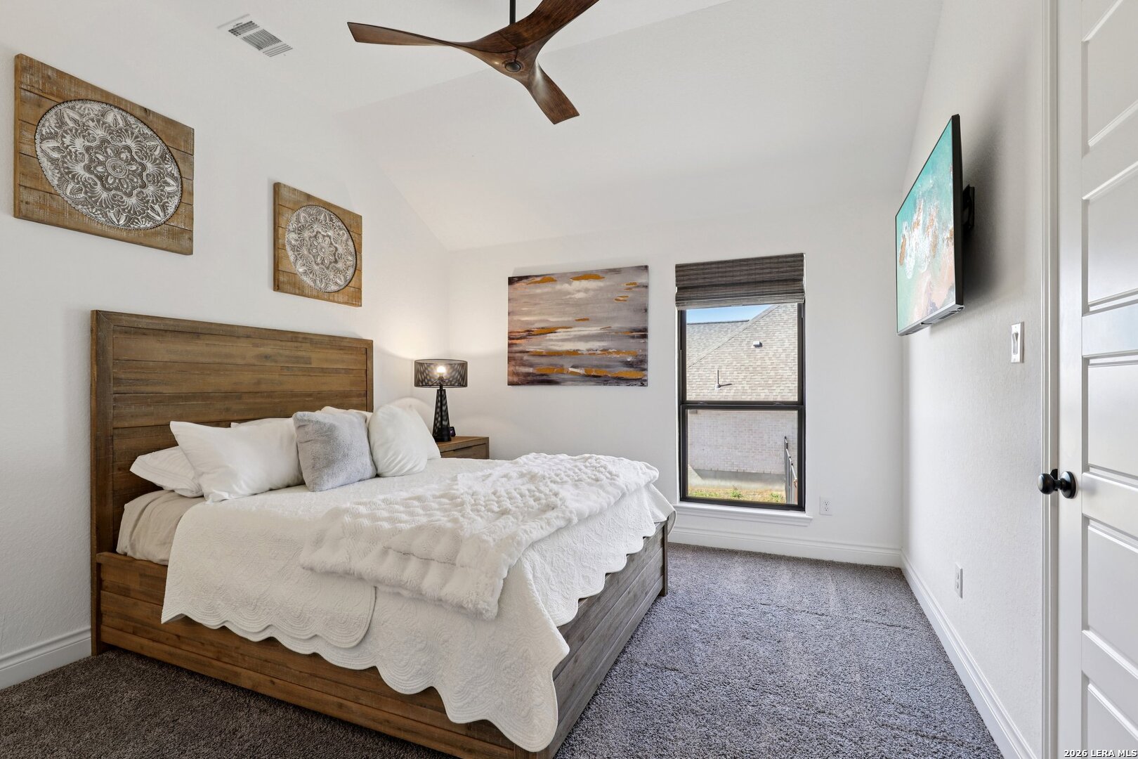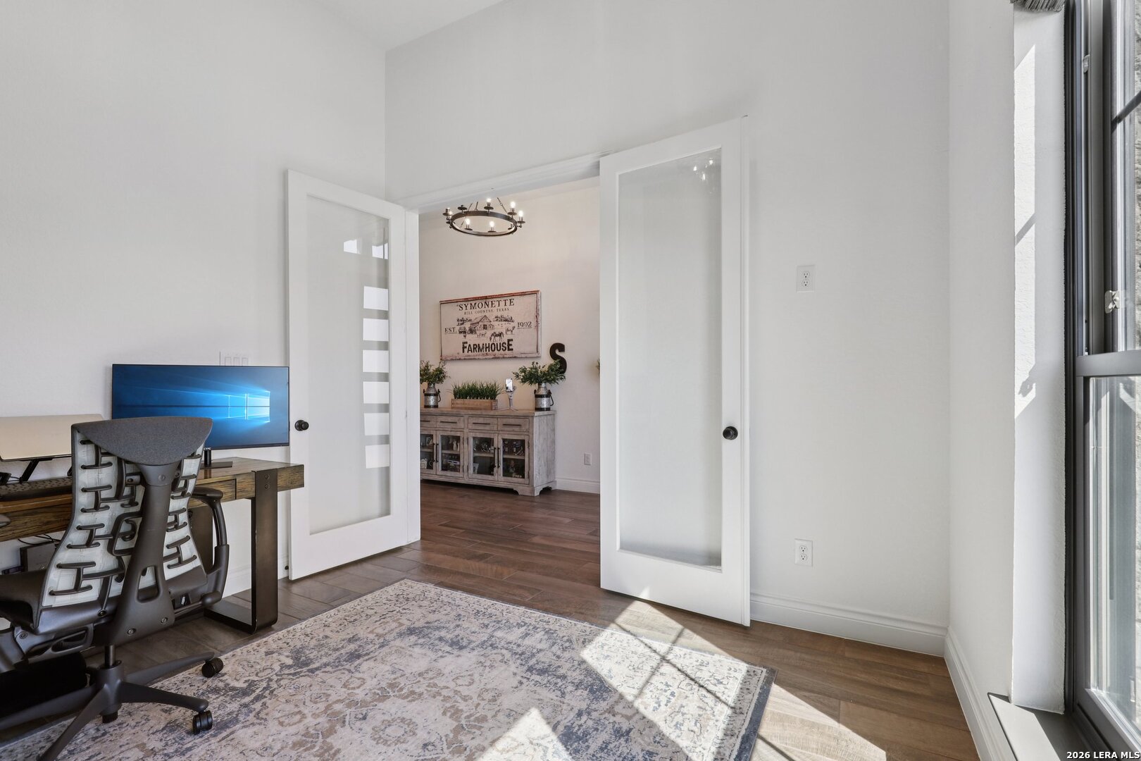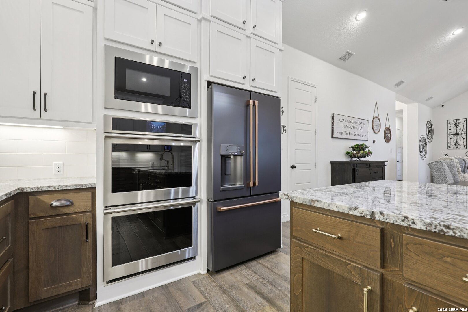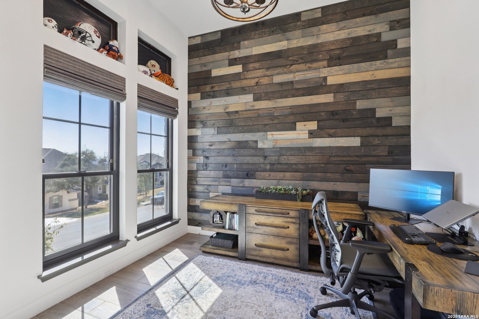 Welcome to one of the most upgraded homes you will find on the market in Bulverde, TX. This stunning one story luxury home offers more than 3,300 square feet of thoughtfully designed living space and features 4 spacious bedrooms, 3 full bathrooms, a private study, a dedicated media room, and a breathtaking screened in outdoor living area that allows you to enjoy the beauty of Texas Hill Country living year round. From the moment you walk inside, the attention to detail and high end upgrades immediately stand out. The open concept living room features soaring vaulted ceilings with beautiful wood wrapped beams and a dramatic floor to ceiling stone fireplace that creates a warm and inviting centerpiece for the home. Gorgeous wood look tile flows throughout the main living areas and the primary suite, offering both durability and style, while plush carpet is reserved for the secondary bedrooms for added comfort. The kitchen is truly a showstopper and designed for both entertaining and everyday living. Beautiful upgraded granite countertops pair perfectly with the striking two tone cabinetry, featuring crisp white upper cabinets and rich natural wood lowers. Cooking enthusiasts will love the built in double ovens, microwave, upgraded five burner gas cooktop, pot filler, and the incredible amount of cabinet storage including an additional row of upper cabinets for maximum functionality. Massive sliding glass doors open from the living room to one of the most impressive outdoor living spaces you will find. The vaulted covered patio leads into a large screened in porch that allows you to enjoy the outdoors while staying comfortable in every season. A gas stub out is already in place for a future outdoor kitchen, and an additional patio slab provides even more room for entertaining. Mature oak trees in the backyard create a peaceful and private setting that truly captures the charm of Texas living. The primary suite is a private retreat featuring vaulted ceilings, beautiful wood beam accents, and large windows that bring in abundant natural light and relaxing views of the backyard. The spa inspired primary bathroom is designed to impress with a freestanding soaking tub positioned against a custom tiled accent wall, double vanities, a dedicated makeup vanity, and an oversized walk in shower tiled to the ceiling with multiple shower heads including a luxurious rain shower. Even better, the suite includes two spacious walk in closets. Movie nights will never be the same thanks to the incredible media room, complete with a projector, surround sound system, and remote controlled blackout shades that convey with the home to create a true in home theater experience. The secondary bedrooms are generously sized and offer walk in closets and upgraded ceiling fans, while the secondary bathrooms feature beautifully designed walk in showers tiled to the ceiling for a truly luxurious feel. For those who work from home or need a quiet space, the private study features double door entry, a decorative shiplap accent wall, and beautiful views of the surrounding Hill Country landscape. Additional upgrades continue throughout the home including a whole home in wall vacuum system for added convenience and a spacious three car garage featuring epoxy flooring, built in storage racks, and a water softener system. This extraordinary property combines luxury finishes, thoughtful design, and incredible indoor outdoor living spaces to create a home that truly stands out from the rest. Homes with this level of upgrades and attention to detail rarely come available. Why build when you can have it all - Move In Ready!!