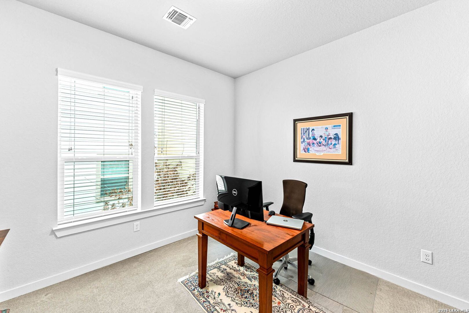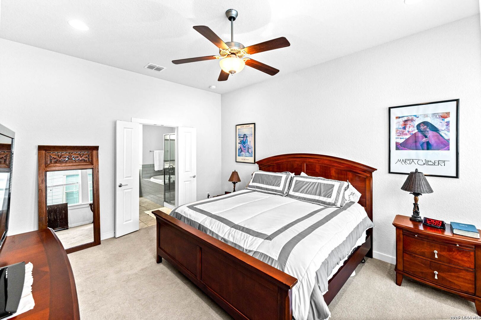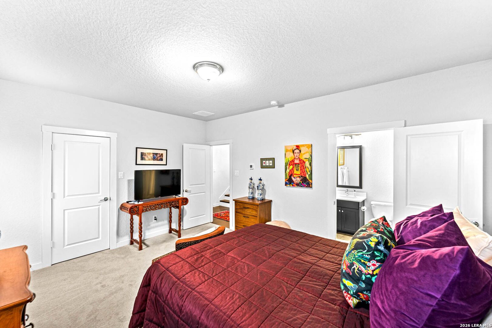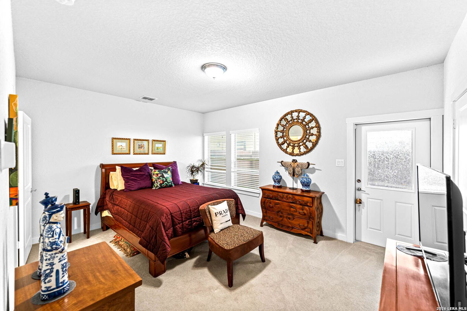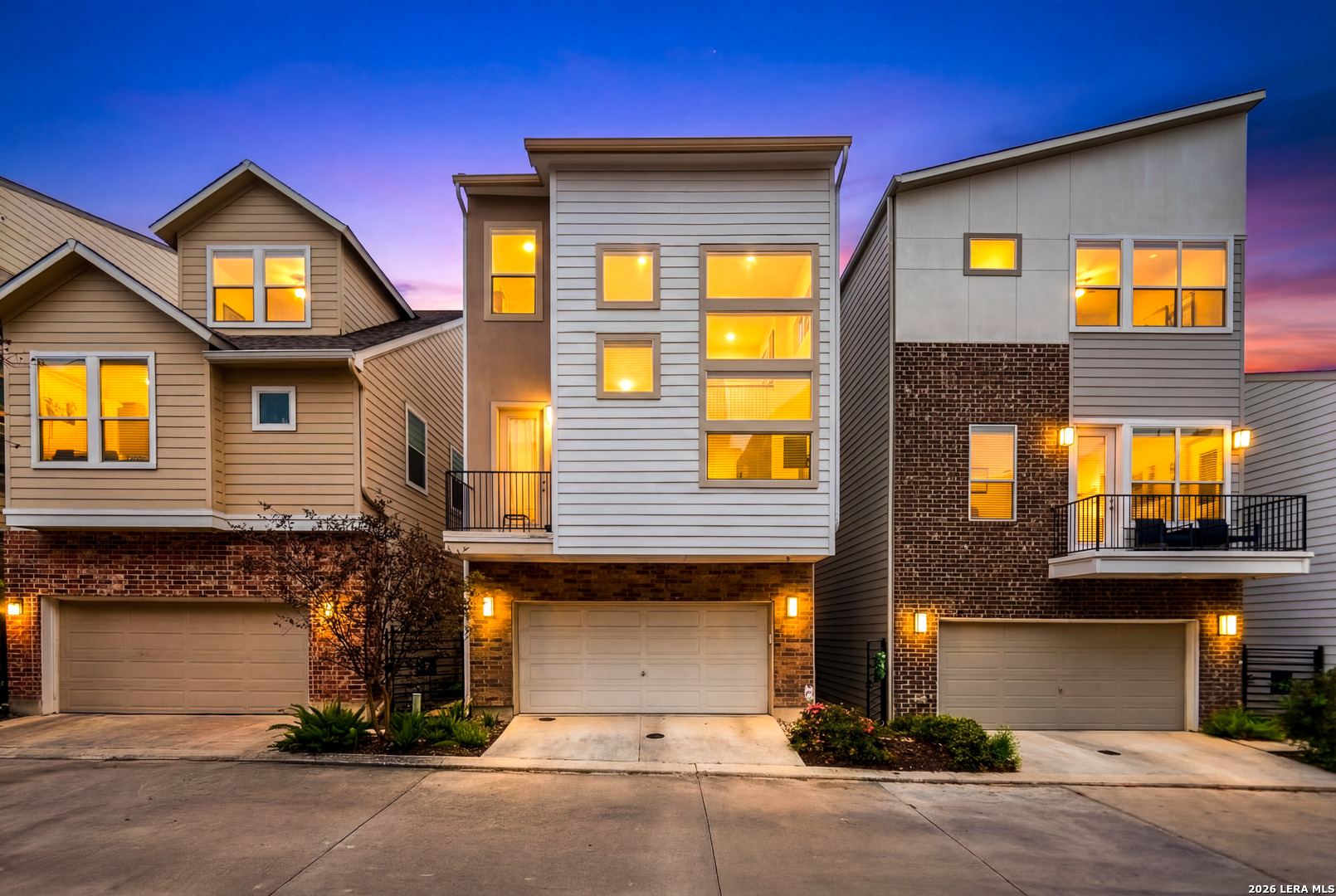 Experience modern city living in this thoughtfully designed three-story residence at The Gardens at Urban Crest, perfect for a lock-and-leave lifestyle. This home offers three bedrooms and three full bathrooms, with a flexible layout that provides privacy and functionality on every level. The first floor features a guest suite with direct access to a private patio, while the second level showcases a bright, open kitchen and living space ideal for entertaining, along with an additional guest bedroom. The top floor is reserved for the primary retreat, offering three closets, a spacious bathroom, and a private loft area that can be used as a sitting room, office, or media space. Media room furniture is available with the home, and the garage is equipped with a Level 2 EV charger for added convenience. The location offers easy access to Fort Sam Houston and surrounding amenities.