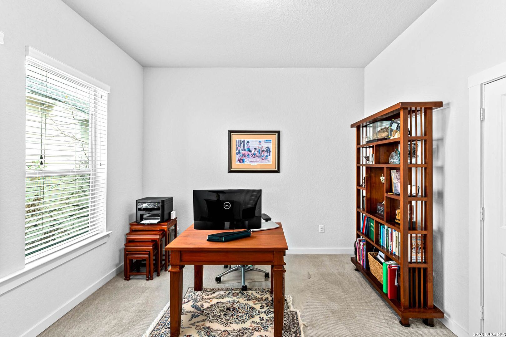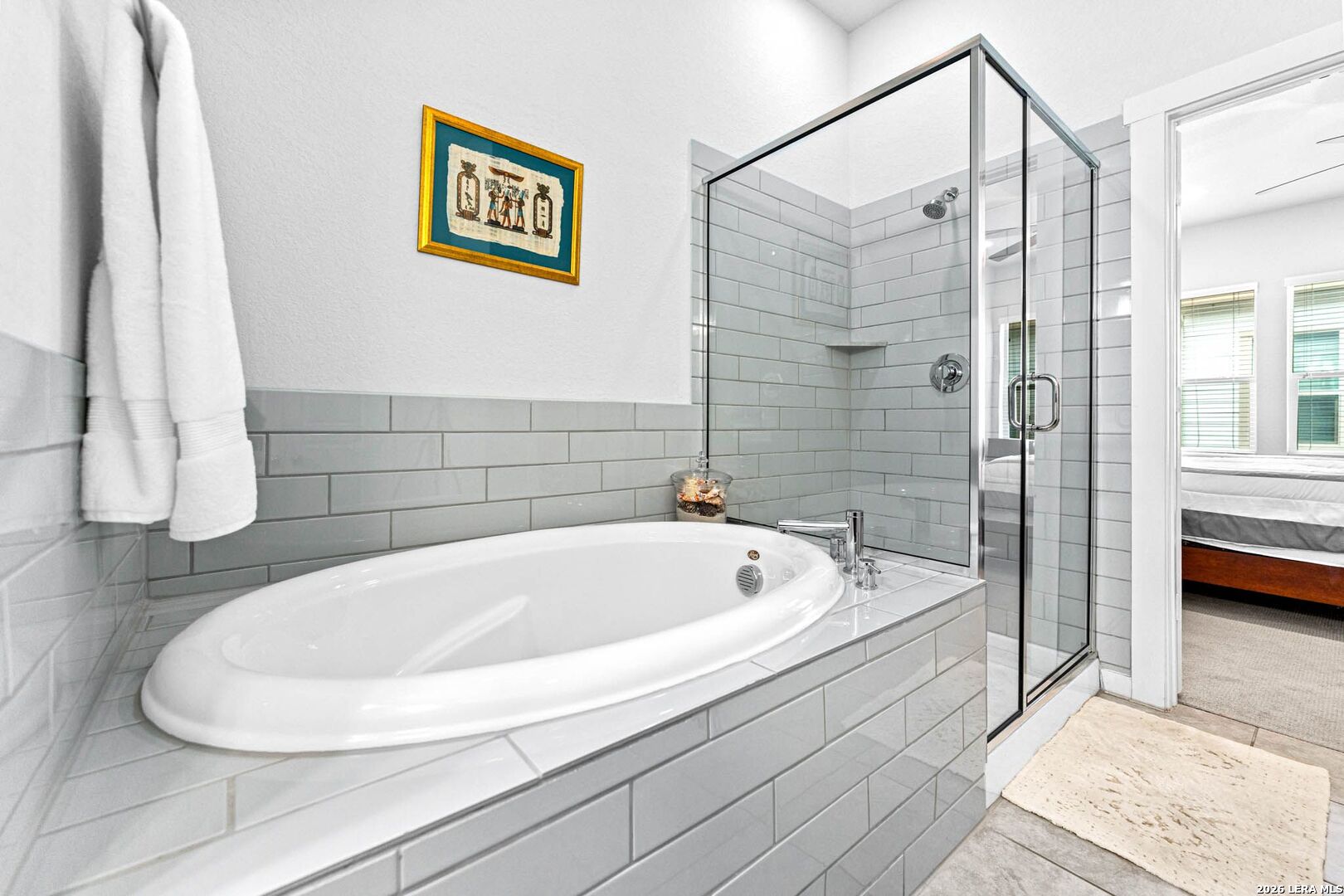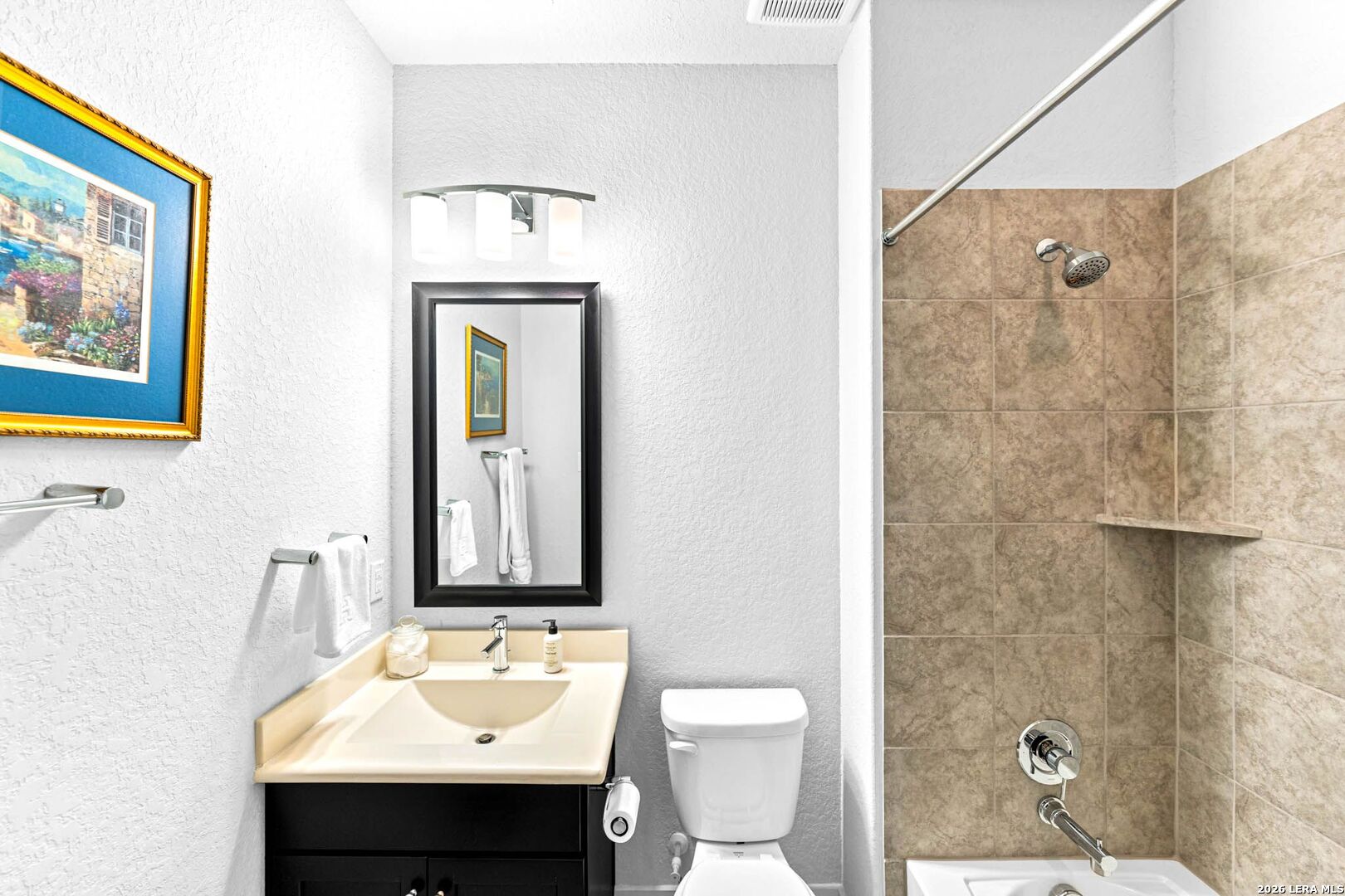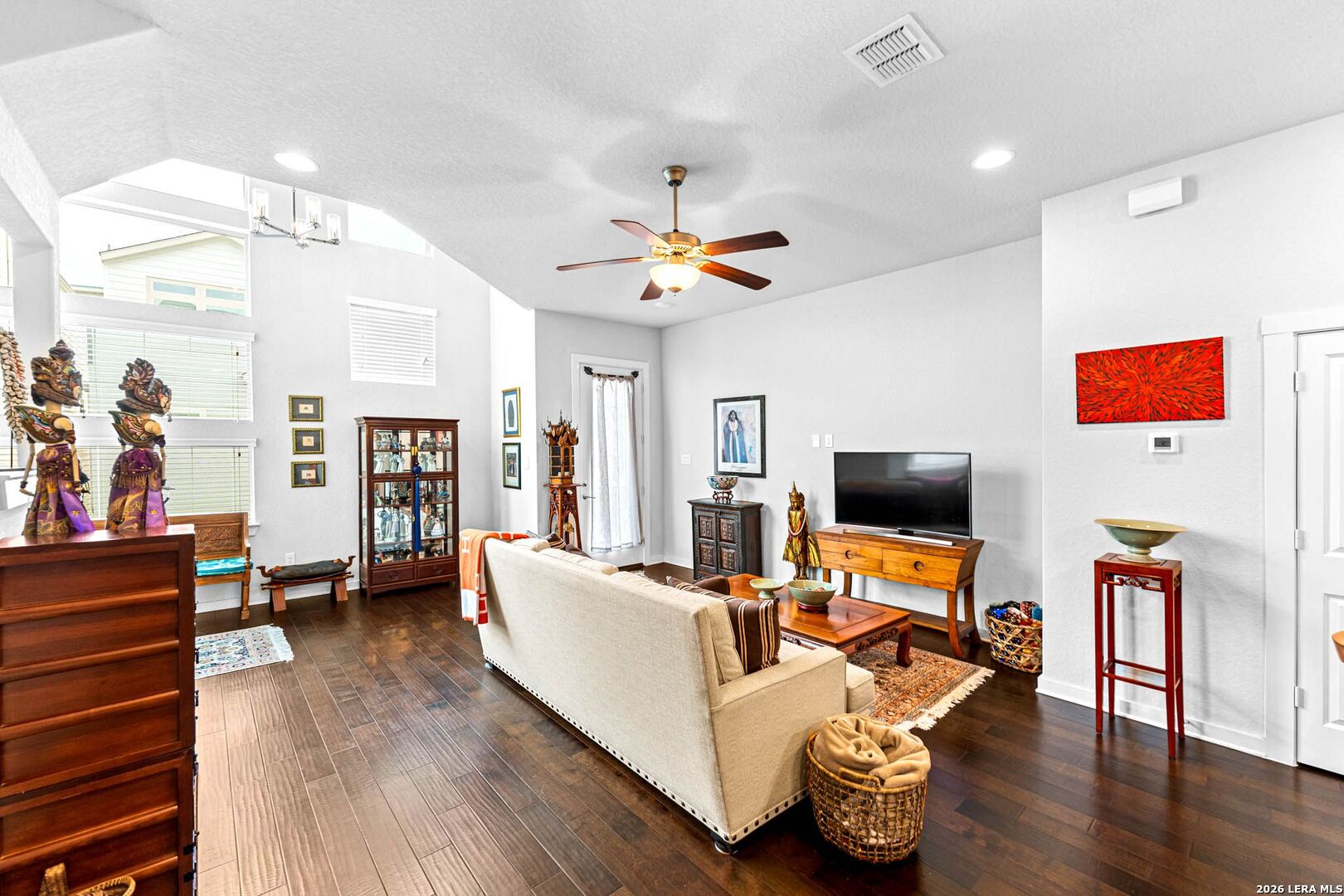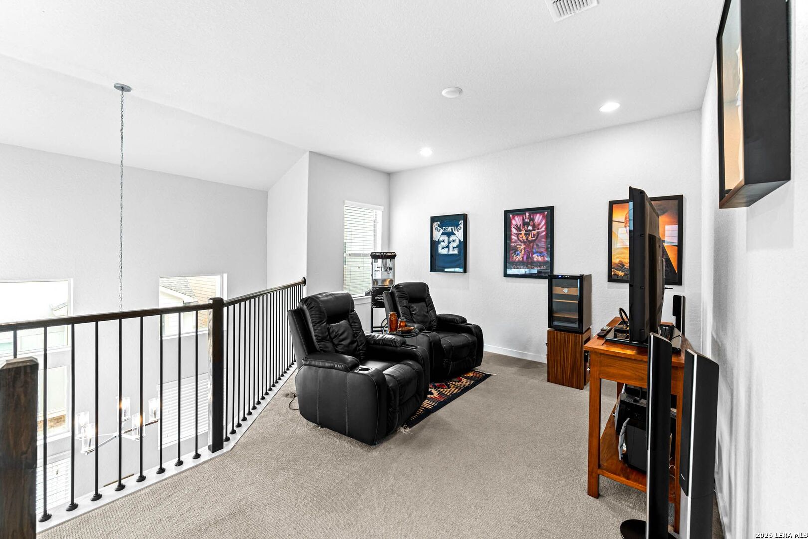 Experience modern city living in this thoughtfully designed three-story residence at The Gardens at Urban Crest, perfect for a lock-and-leave lifestyle. This home offers three bedrooms and three full bathrooms, with a flexible layout that provides privacy and functionality on every level. The first floor features a guest suite with direct access to a private patio, while the second level showcases a bright, open kitchen and living space ideal for entertaining, along with an additional guest bedroom. The top floor is reserved for the primary retreat, offering three closets, a spacious bathroom, and a private loft area that can be used as a sitting room, office, or media space. Media room furniture is available with the home, and the garage is equipped with a Level 2 EV charger for added convenience. The location offers easy access to Fort Sam Houston and surrounding amenities.