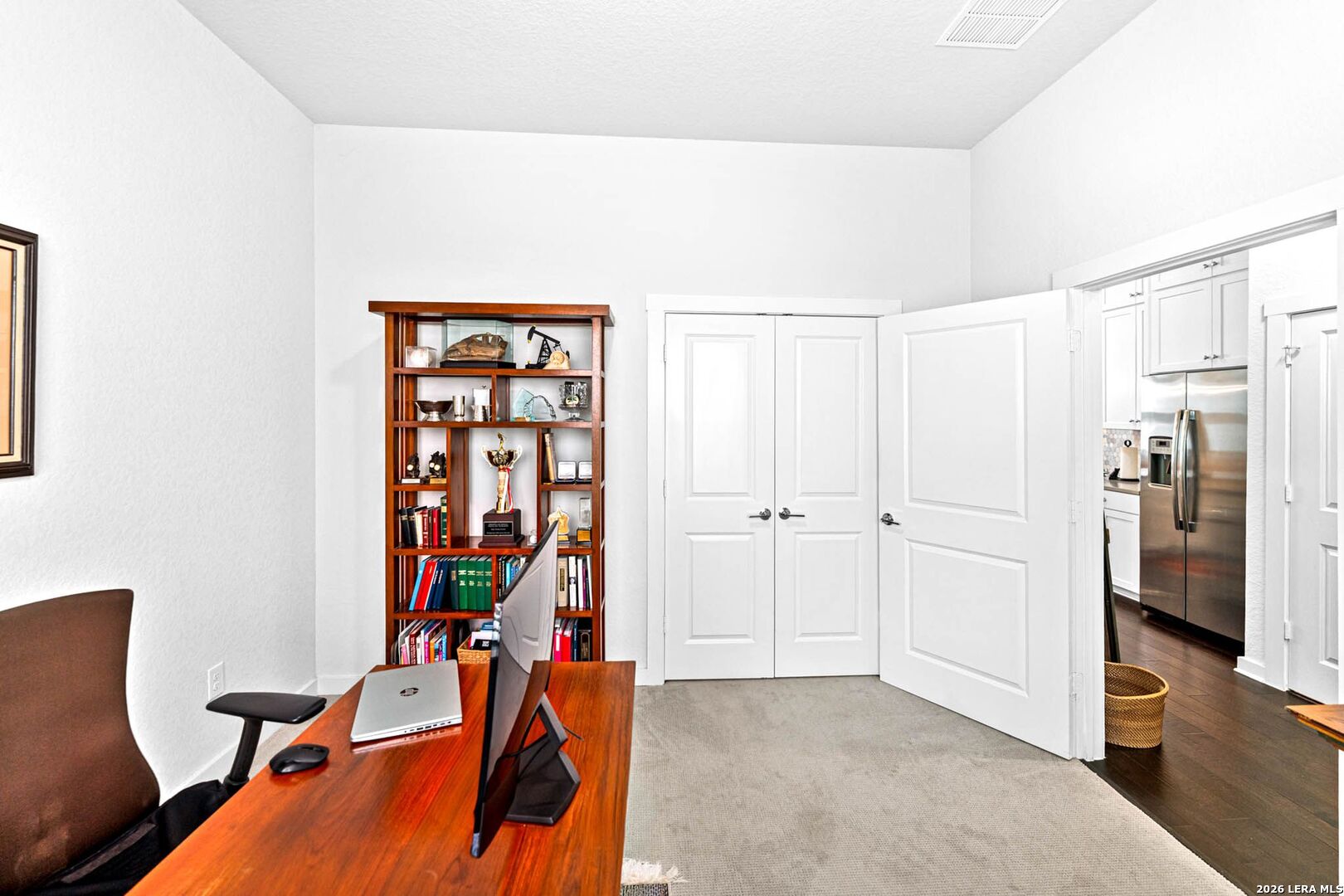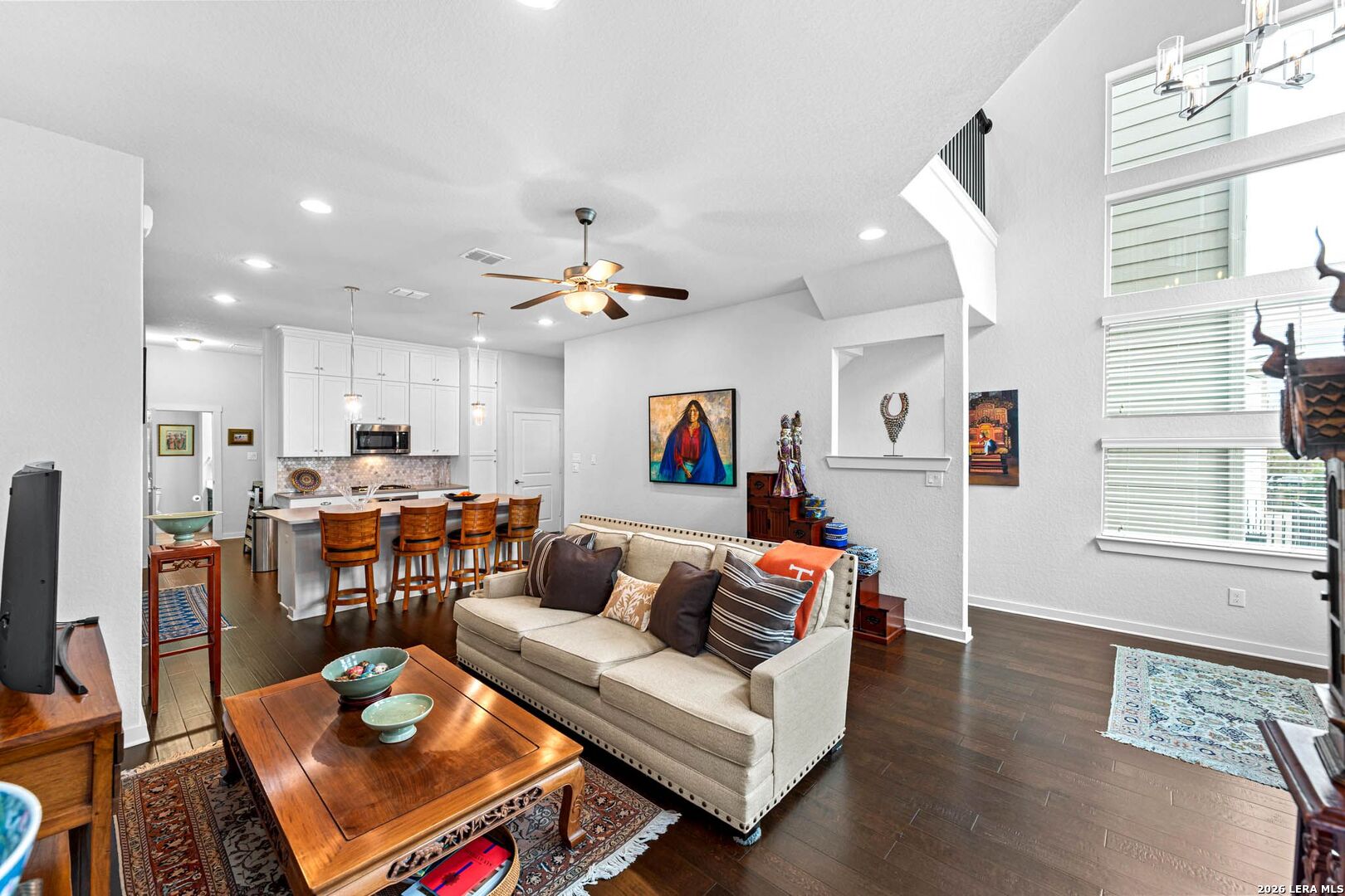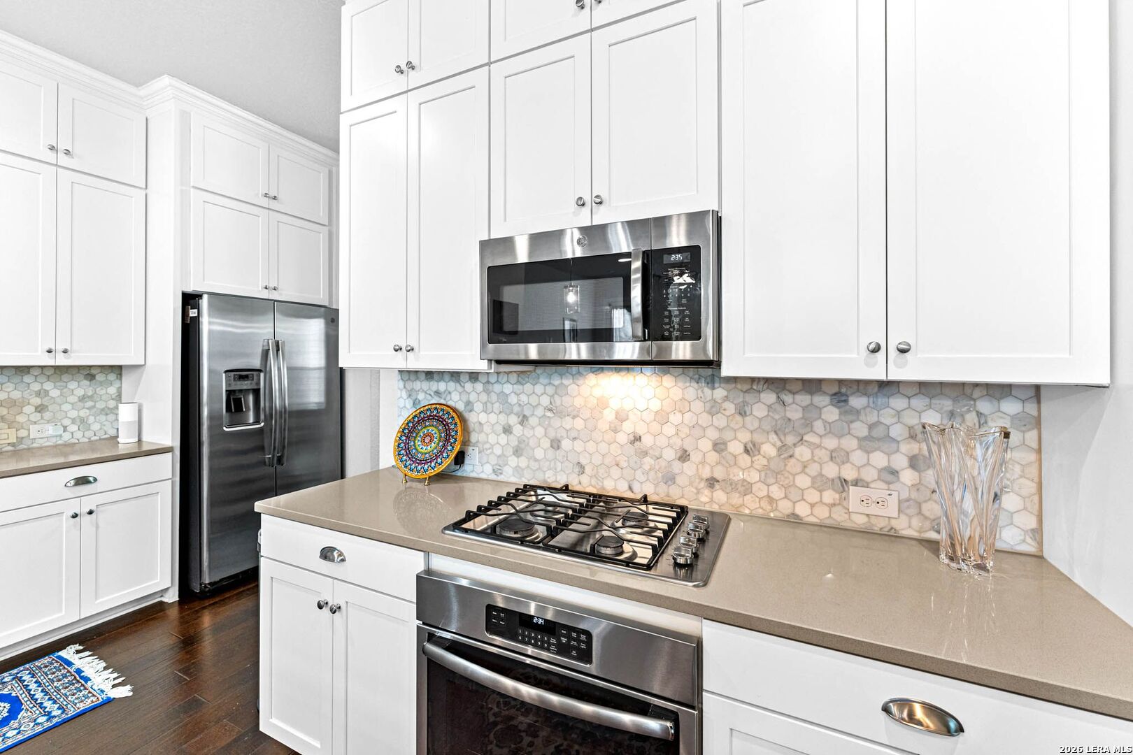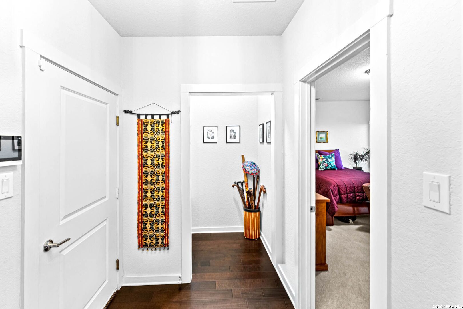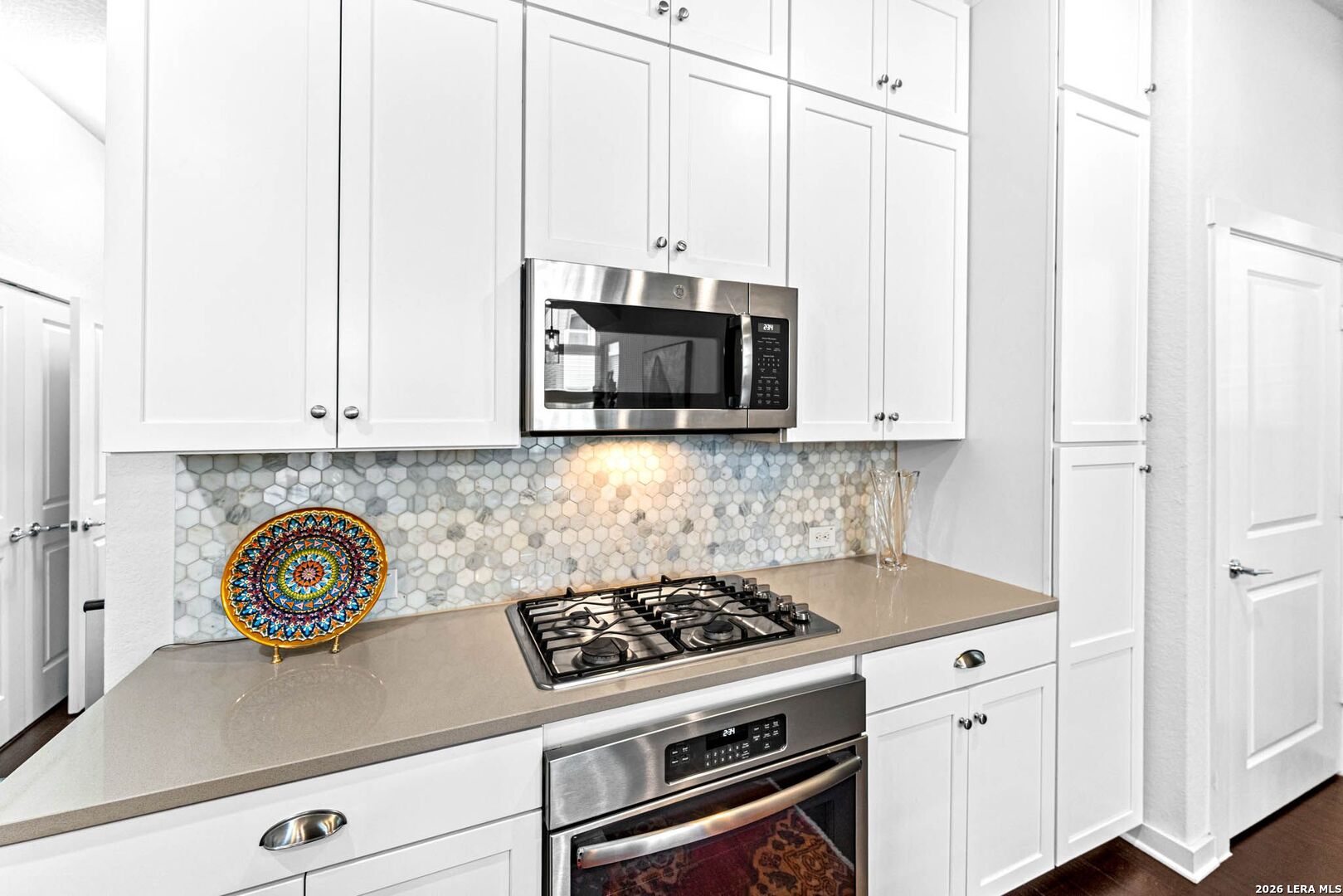 Experience modern city living in this thoughtfully designed three-story residence at The Gardens at Urban Crest, perfect for a lock-and-leave lifestyle. This home offers three bedrooms and three full bathrooms, with a flexible layout that provides privacy and functionality on every level. The first floor features a guest suite with direct access to a private patio, while the second level showcases a bright, open kitchen and living space ideal for entertaining, along with an additional guest bedroom. The top floor is reserved for the primary retreat, offering three closets, a spacious bathroom, and a private loft area that can be used as a sitting room, office, or media space. Media room furniture is available with the home, and the garage is equipped with a Level 2 EV charger for added convenience. The location offers easy access to Fort Sam Houston and surrounding amenities.