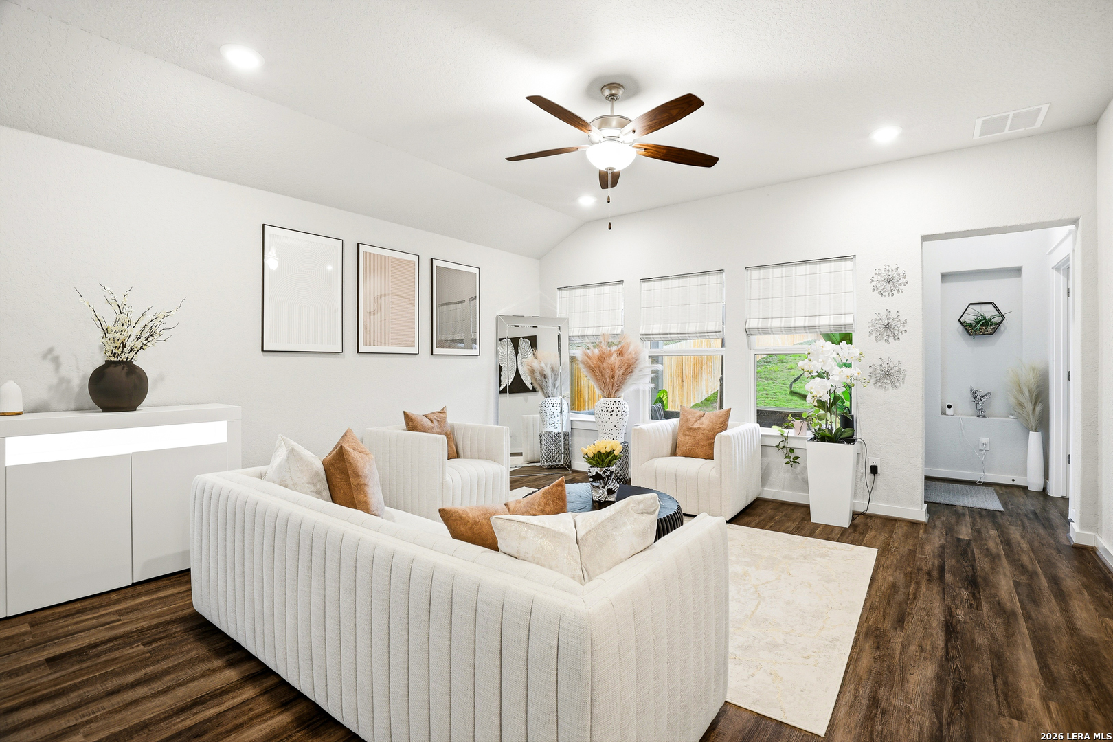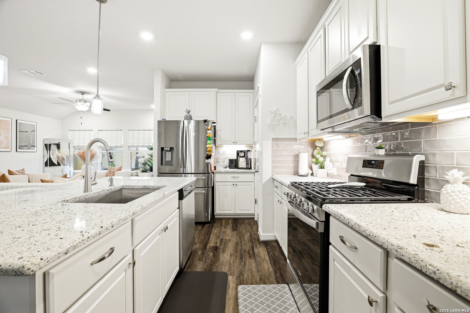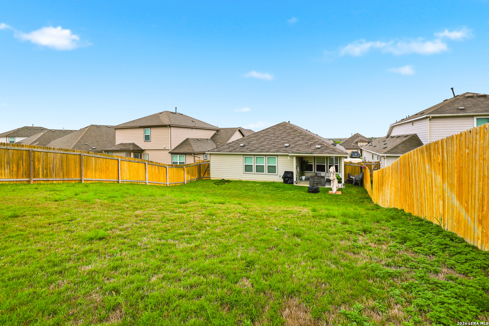 If you've been searching for a San Antonio home near Randolph Air Force Base that offers space, privacy, and an easy commute, this one checks all the boxes. Welcome home to this beautifully maintained single-story home offering space, flexibility, and everyday comfort in a prime location. From the moment you step inside, you're welcomed by a bright, open-concept design with high ceilings and recessed lighting that create an airy, inviting feel, making daily living and entertaining feel effortless. This four-bedroom home also features a versatile flex space that can be used as a home office, game room, or second living area, giving you the flexibility to fit your lifestyle. The kitchen sits at the heart of the home, complete with stainless steel appliances, granite countertops, a large island, and a breakfast bar that is perfect for casual meals or gathering with friends and family. It opens seamlessly to the living area and out to the backyard, creating a true indoor-outdoor connection. Step outside to a covered patio and fully fenced backyard designed for relaxing or entertaining. With no back neighbors and peaceful greenspace behind the home, you'll enjoy added privacy and a more serene setting. Located with easy access to I-10 and just minutes from Randolph Air Force Base, Lackland Air Force Base, and Fort Sam Houston, this home is ideal for commuters and military relocation.