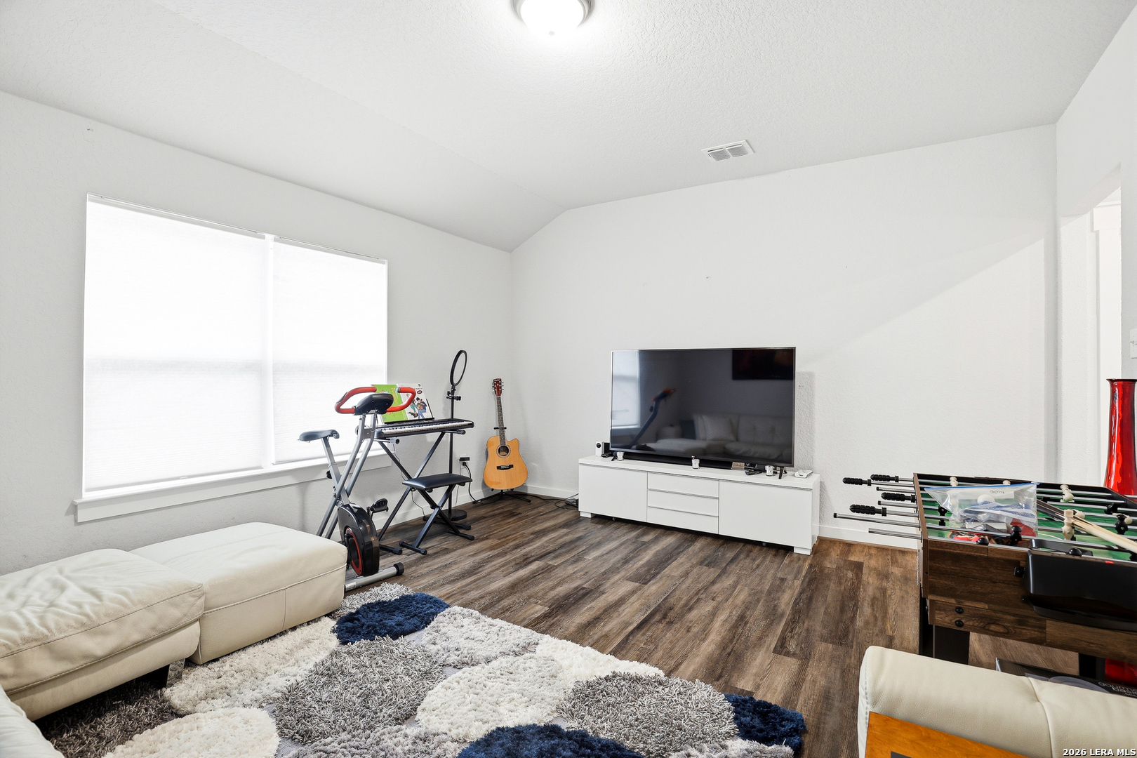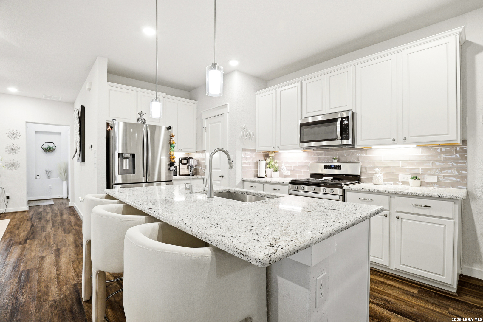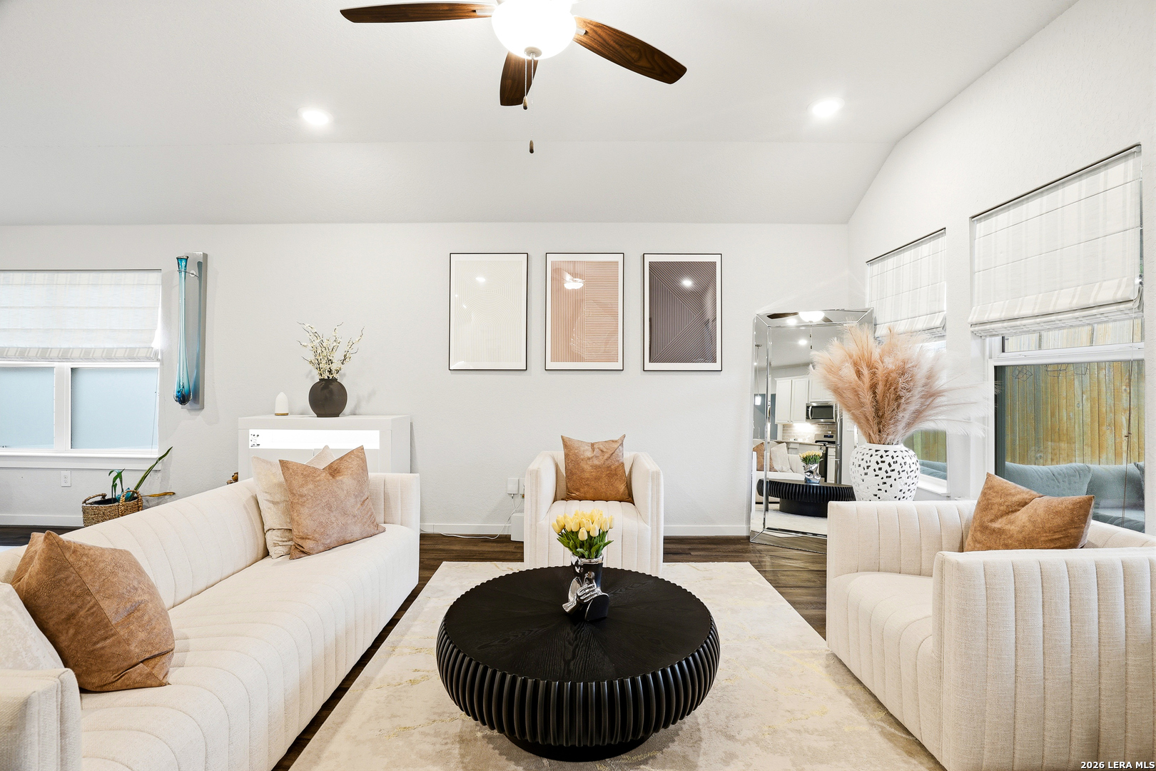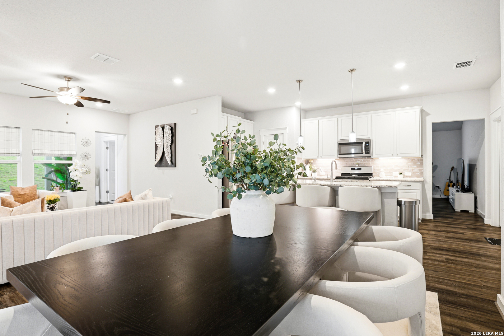 If you've been searching for a San Antonio home near Randolph Air Force Base that offers space, privacy, and an easy commute, this one checks all the boxes. Welcome home to this beautifully maintained single-story home offering space, flexibility, and everyday comfort in a prime location. From the moment you step inside, you're welcomed by a bright, open-concept design with high ceilings and recessed lighting that create an airy, inviting feel, making daily living and entertaining feel effortless. This four-bedroom home also features a versatile flex space that can be used as a home office, game room, or second living area, giving you the flexibility to fit your lifestyle. The kitchen sits at the heart of the home, complete with stainless steel appliances, granite countertops, a large island, and a breakfast bar that is perfect for casual meals or gathering with friends and family. It opens seamlessly to the living area and out to the backyard, creating a true indoor-outdoor connection. Step outside to a covered patio and fully fenced backyard designed for relaxing or entertaining. With no back neighbors and peaceful greenspace behind the home, you'll enjoy added privacy and a more serene setting. Located with easy access to I-10 and just minutes from Randolph Air Force Base, Lackland Air Force Base, and Fort Sam Houston, this home is ideal for commuters and military relocation.