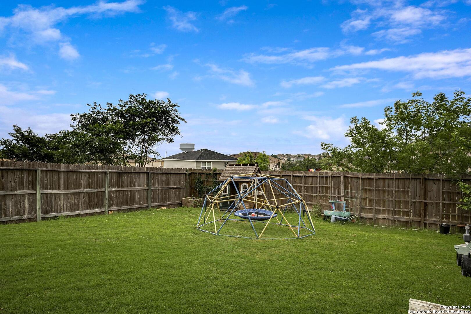 This beautiful 3 bedroom 3 bath 2044 sq ft home offers great style and functionality with many upgraded features, including a newer 2 year old AC system. Downstairs you will find a large living room area with an open floorplan design incorporating kitchen and dining room, complete with a rear composite deck perfect for entertaining guests. One bedroom is conveniently located on the first floor, with beautiful and durable tile flooring throughout. Upstairs you will be greeted by a beautifully upgraded bamboo flooring covering a highly functional family design, with a large game room, full office, laundry room and bedroom. The primary bedroom is also located upstairs with a full bath and upgraded walk in shower. The home is located in the highly desired Bulverde Village community. This growing area has an abundance of shopping, entertaining and dining opportunities to explore and is conveniently located with easy access to HWY 281. This home has been very well maintained and one that you do not want to miss. Schedule your tour today.
