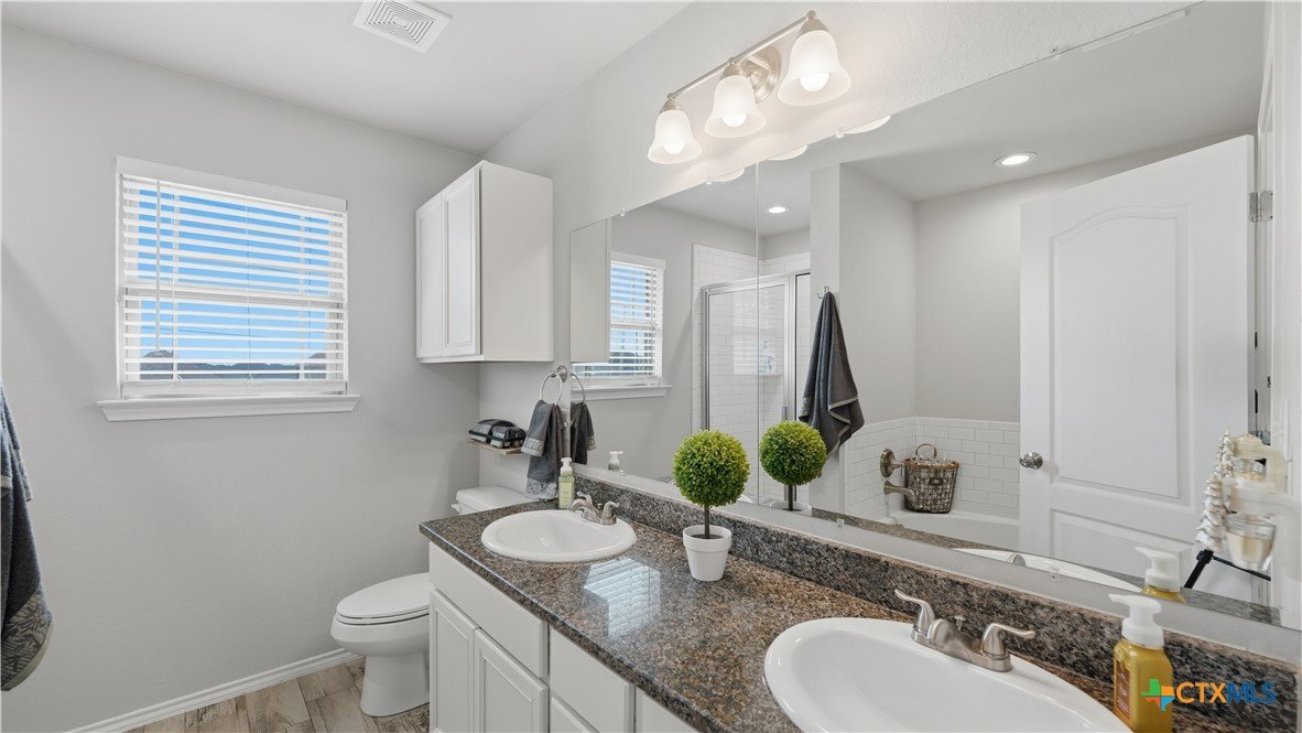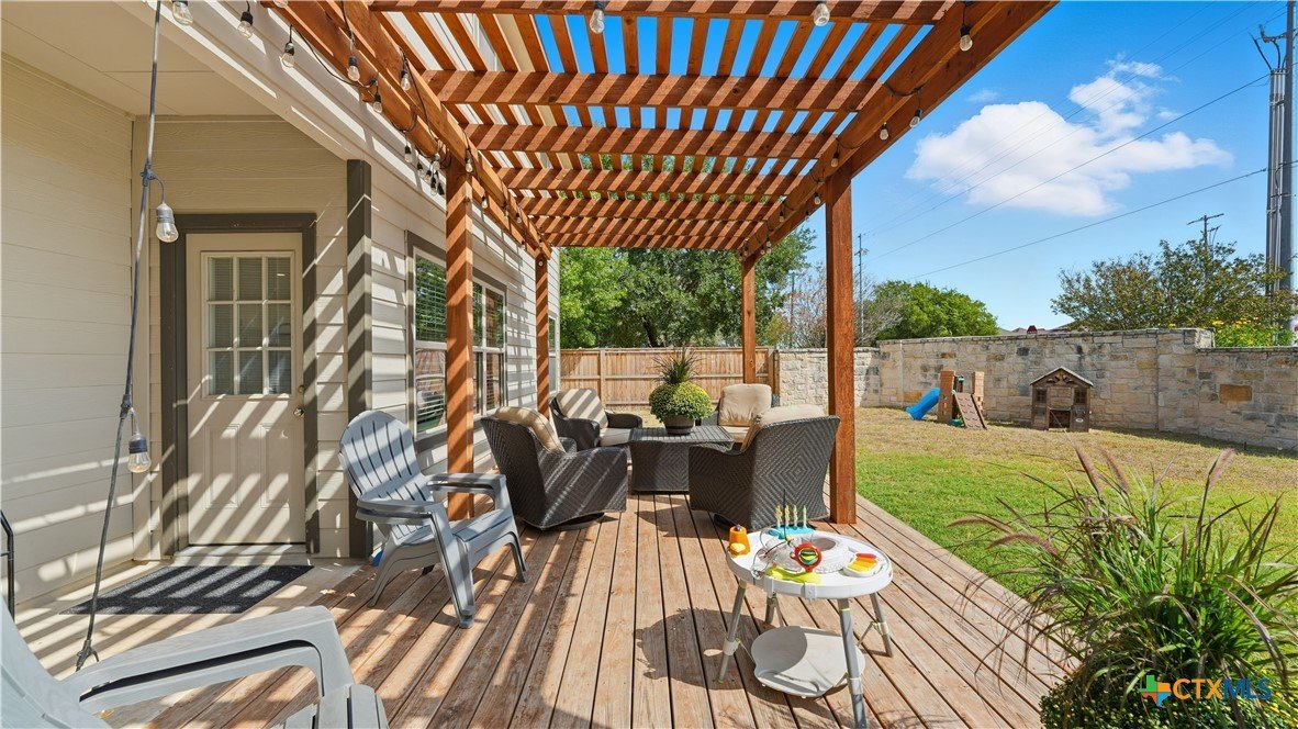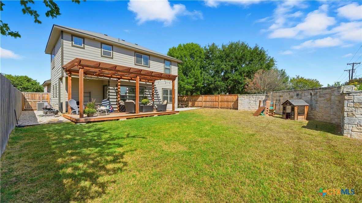 Discover the charm and comfort of this delightful 3 bdrm 2.5 bath single-family home located in the desirable Wendover Farms subdivision of New Braunfels. Built in 2021, this two-story residence offers a modern living experience with a spacious floor plan designed for both relaxation and entertaining. Step inside to a bright and airy home featuring two separate living areas, providing ample space for family activities and quiet retreats. The main living areas and kitchen feature a mix of durable ceramic tile and laminate flooring, while the bedrooms are comfortably carpeted. The chef's kitchen is equipped with solid surface countertops, a stove/range, dishwasher, amply counter space and large eating bar. The home features a classic brick exterior and sits on a generous lot , enjoy the large private backyard form your beautiful wood deck complete with a wood pergola. Located in the desirable Comal Independent School District, it features easy commute to both I-35 and I-10 making this home a commuter’s dream. This quiet neighborhood offers a peaceful setting while still being close to all the amenities and attractions that New Braunfels has to offer.