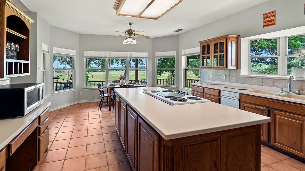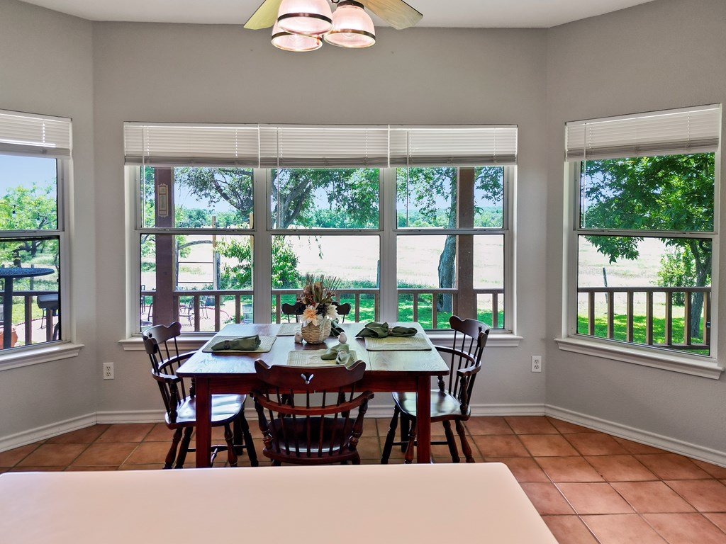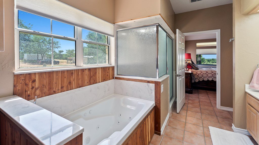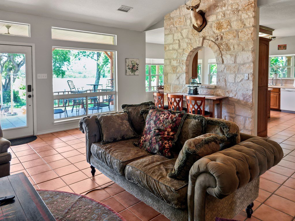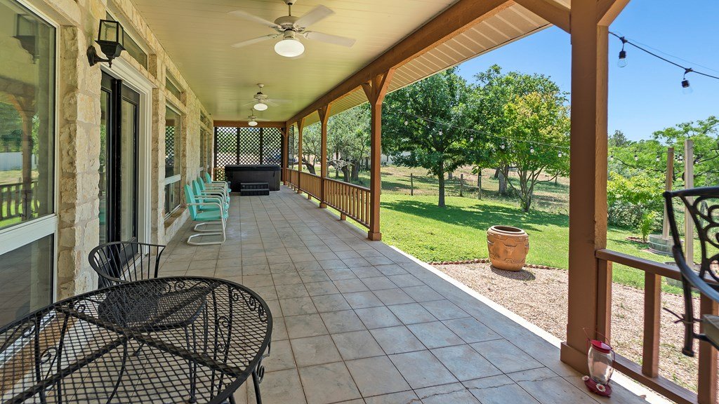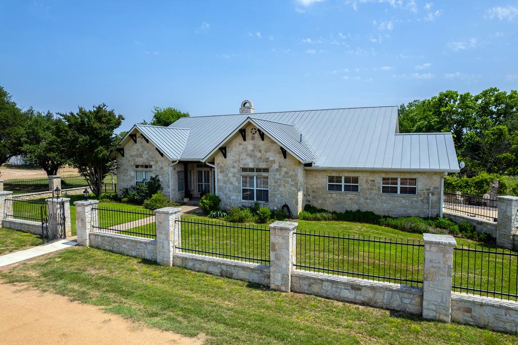 Spectacular 75 acre ranch near Fredericksburg. Just 2.7 miles west of the Fredericksburg Post Office on Highway 290 west, this exceptional 75 acre agricultural exempt ranch is a rare Hill Country find.The property features nearly 1000 feet of picturesque , tree lined Live Oak Creek, gently rolling native pastures, and level Klein grass ideal for grazing or agricultural use. The 1996 limestone home offers 2787 square feet of living space with three spacious bedrooms and three full baths, including a luxurious primary suite. The great room is highlighted by a striking stone fireplace, creating a warm and inviting gathering space.Step outside to the expansive back porch with hot tub and sweeping views overlooking the ranch and Live Oak Creek- perfect for relaxing or entertaining. Additional features include a metal roof, multiple comfortable outdoor sitting areas, a climate controlled workshop, and two RV sites with hookups, water and septic.One being fully covered as well.The property is well watered with two water wells and offers excellent privacy while remaining conveniently close to Fredericksburg. Whether you envision a private country estate , a family ranch or event venue, this remarkable property offers endless possibilities and true Hill Country charm. Adjacent 20 acres available with purchase of this 75 acres. See MLS 99171