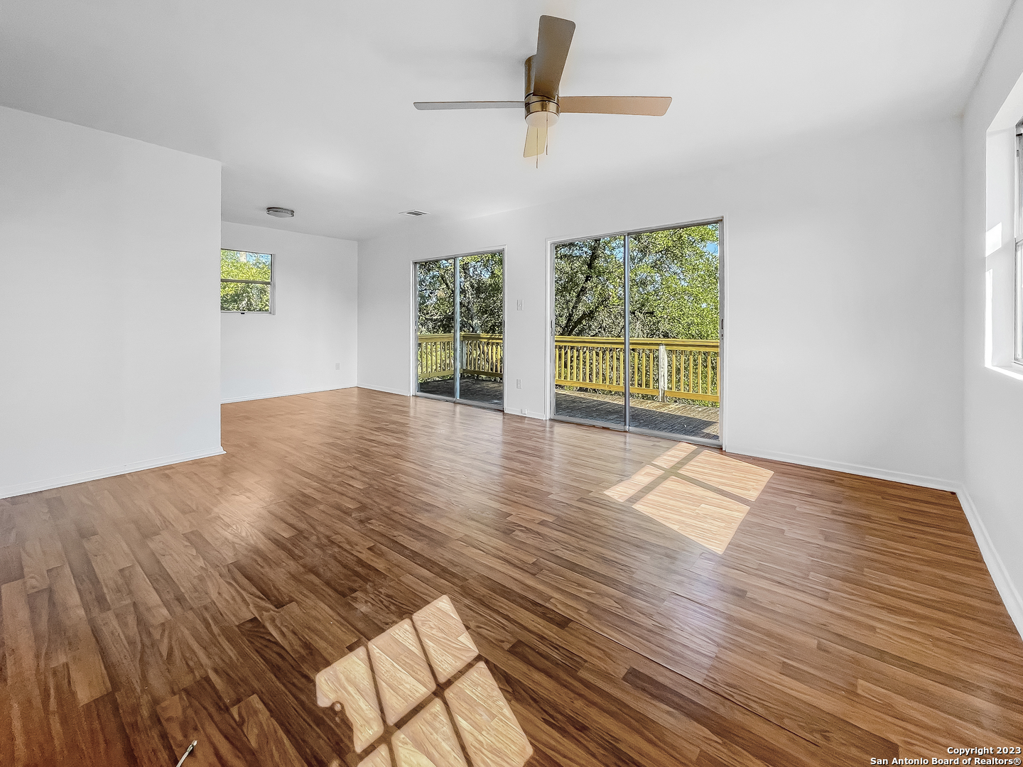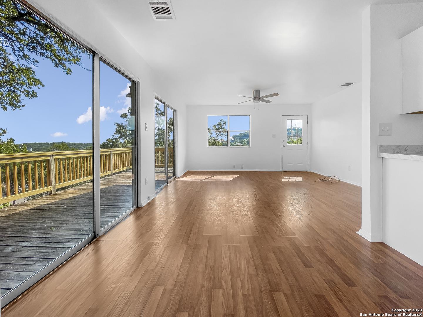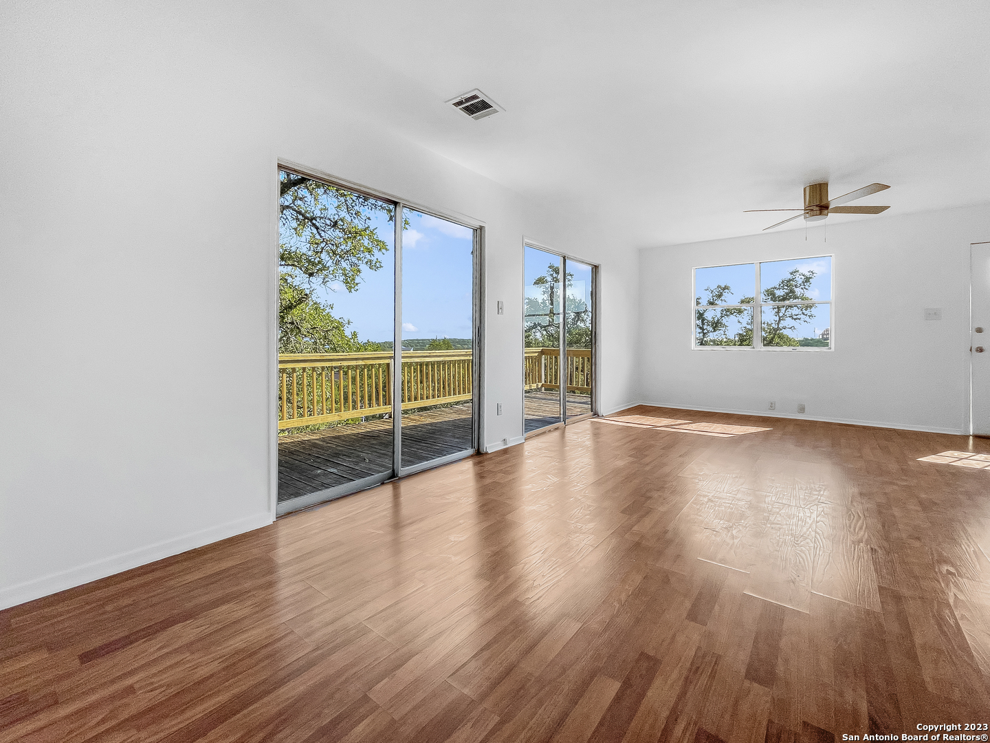 Nestled in the heart of Canyon Lake, this inviting 3-bedroom, 1-bath home boasts a mix of comfort and updated modern charm. Inside, the cozy living space seamlessly blends into a functional kitchen equipped with all the essentials. The flooring has been updated throughout the home. Each bedroom offers a peaceful retreat with stunning treetop views. Outside, the wrap around deck is an ideal location for both relaxation and weekend BBQs. What truly sets this property apart is its prime location: a stone's throw from Canyon Lake's picturesque waters, surrounded by trails, parks, and local dining and shopping. A harmonious blend of convenience and charm, this home is ready for its next owner!