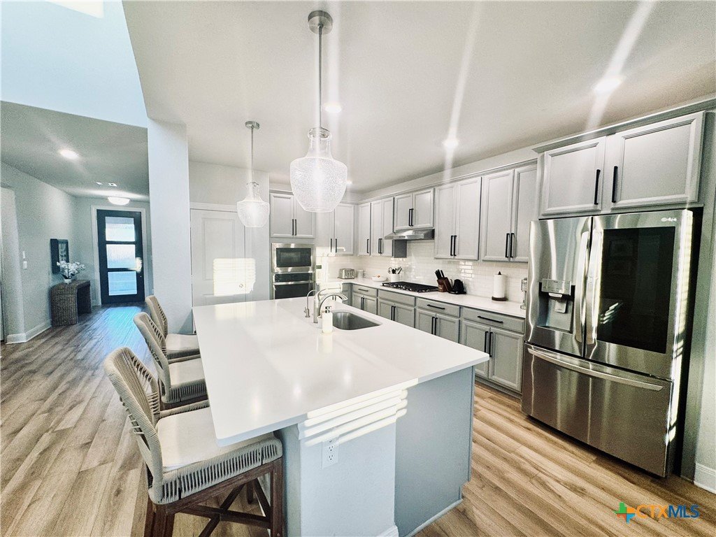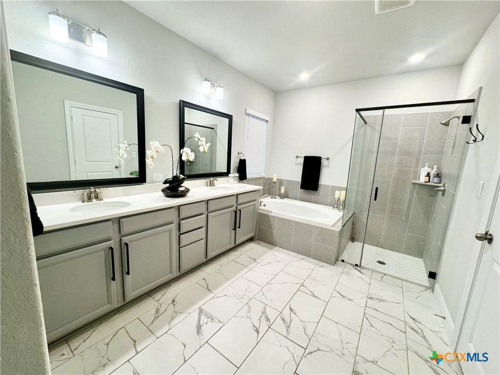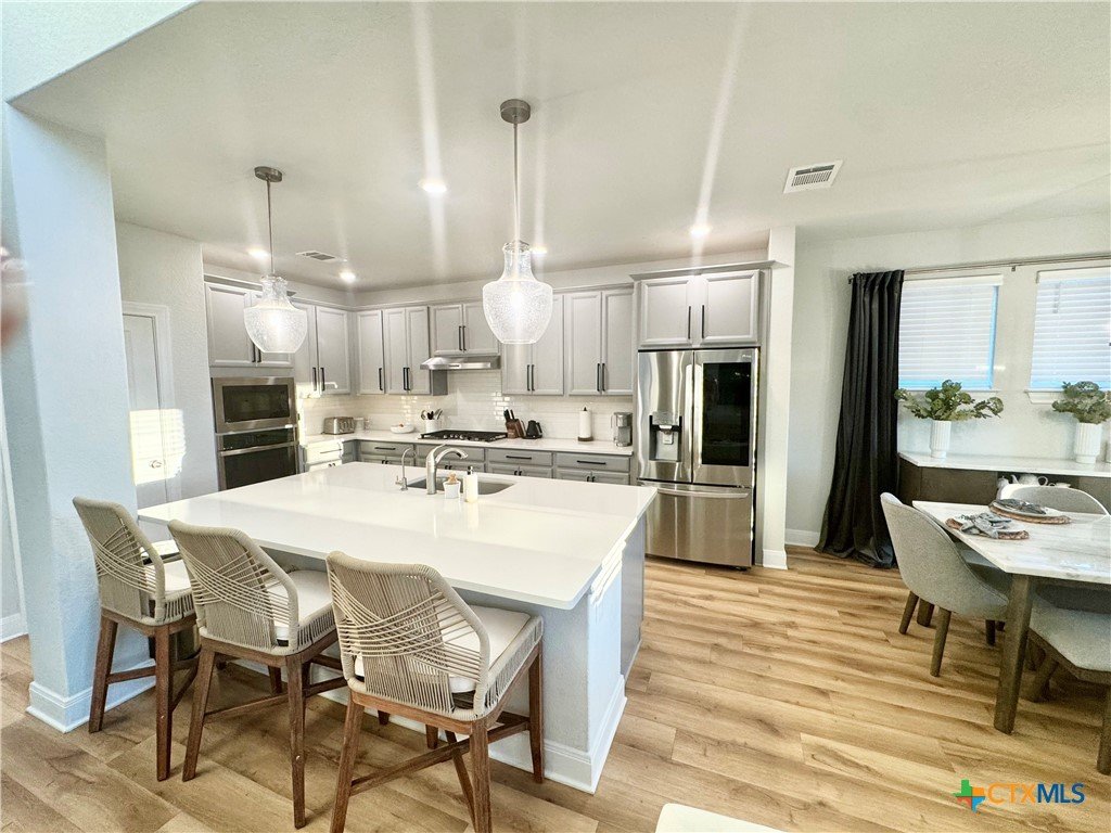 Welcome to your dream home in the highly sought-after Veramendi neighborhood of New Braunfels! This beautifully designed 4-bedroom, 3-bath home offers modern living in a vibrant community that combines small-town charm with convenient access to all that New Braunfels has to offer. As you step inside, you are greeted by an open, airy floor plan with abundant natural light and high-end finishes throughout. The spacious living room features elegant flooring and large windows, perfect for relaxing or entertaining. The chef-inspired kitchen boasts stainless steel appliances, quartz countertops, a large island, and ample cabinet space for all your culinary needs. The luxurious master suite offers a peaceful retreat with a spa-like en suite bathroom, including a double vanity, soaking tub, and separate shower. Three additional generously sized bedrooms provide plenty of space for family, guests, or a home office. Outside, enjoy your own private oasis with a fenced backyard, perfect for outdoor dining, play, or gardening. The Veramendi community offers family-friendly amenities, including parks, trails, and easy access to top-rated schools, shopping, and dining. Don't miss the opportunity to own this stunning home in one of the most desirable neighborhoods in New Braunfels. Schedule your tour today and experience the best of Texas living!