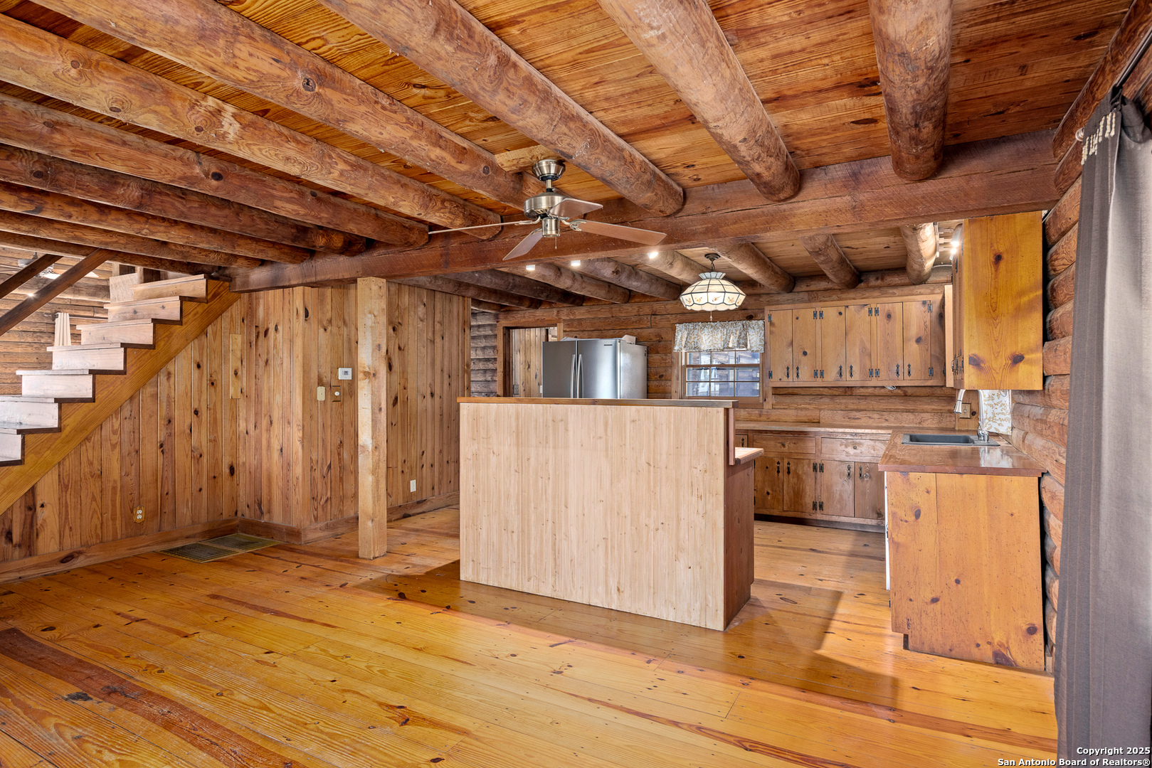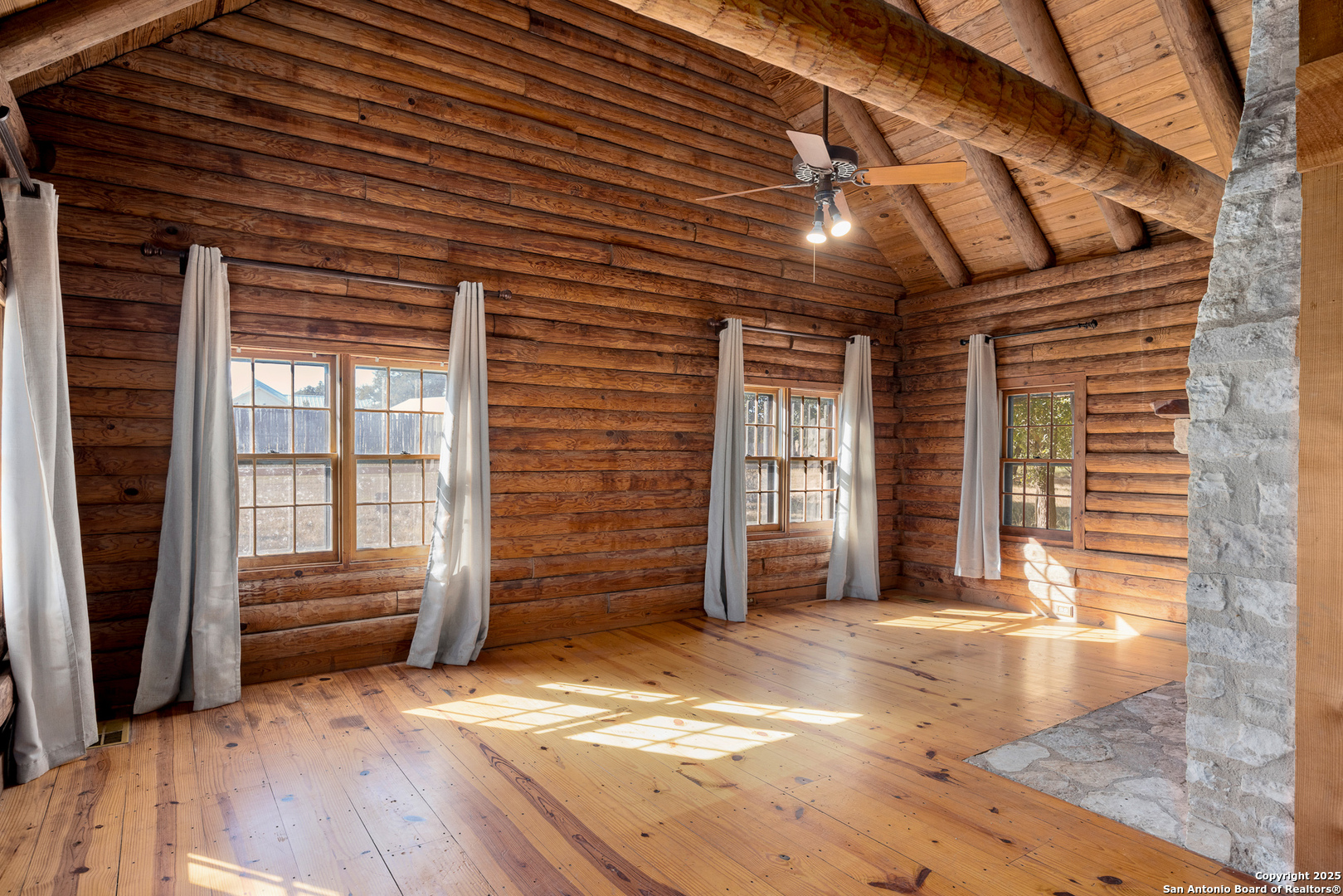 Old world craftsmanship meets modern style in this premier constructed log home. The tranquil setting with heirloom Oak Trees sets the stage for an exclusive unrestricted property located in the heart of the Texas Wine Corridor and located only 4-minutes from downtown Fredericksburg. Surrounded by similar properties and easy access off of US-290 just east of Fredericksburg, the property would make a premier boutique wine tasting location or a luxurious AirBnB. The centerpiece of the property is a comfortable log home with soaring ceiling in the living/dining room and a massive floor to ceiling hand-crafted limestone rock woodburning fireplace which beckons a cozy relaxation area. Take in the Hill Country views from the covered wood porches and watch the native wildlife which abound on the property. It isn't often a property of this caliber becomes available in the Fredericksburg area that offers so many features. One of the unique features of the property is the large basement area which would be perfect for your special wine vault. The subtlety of the home offers distinct warmth & charm and a foundation for a luxurious private residence or income producing venue.