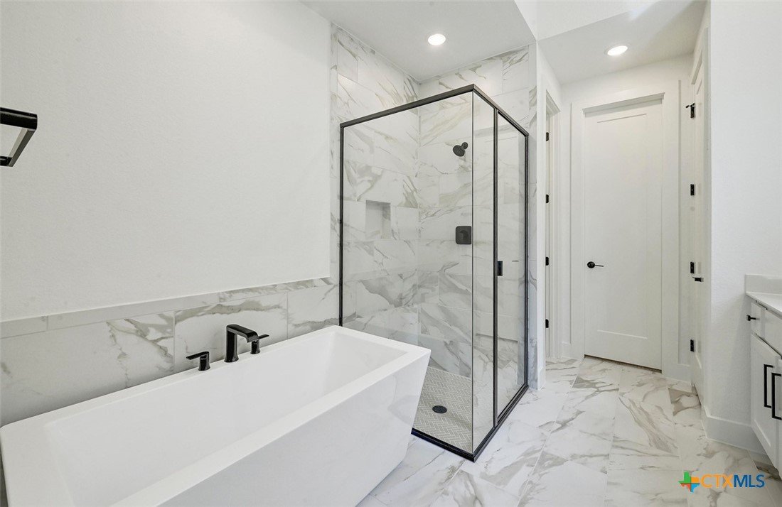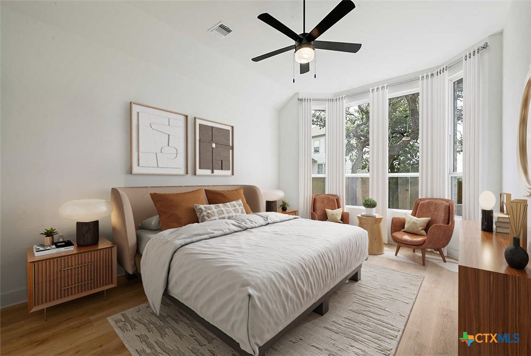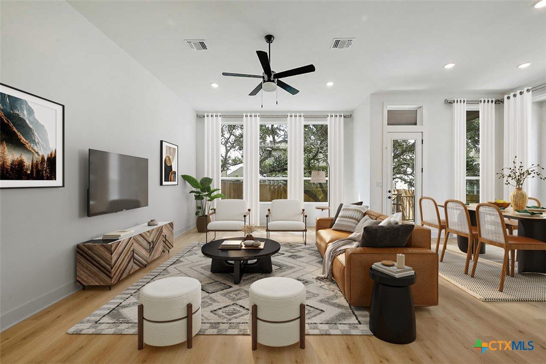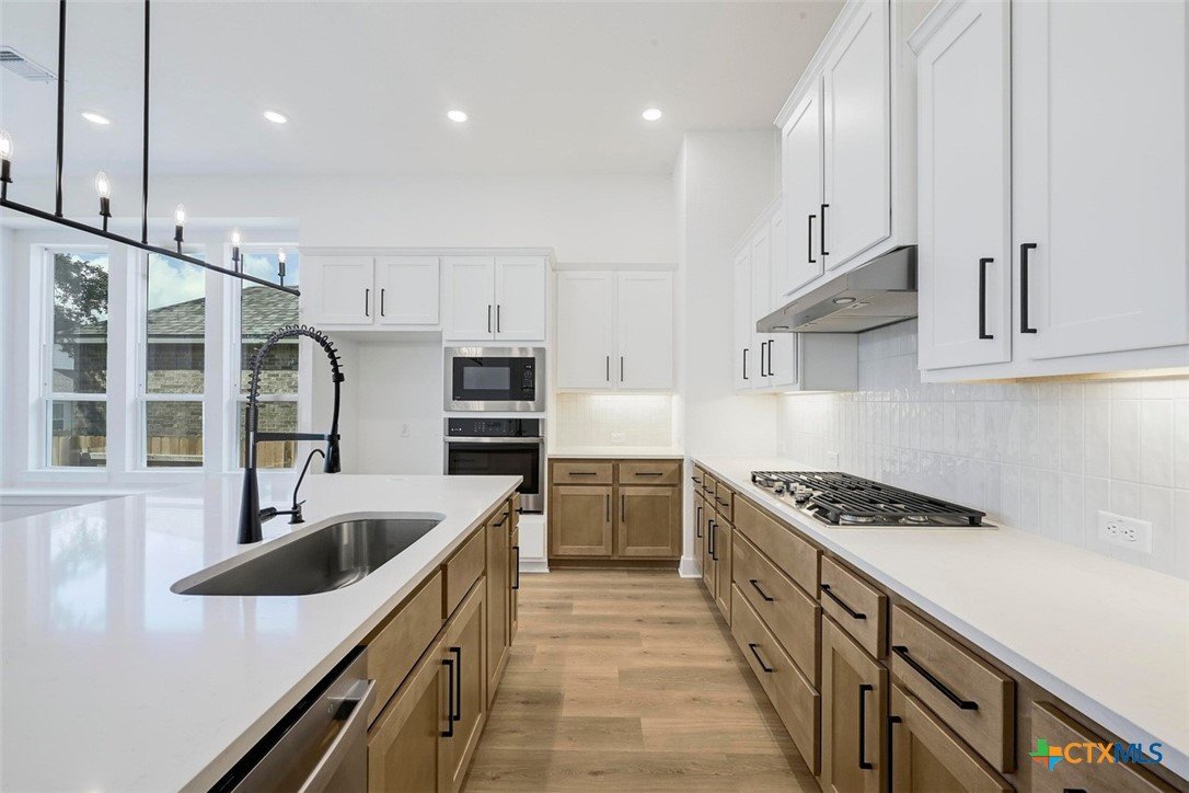 This stunning single-story home features a spacious open-concept modern floor plan designed for comfort and style. With four bedrooms and three bathrooms, this home offers ample space, for guests, or a home office setup. Large floor-to-ceiling windows and thoughtfully placed skylights fill the interior with abundant natural light, creating a bright and airy atmosphere. The gourmet kitchen seamlessly flows into the expansive living and dining areas, making it perfect for entertaining. The primary suite is a private retreat with a luxurious spa-like ensuite bathroom and generous walk-in closet. Additional bedrooms are well-sized, with one featuring its own en-suite bath. High-end finishes, sleek modern fixtures, and extended outdoor living enhances the home's appeal. The backyard offers a tranquil space for relaxation with mature trees on site. Designed for both elegance and functionality, this home is a perfect blend of modern sophistication and everyday comfort! Ask about our builder incentives!