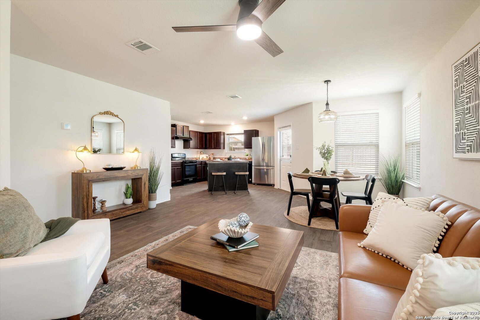If you're looking for a well-kept, move-in ready home with a practical layout and a great location, this one deserves a look. Located just minutes from Randolph AFB, major highways (IH-10 & Loop 1604), and plenty of shopping, dining and entertainment options, this home offers everyday convenience. Inside, you'll find an open floor plan with the right balance of space and functionality. With a welcoming living space, a kitchen with plenty of counter space and storage, and a layout that flows comfortably for daily living or casual entertaining. Whether you're hosting or unwinding, this space delivers! The primary bedroom features a walk-in closet and en-suite bath, while secondary bedrooms offer flexibility for guests, office space, or hobbies. Outside, the fully fenced backyard provides a great space to relax or let pets roam, and the attached garage adds convenience and storage. This home offers a solid option for buyers who want to skip the hassle of new construction and settle in with ease.