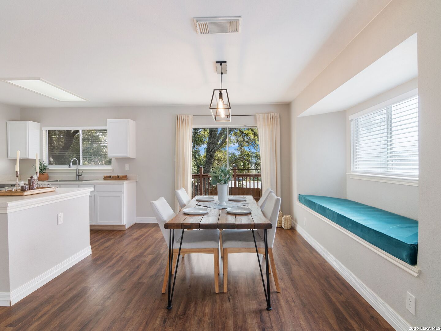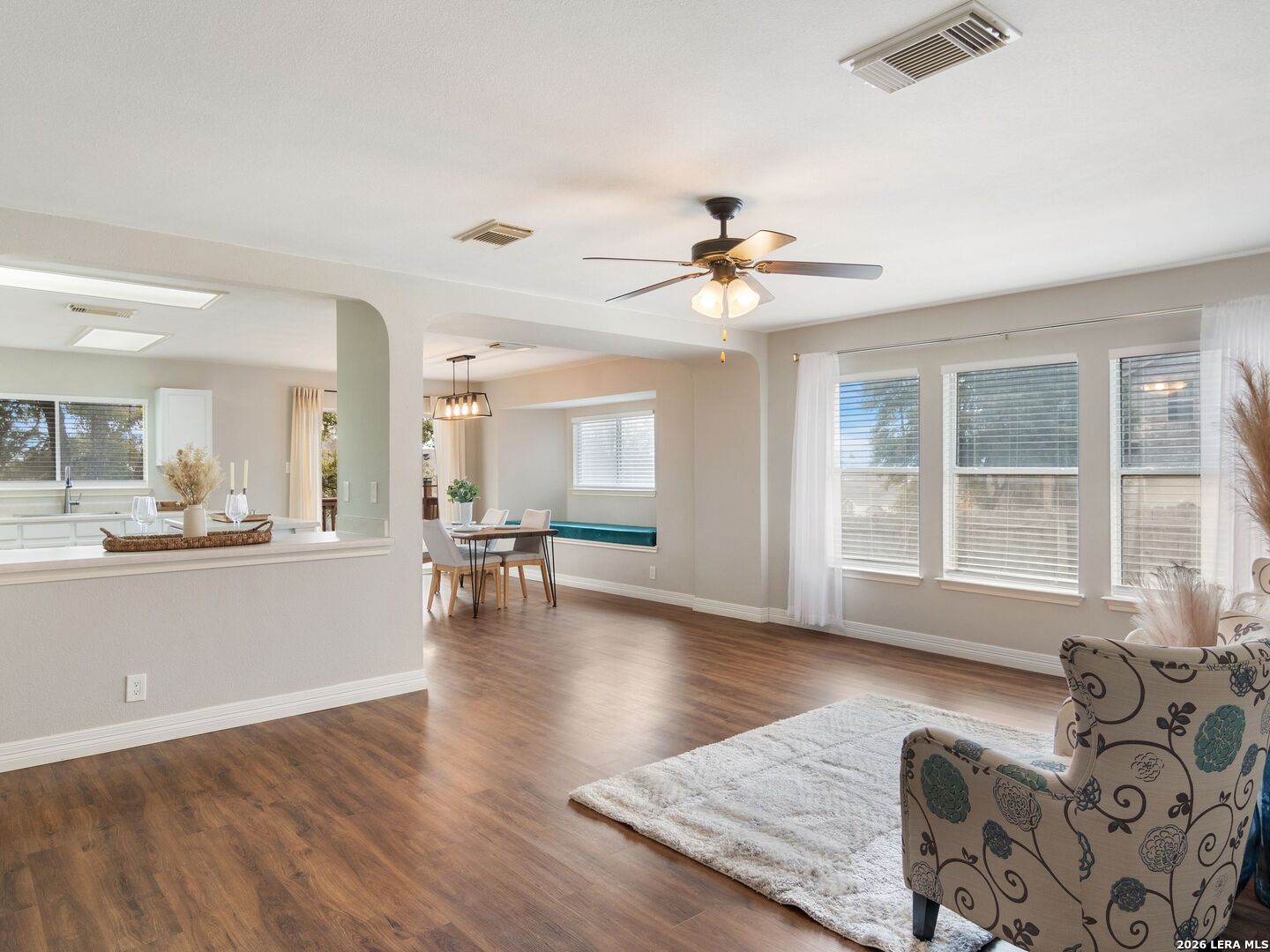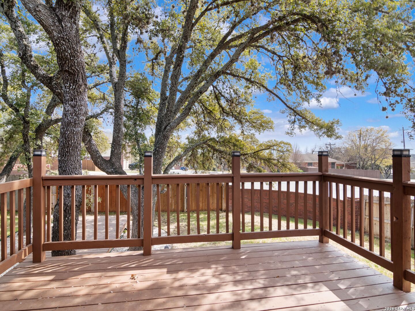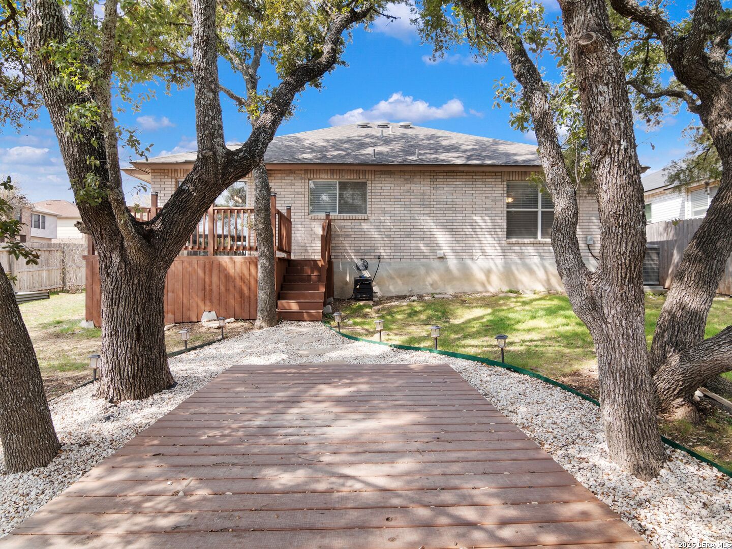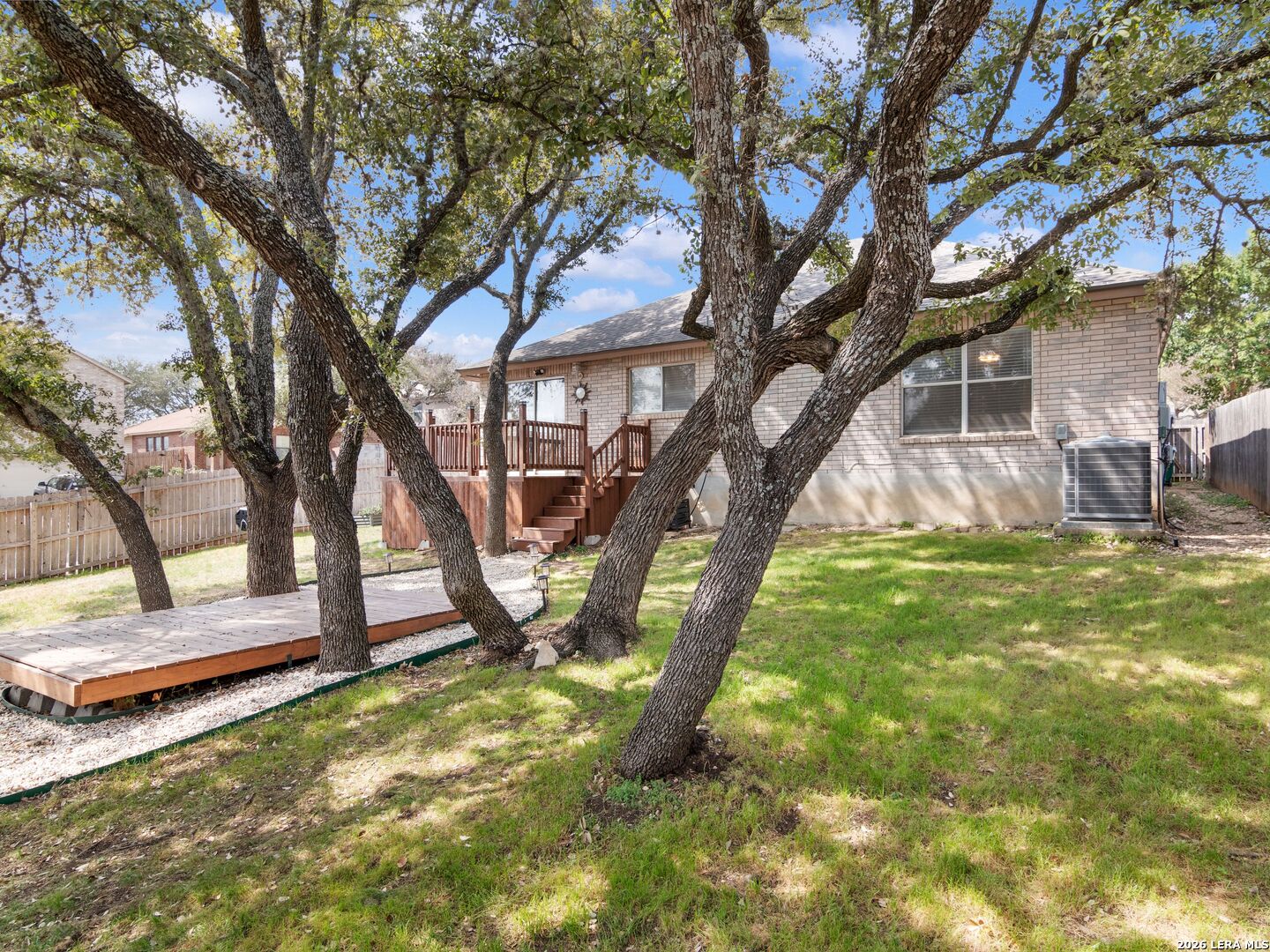 This beautifully maintained 3-bedroom, 2-bath single-story home offers a spacious open-concept layout designed for comfortable living and easy entertaining. The expansive living area flows seamlessly into the dining space and kitchen, then out to the deck-perfect for indoor-outdoor gatherings. Abundant windows fill the home with natural light, highlighting the luxury vinyl plank flooring throughout. The private primary suite features a walk-in closet and an en-suite bath with dual vanities. Situated on a large corner lot, the backyard is a true retreat with upper and lower decks nestled beneath a canopy of mature Live Oak trees and enclosed by a privacy fence. Additional highlights include a 2-car garage and a four-side brick exterior for low-maintenance living. Major updates provide peace of mind, including HVAC, water heater with expansion tank, and garage door (2022), plus roof shingles replaced in 2019. A wonderful opportunity to own a move-in ready home with inviting indoor and outdoor living spaces.