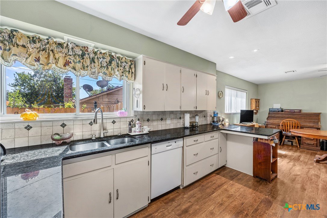 Move-in ready and meticulously maintained! This pristine 3-bedroom, 2-bathroom home boasts a fantastic big kitchen, freshly painted exterior, and a new roof (approx. 3 yrs). The backyard is your private oasis, featuring a covered patio for year-round entertaining. A detached workshop with power and a window unit offers endless possibilities for hobbies or storage. An updated electrical system provides peace of mind.