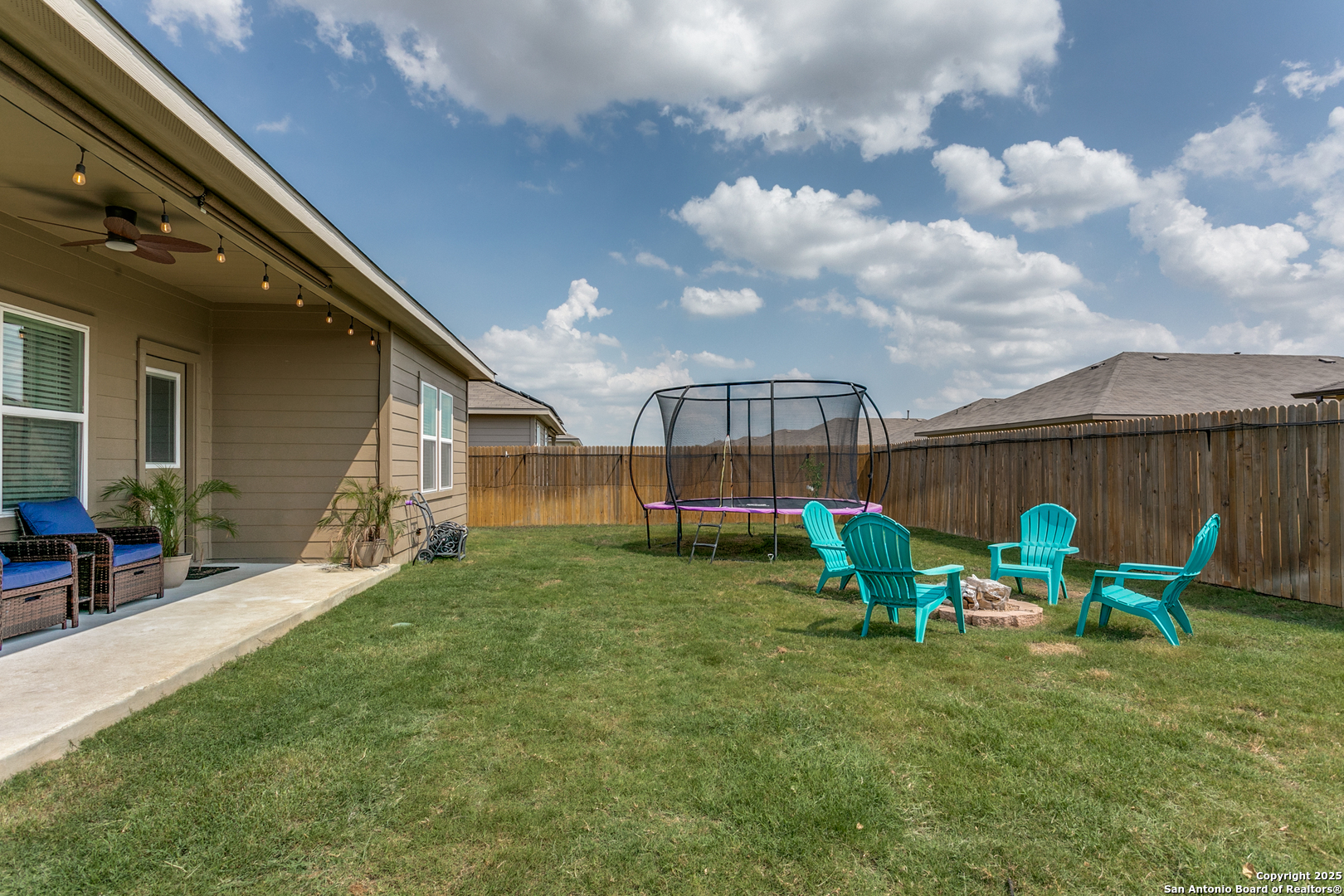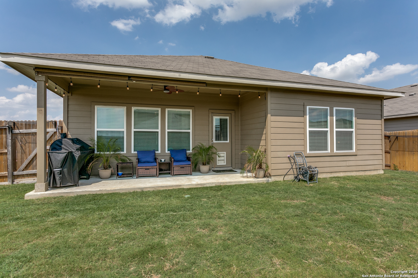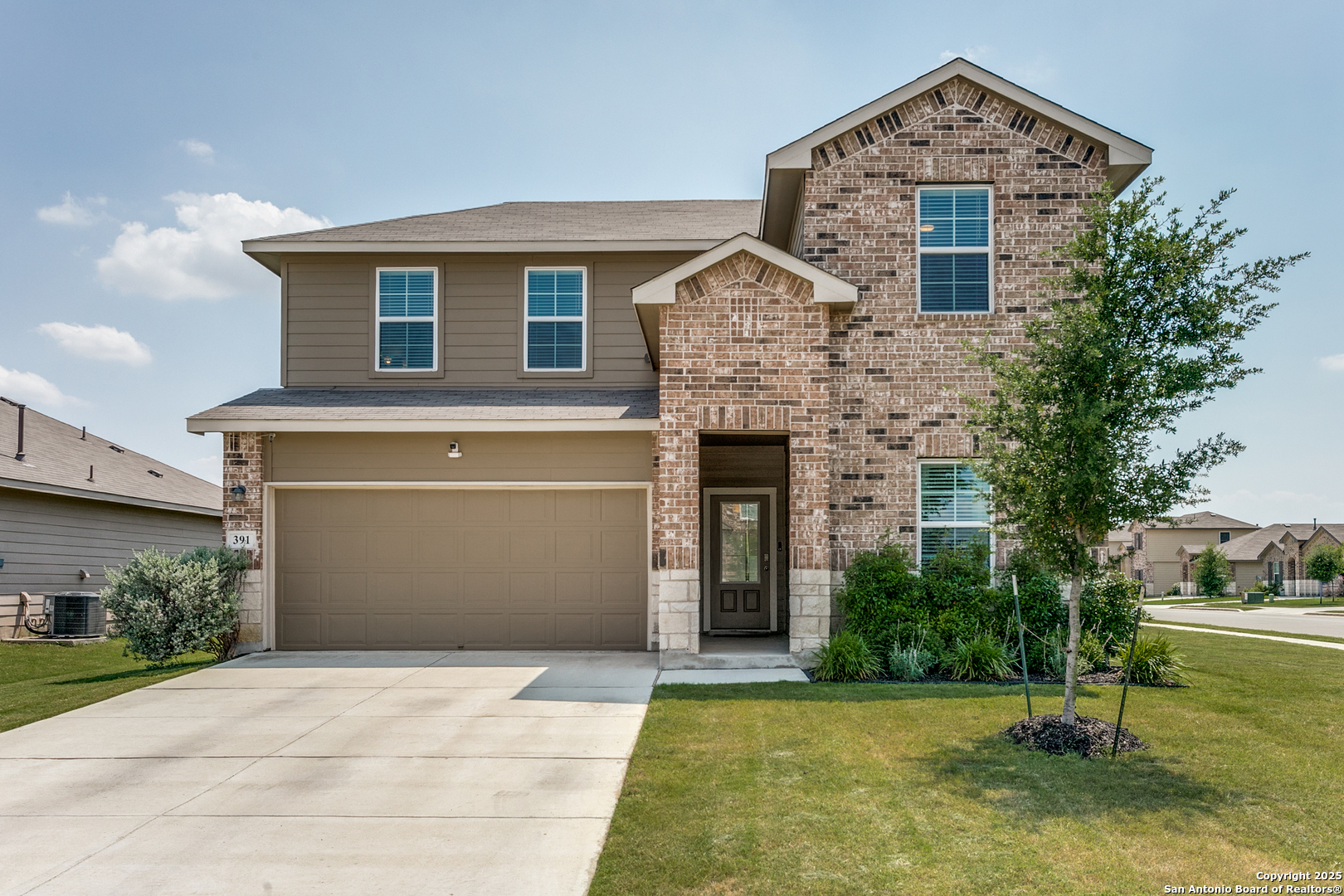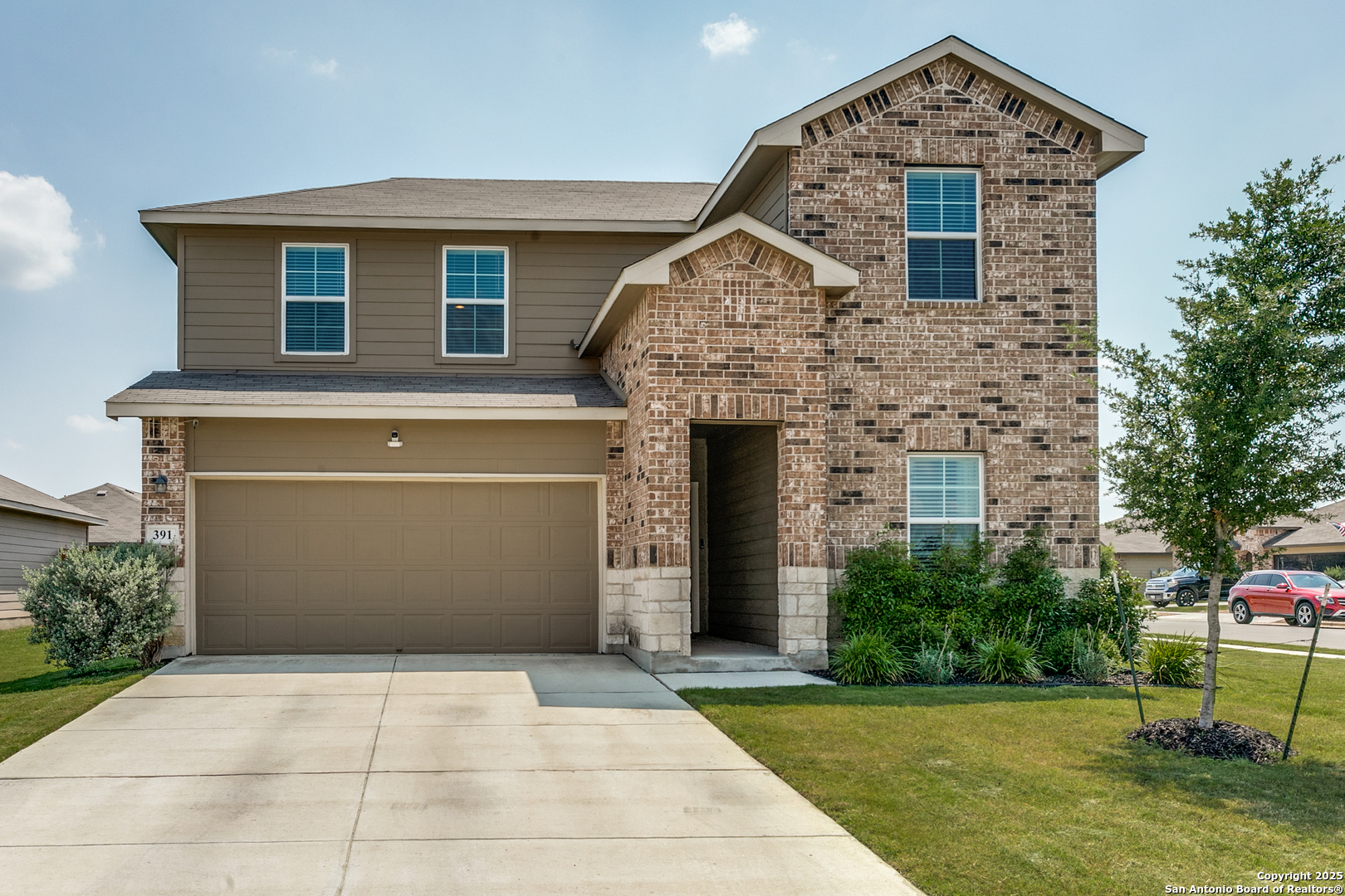 Welcome home to this stylish 4 bedroom 3 bath home filled with designer accents and finishes. This beauty is clean, move in ready and exudes pride of ownership! Downstairs boasts an open floor plan with an island kitchen, dining space and nice living area filled with natural light along with a secondary bedroom and full bath in addition to the spacious primary bedroom with a large walk in closet. Upstairs you will find a large game room with two additional bedrooms and a bath. Home sits on a nice size corner lot with a covered patio in the back including string lights, sun shades, a fire pit sitting area, raised garden beds and a sprinkler system. Light fixtures, fans and faucets have been upgraded and there is a beautiful custom built electric fireplace/entertainment unit with floating shelves. Great location close to historic Gruene, Schliterbahn, tons of shopping and everything New Braunfels has to offer.
