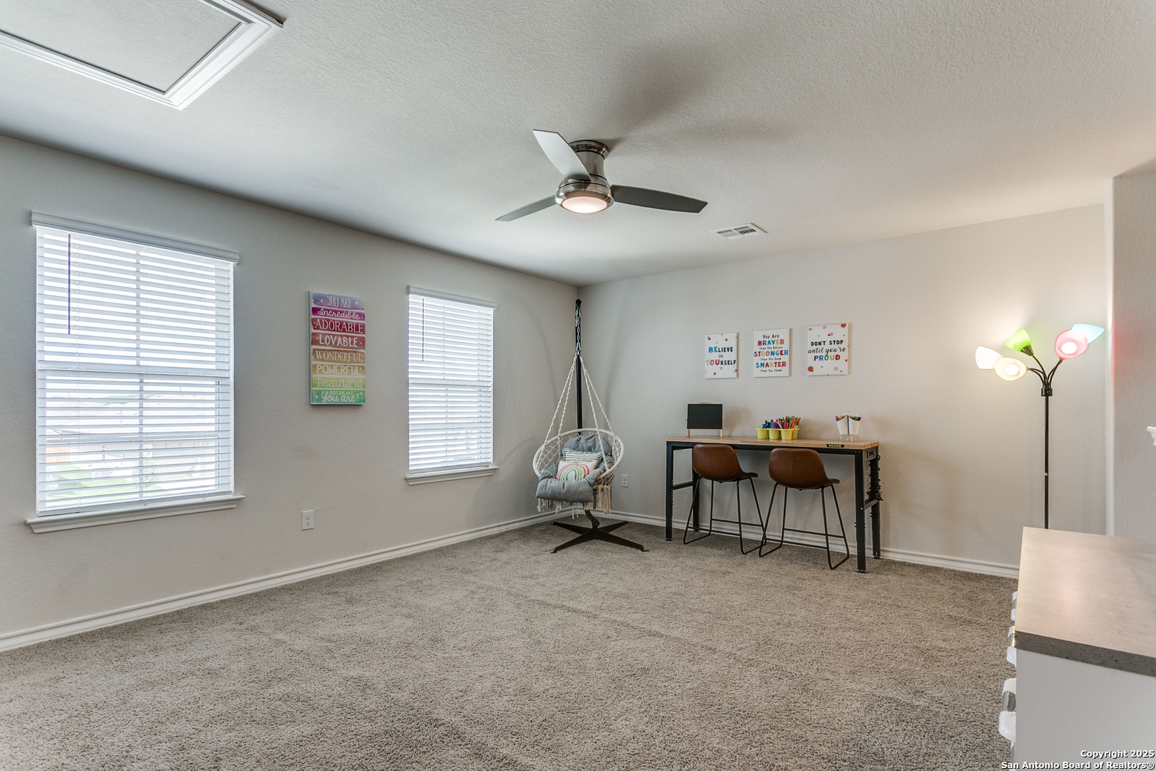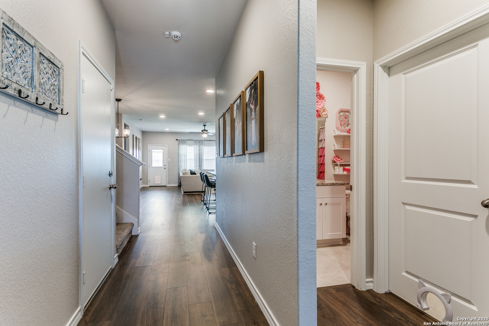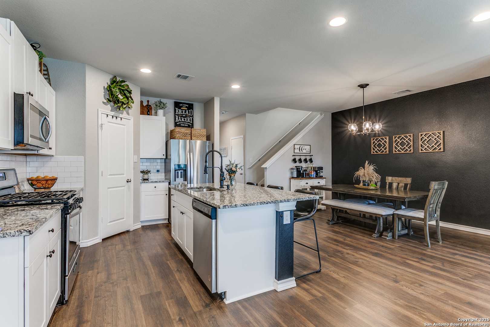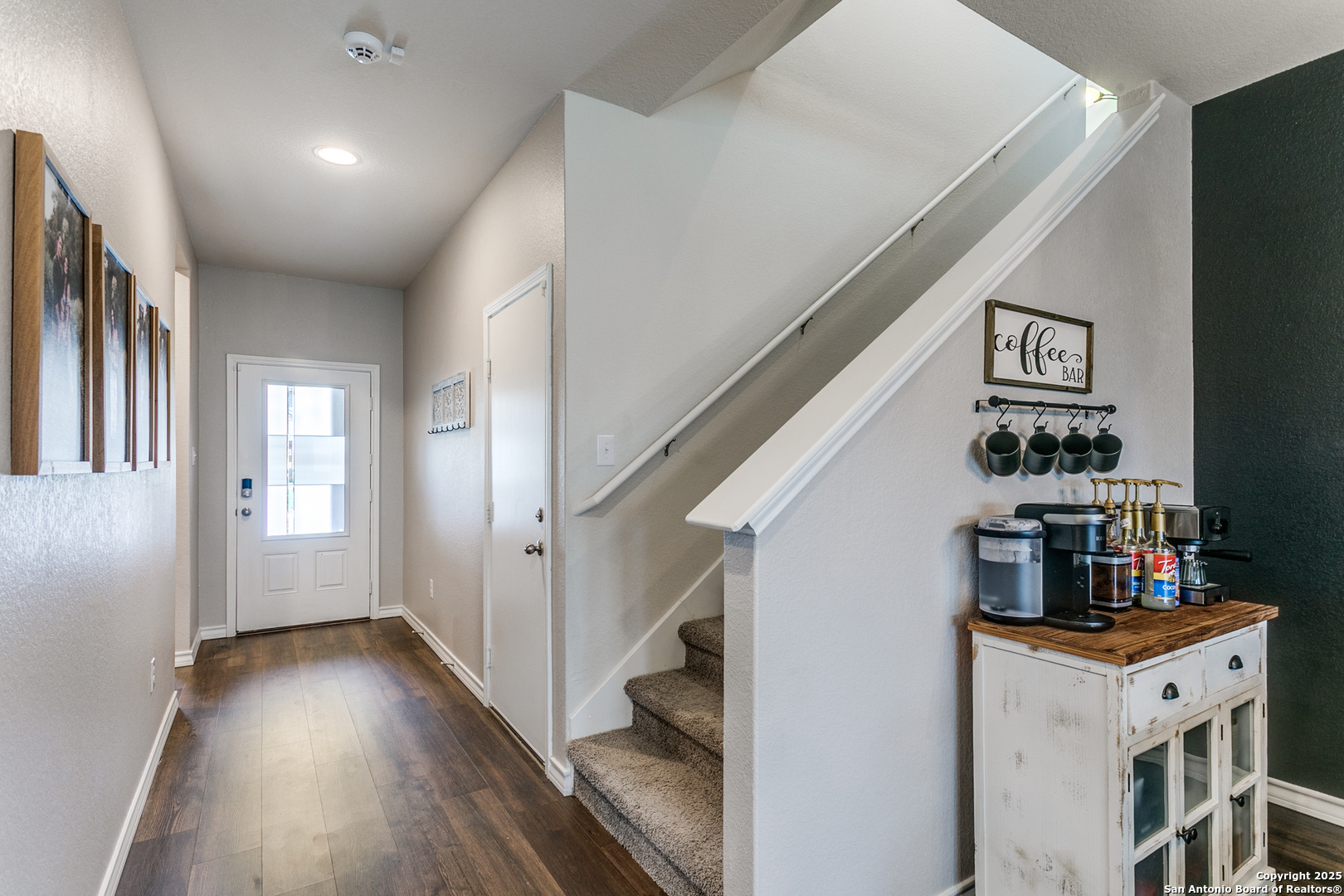 Welcome home to this stylish 4 bedroom 3 bath home filled with designer accents and finishes. This beauty is clean, move in ready and exudes pride of ownership! Downstairs boasts an open floor plan with an island kitchen, dining space and nice living area filled with natural light along with a secondary bedroom and full bath in addition to the spacious primary bedroom with a large walk in closet. Upstairs you will find a large game room with two additional bedrooms and a bath. Home sits on a nice size corner lot with a covered patio in the back including string lights, sun shades, a fire pit sitting area, raised garden beds and a sprinkler system. Light fixtures, fans and faucets have been upgraded and there is a beautiful custom built electric fireplace/entertainment unit with floating shelves. Great location close to historic Gruene, Schliterbahn, tons of shopping and everything New Braunfels has to offer.